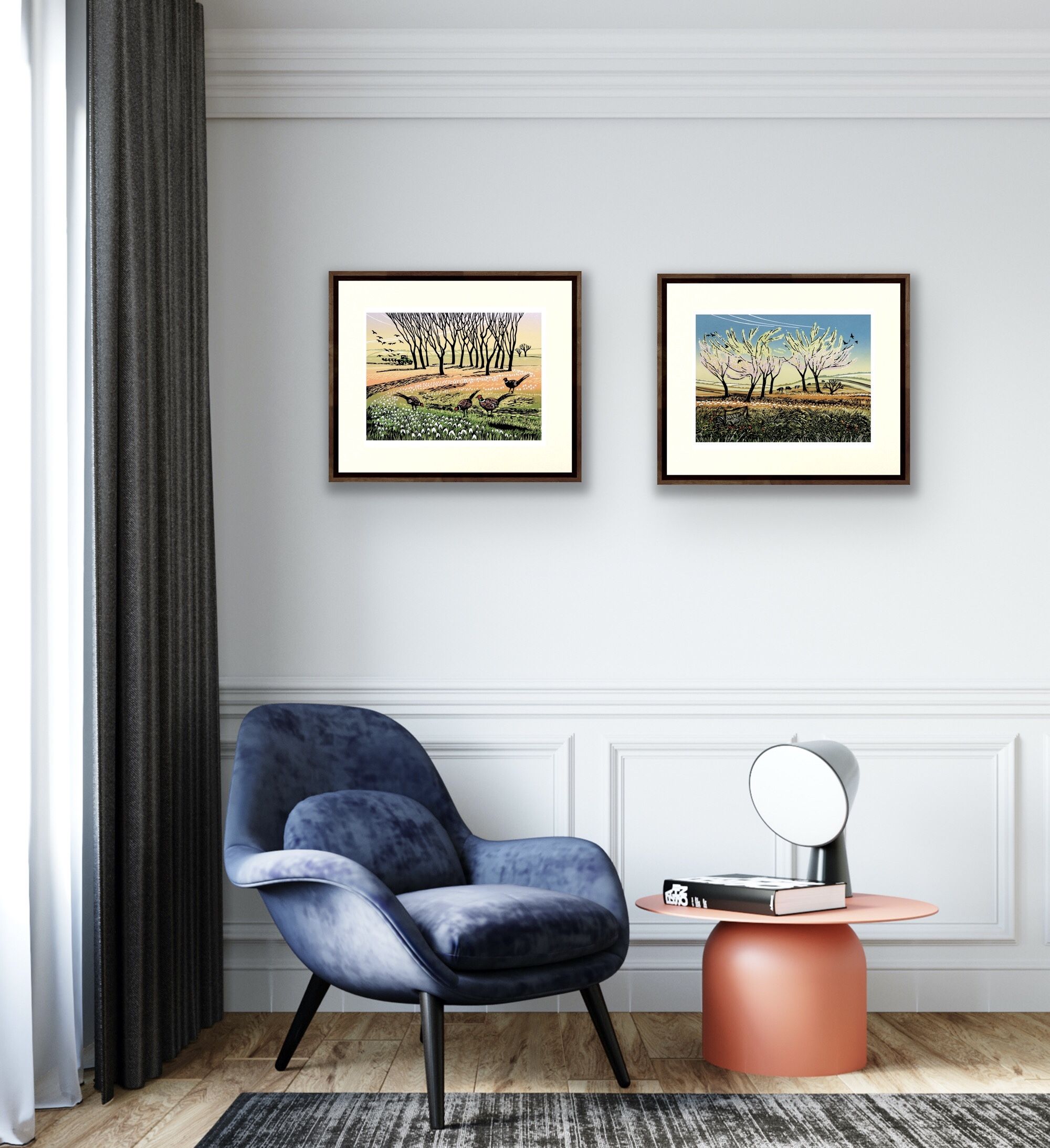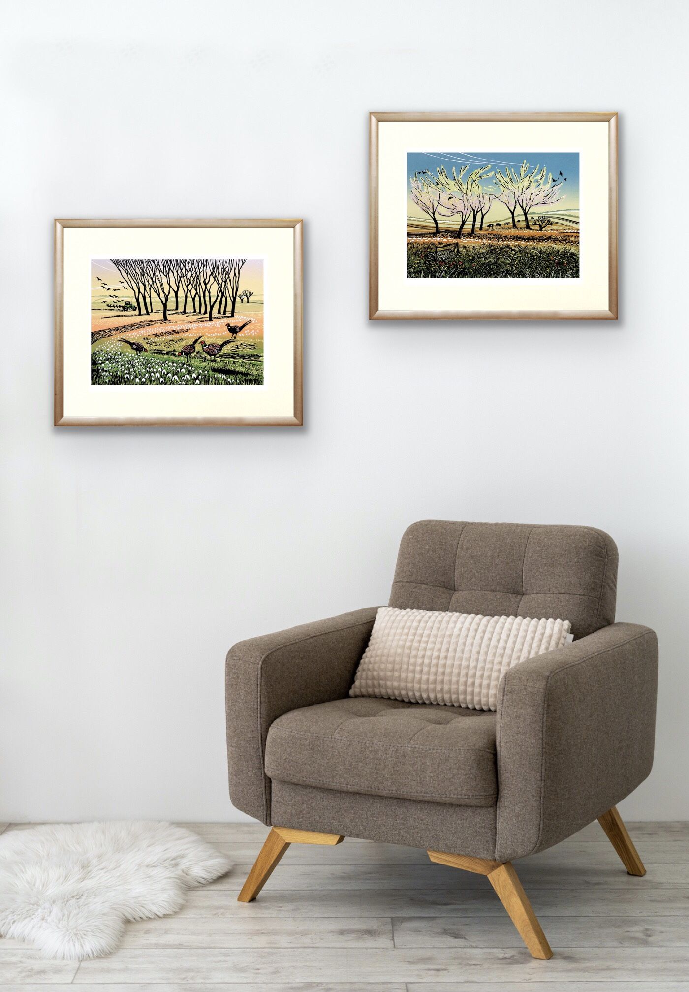 Snowdrop Swathe by Rob Barnes [2020] limited_edition Linocut Edition number 50 Image size: H:33 cm x W:44 cm Complete Size of Unframed Work: H:49 cm x W:61 cm x D:0.2cm Sold Unframed Please note that insitu images are purely an indication of how a piece may look This swathe of snowdrops can be seen each year in February