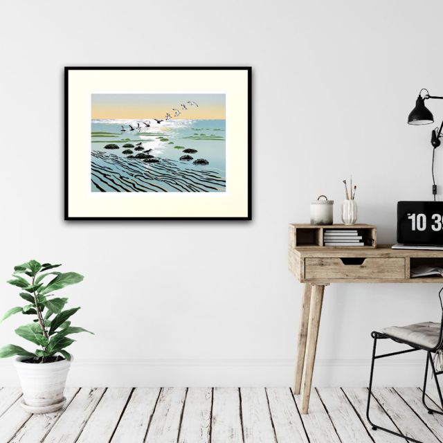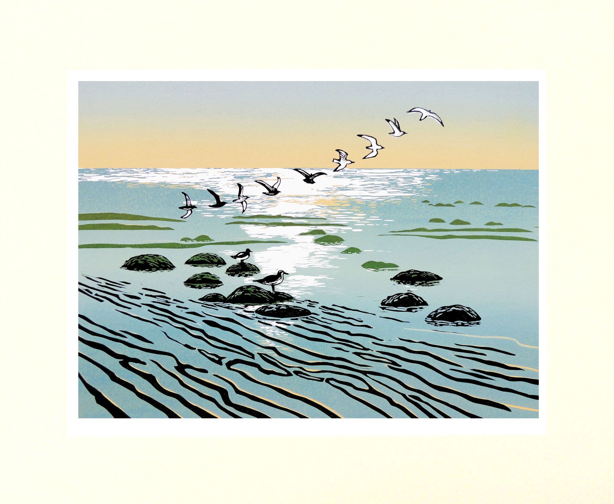 THIS WORK IS COMPLETELY SOLD OUT Rob Barnes Turn of the Tide Limited Edition Linocut Print Edition of 50 Image Size H 44cm x W 33cm Sheet Size H 49cm x W 61cm Sold Unframed mounted in Antique White mountboard Free Shipping Please note that in situ images are purely an