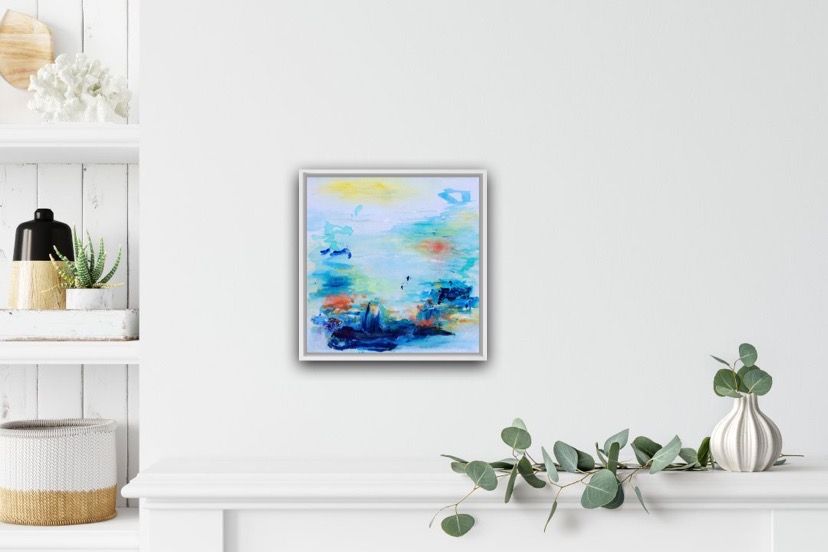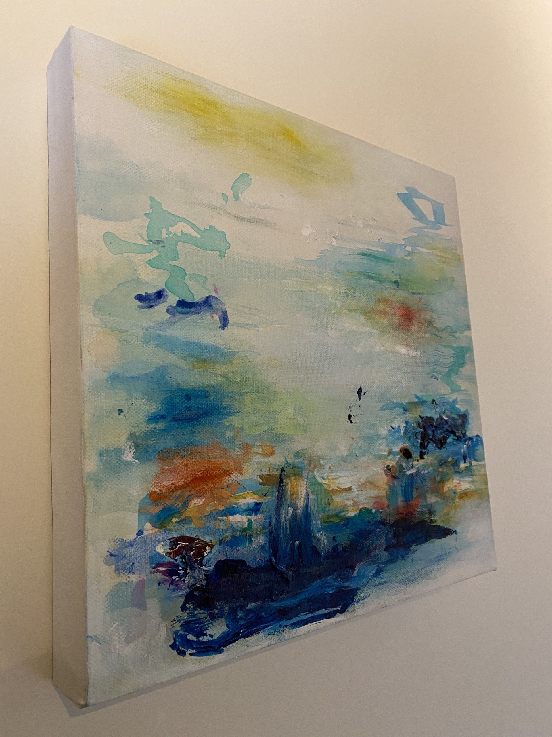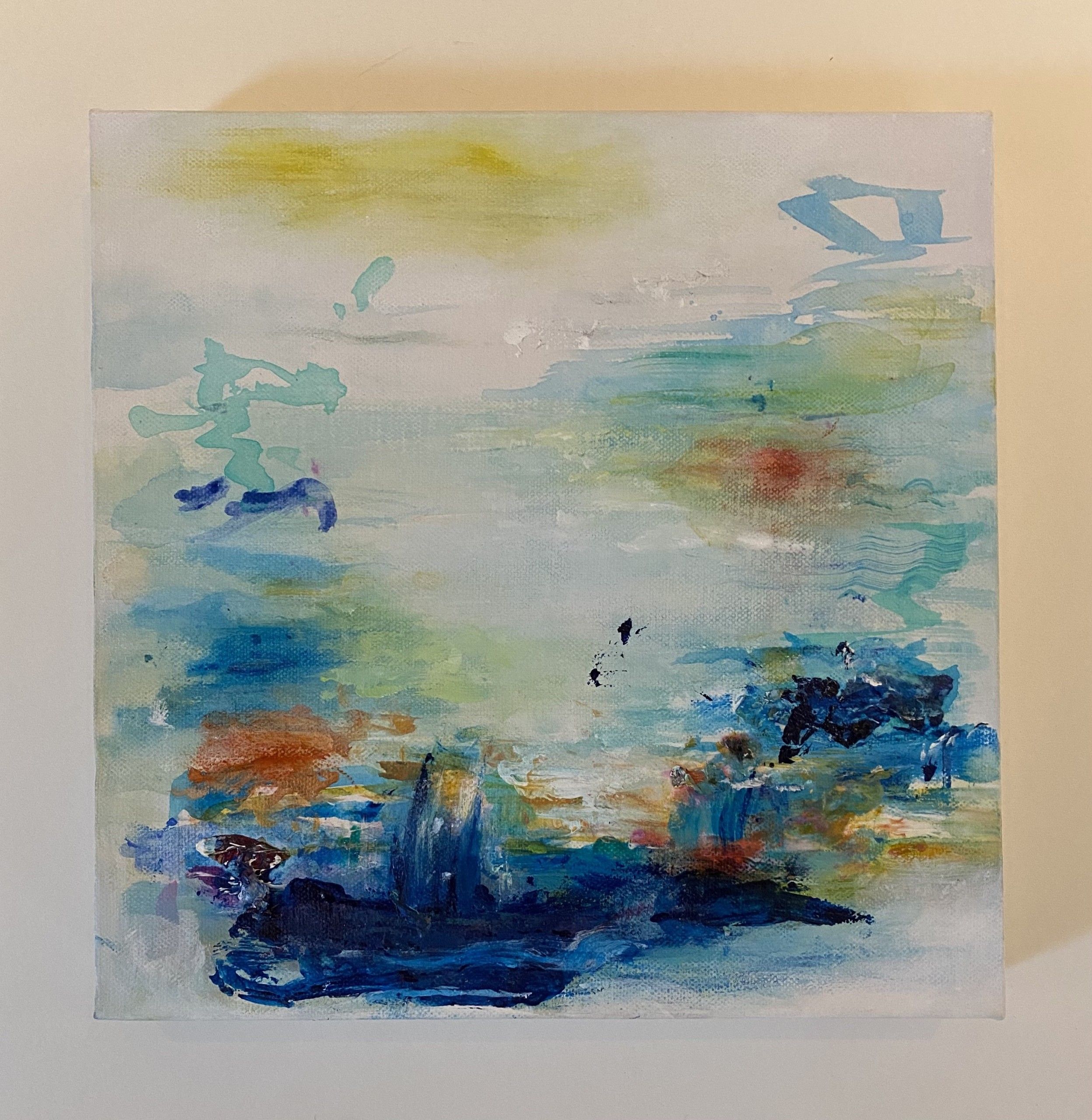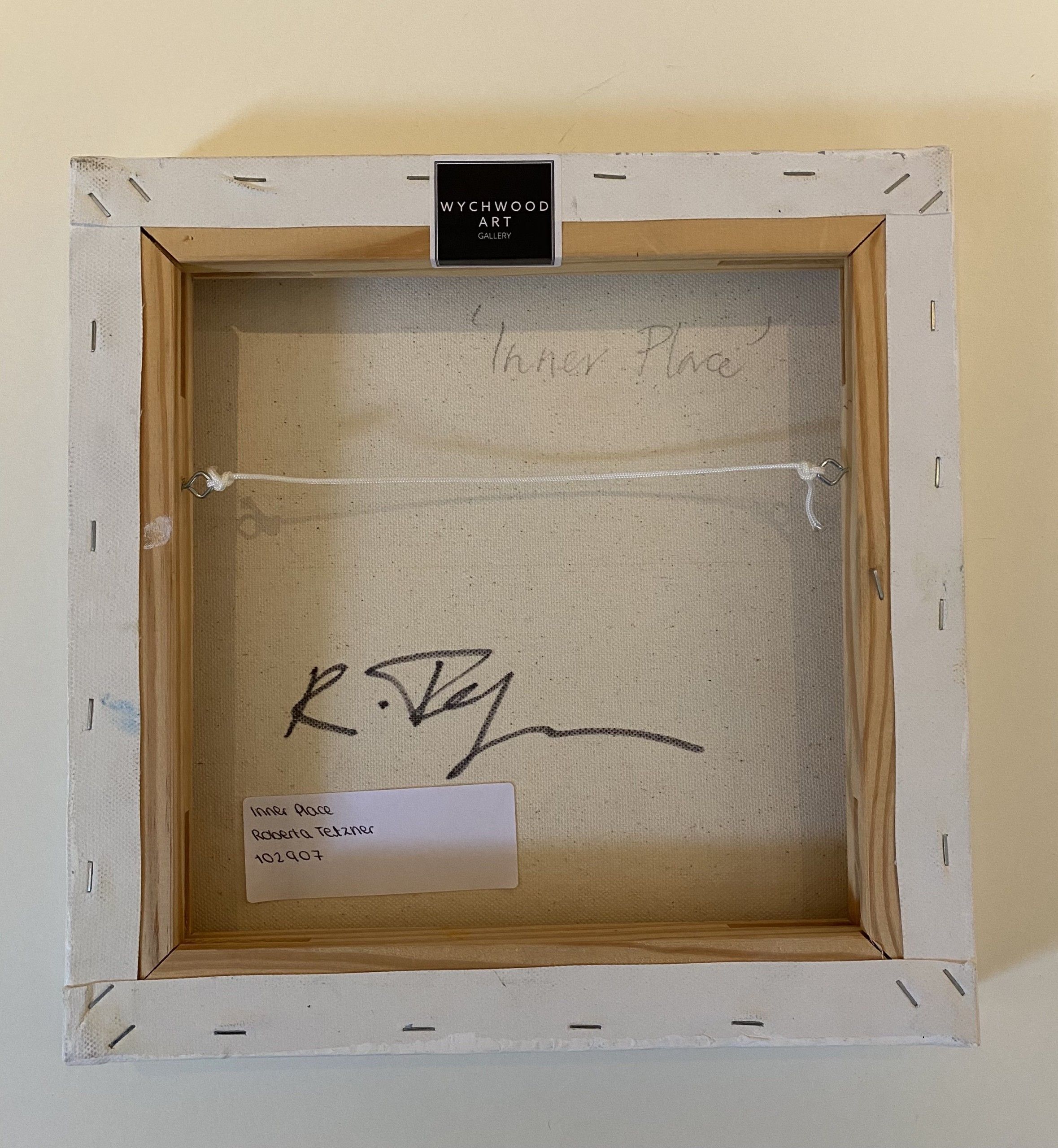 Roberta Tetzner Inner Place Original Mixed Media Painting Collage, watercolour, ink, chalk, acrylic paint and varnish on canvas Canvas Size: 30 cm H x 30cm W x 4cm D Sold Unframed but ready to hang or stand (Please note that in situ images are purely an indication of how a piece may look). ‘Inner Place’ is