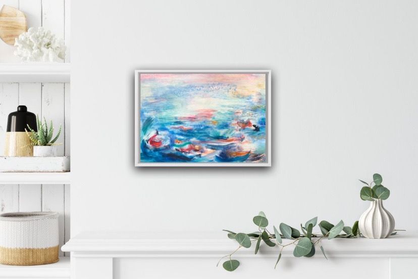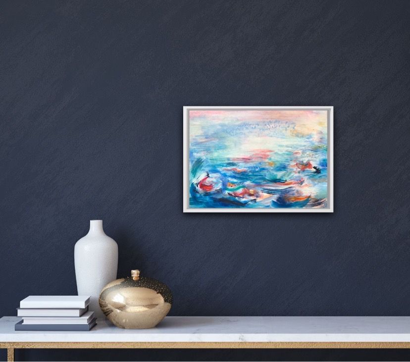 ‘Holiday Memory 4’ is an original contemporary impressionist landscape painting by Roberta Tetzner. This original abstract water painting recalls a wonderful memory. Do
