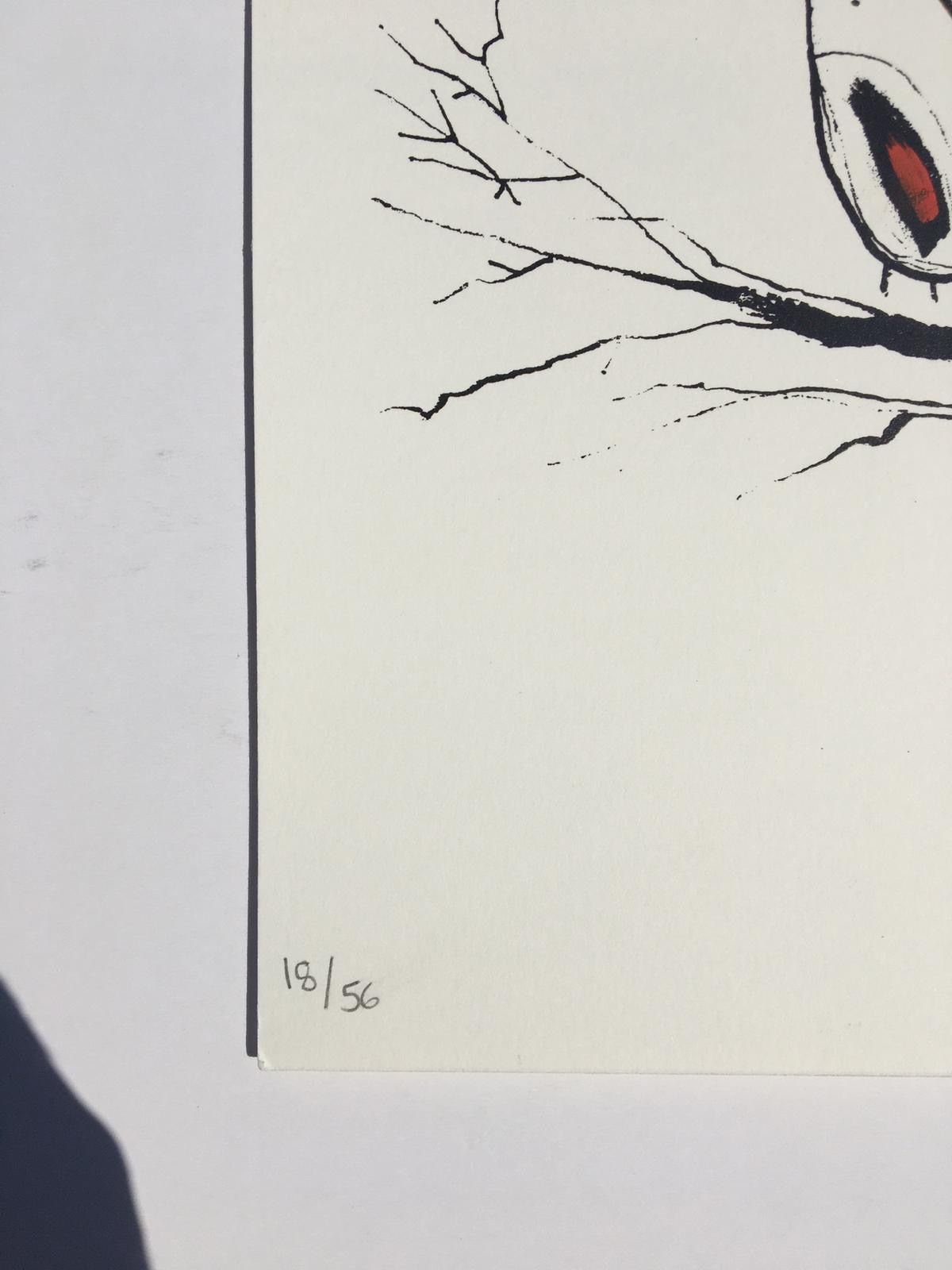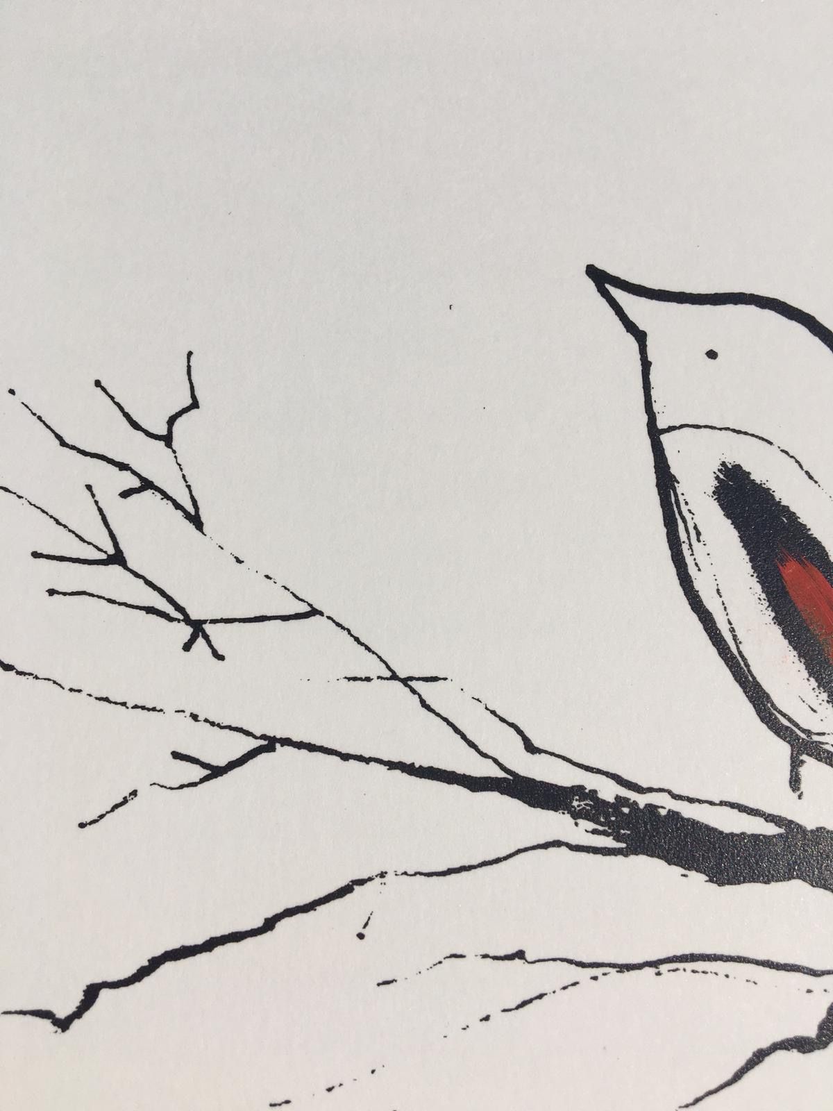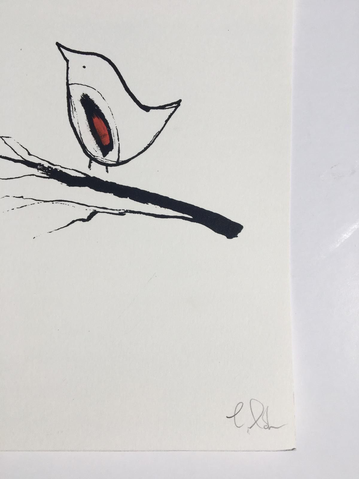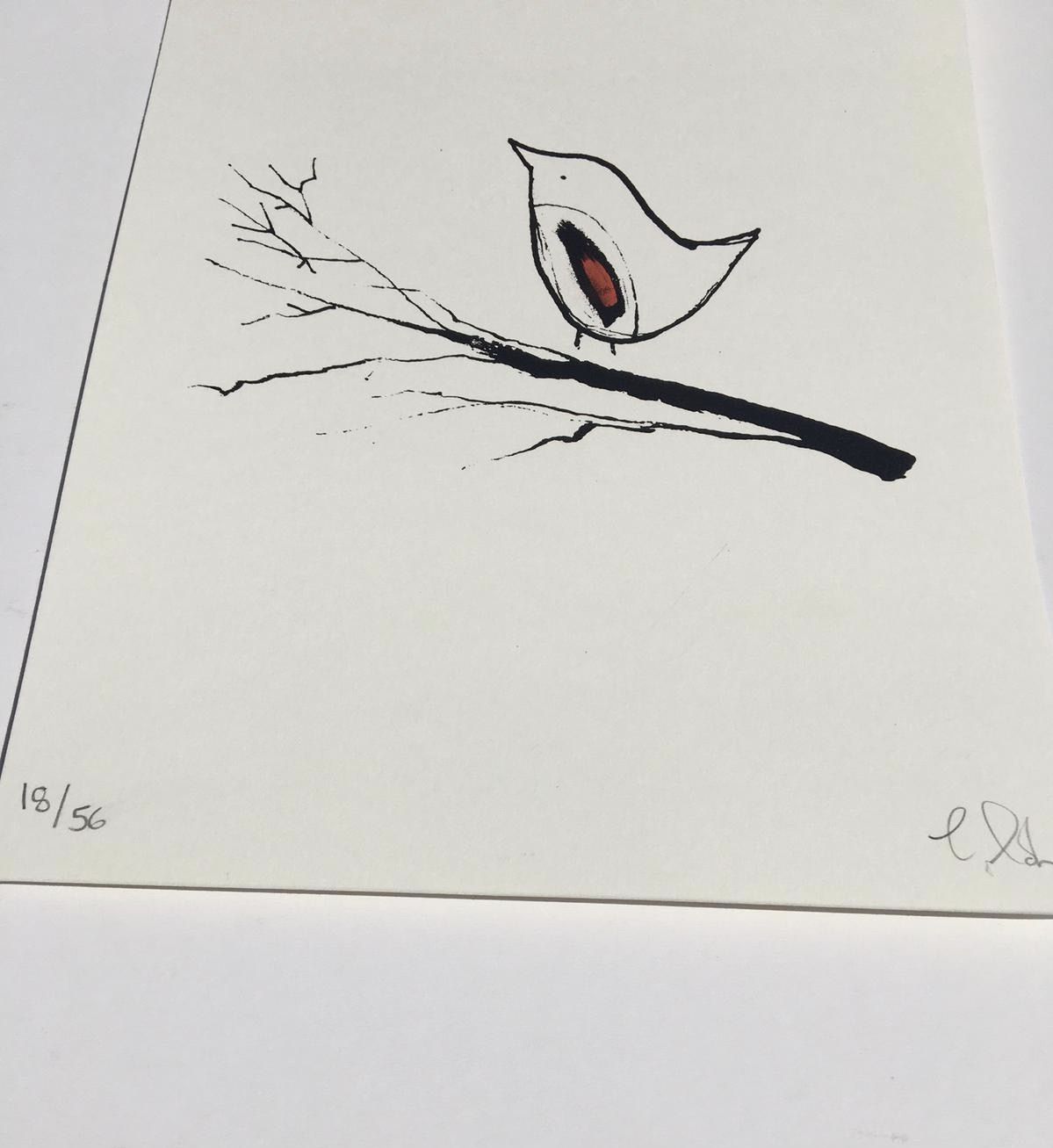 Gavin Dobson Robin Limited Edition Screen Print with Hand Painted Red Breast Edition of 56 Image Size: H 35cm x W 17.5cm Signed and Numbered Sold Unframed Robin is a limited edition screen print by Gavin Dobson on Southbank smooth paper 300 gsm. Gavin Dobson's artworks are available to buy online with Wychwood art and