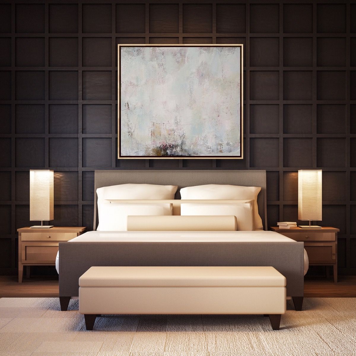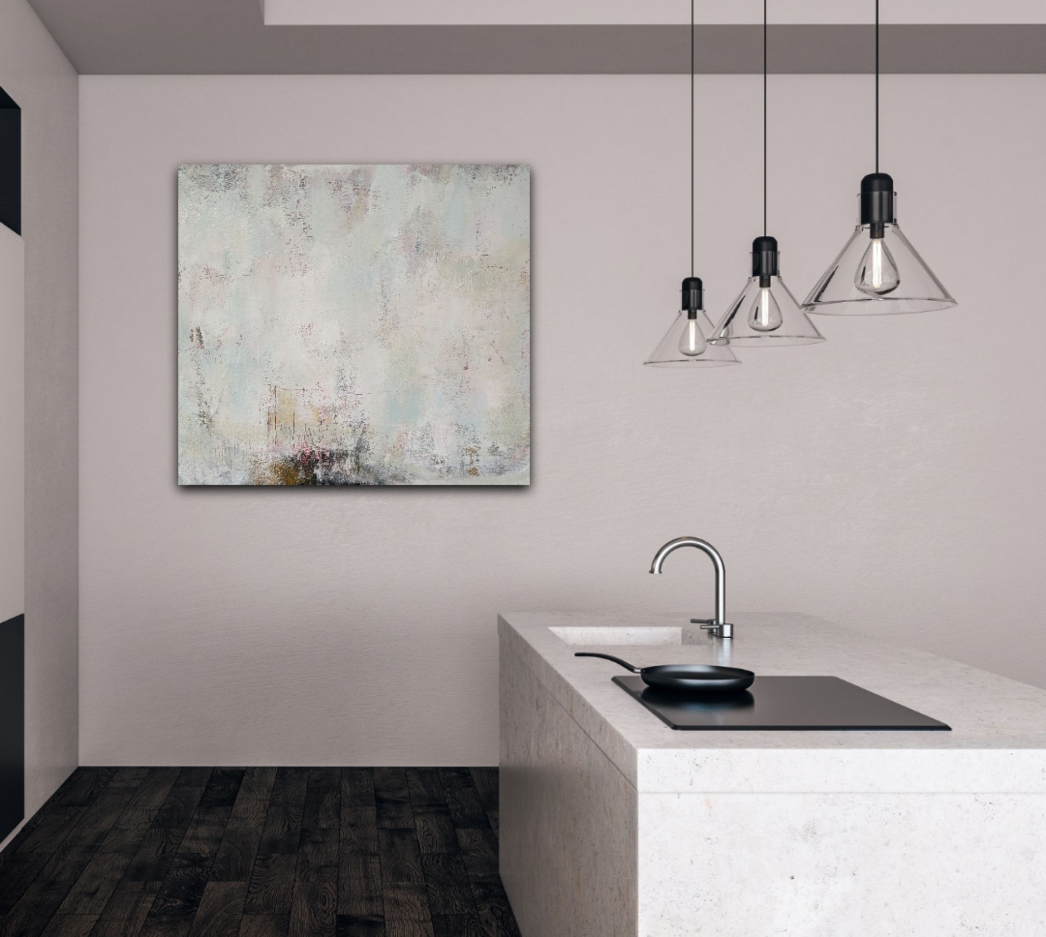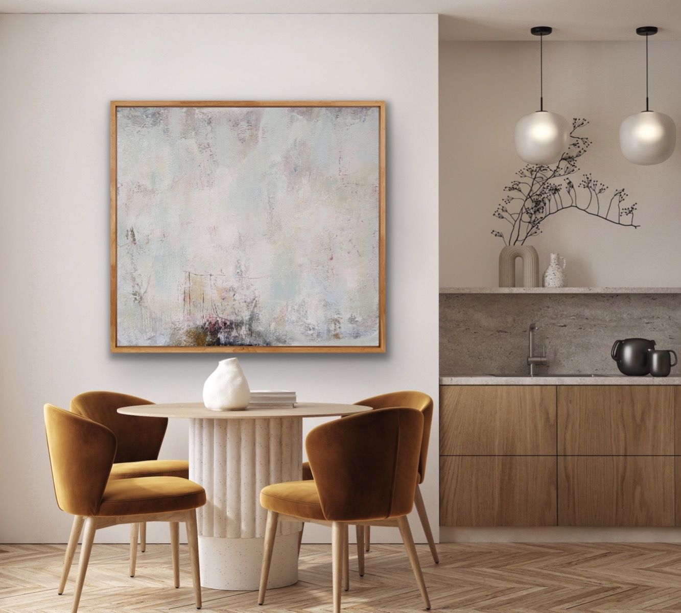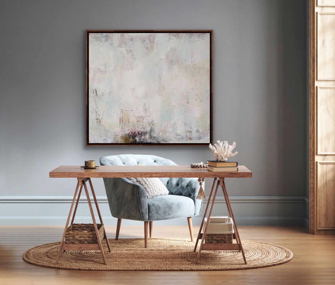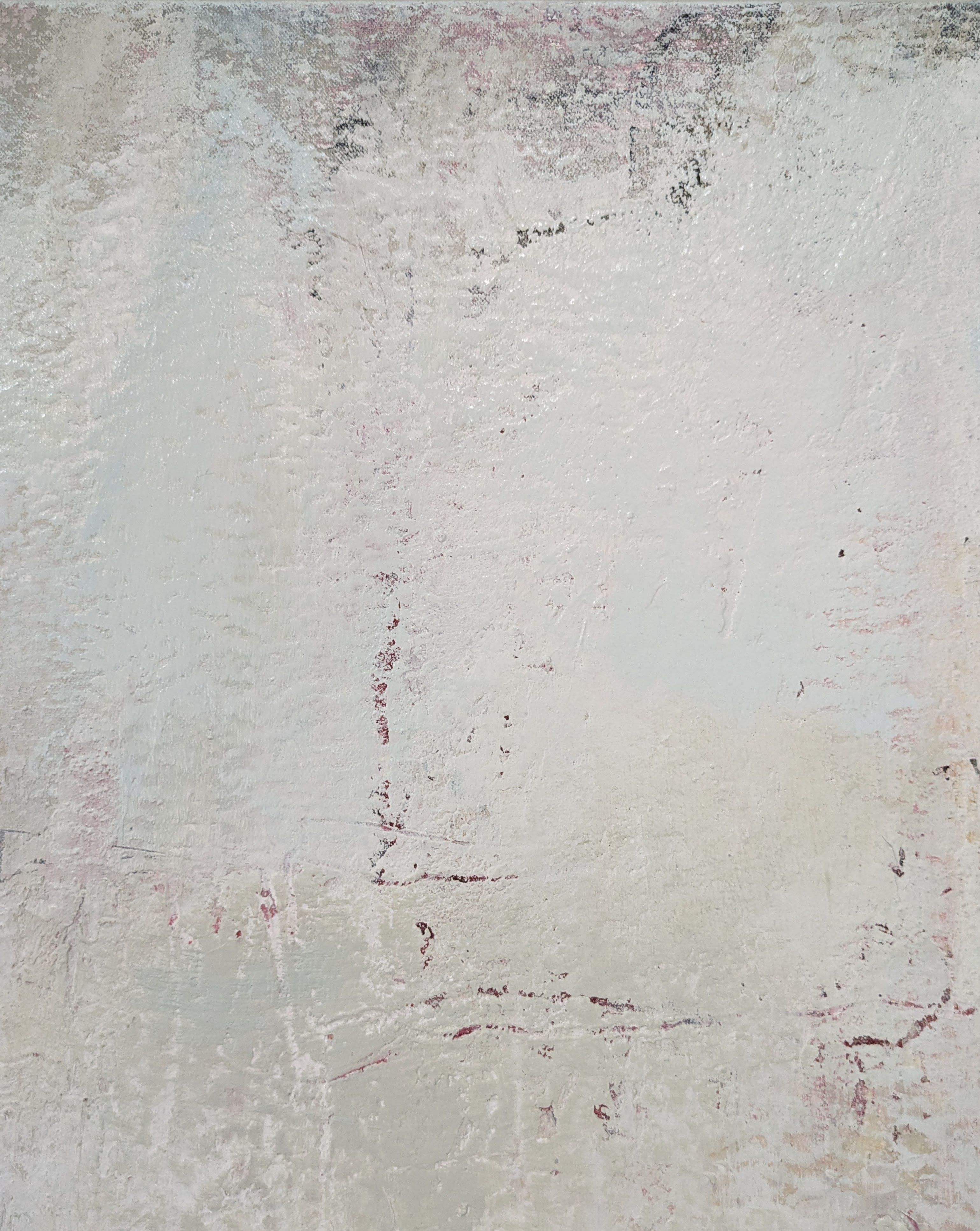 Rosy Granite Coast (I) is an original abstract landscape painting by Mary Scott. This is the first work in a series of four large abstract interpretations of the granite rocks of West Cornwall near Land's End. Created in oil paint mixed with pigment, cold wax and rock powder to give it