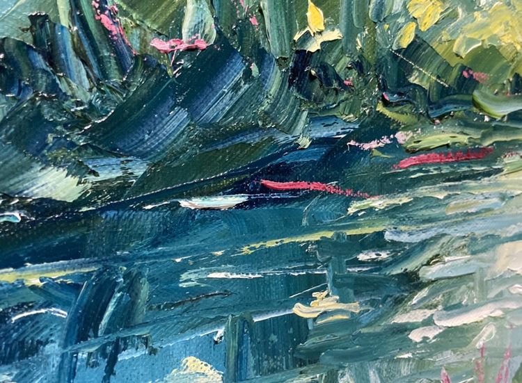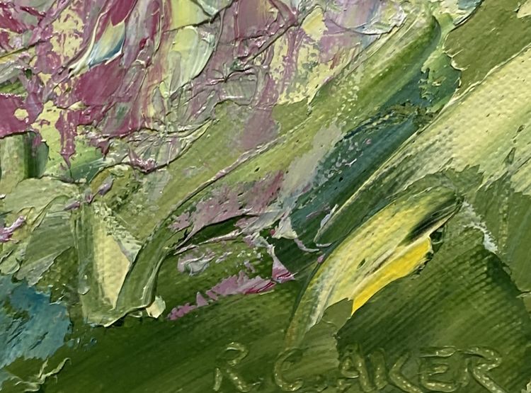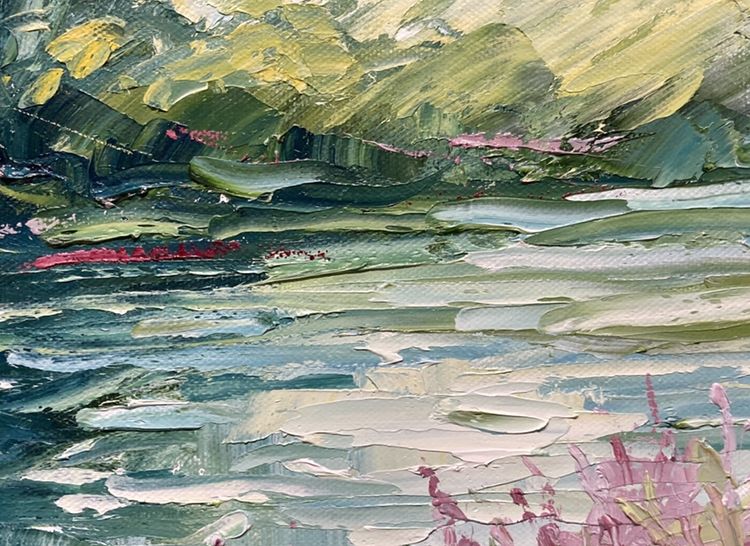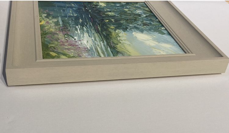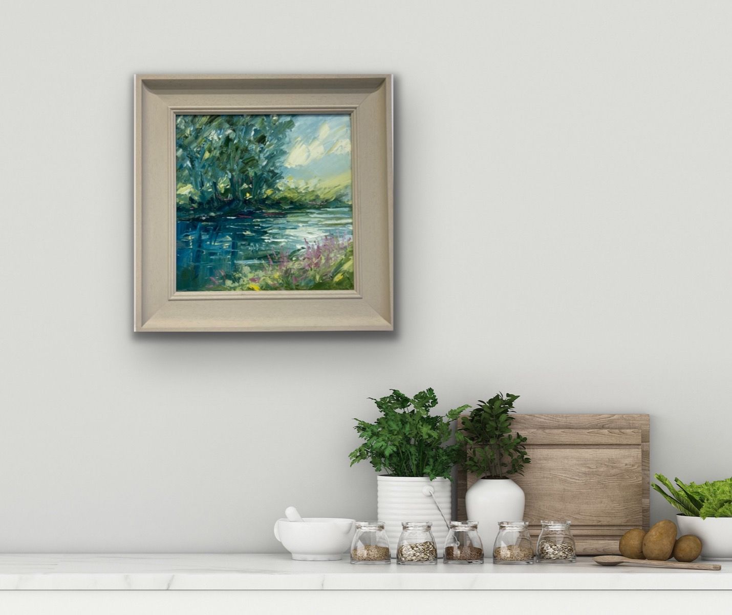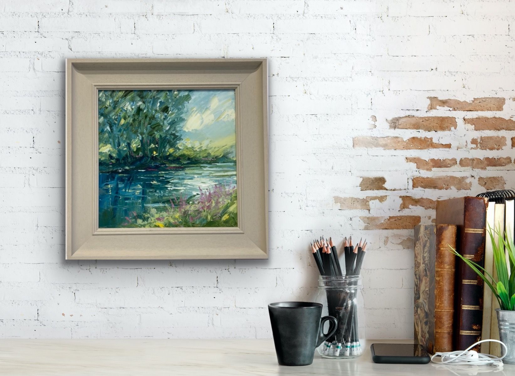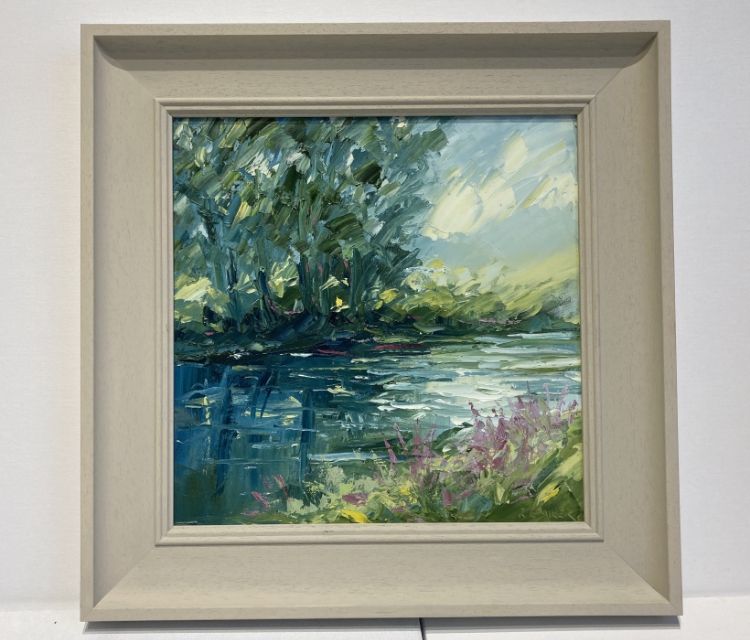 Beside the Windrush is an original oil paintng by Rupert Aker. A peaceful afternoon by the Windrush, late summer with a dash of pink from the Willowherb.