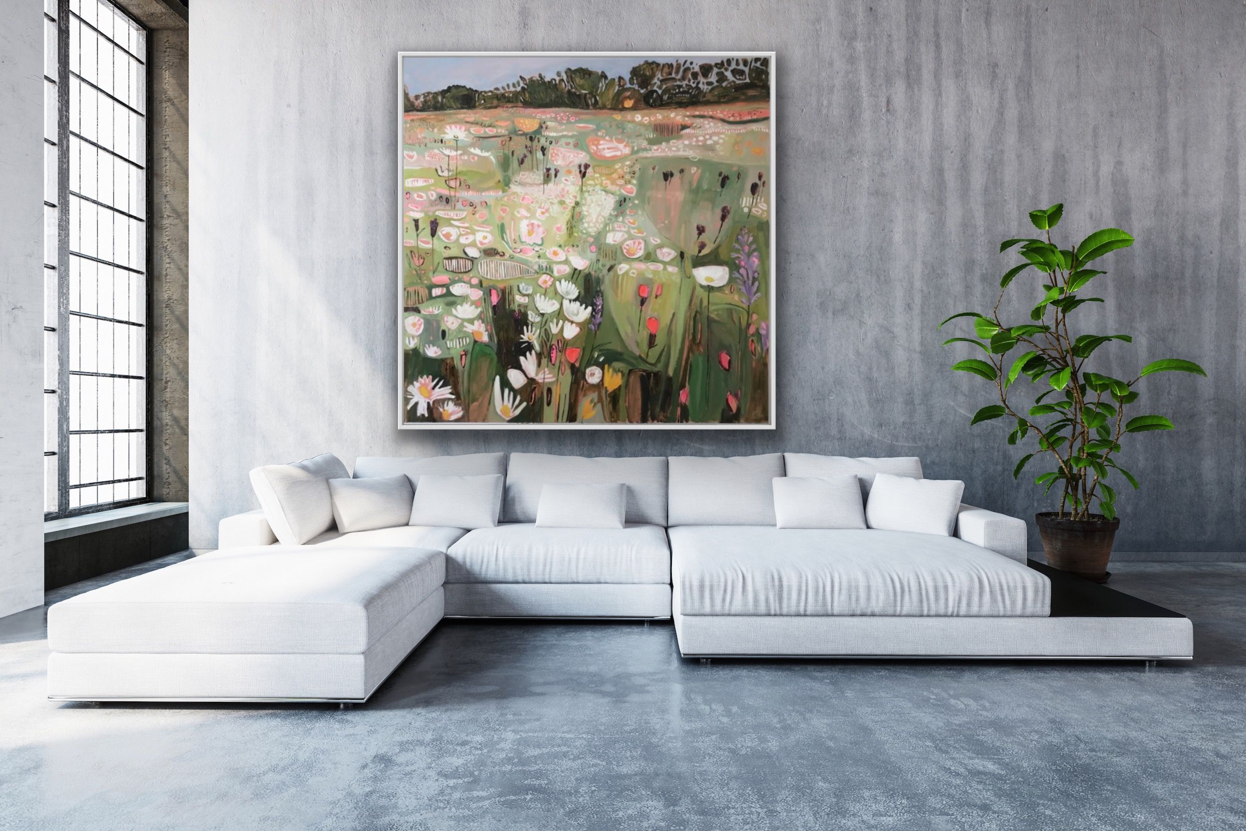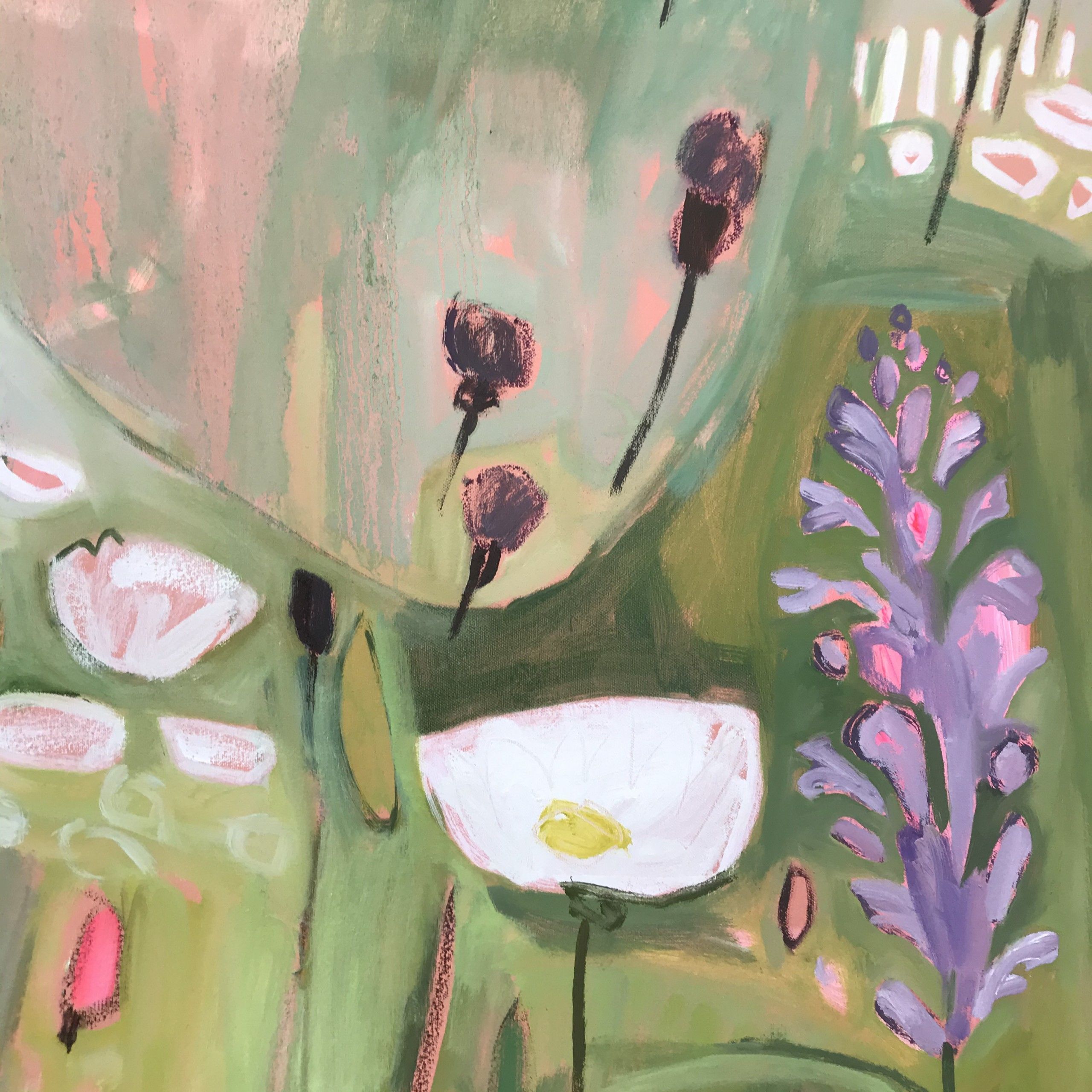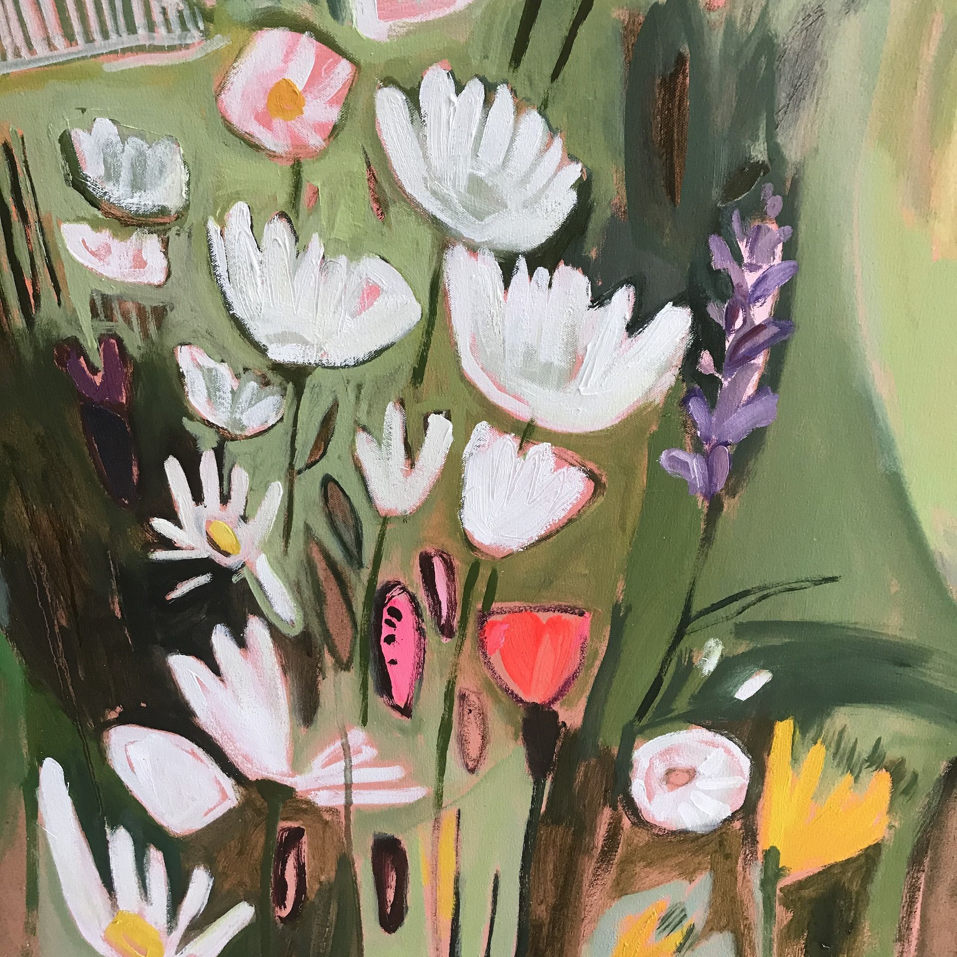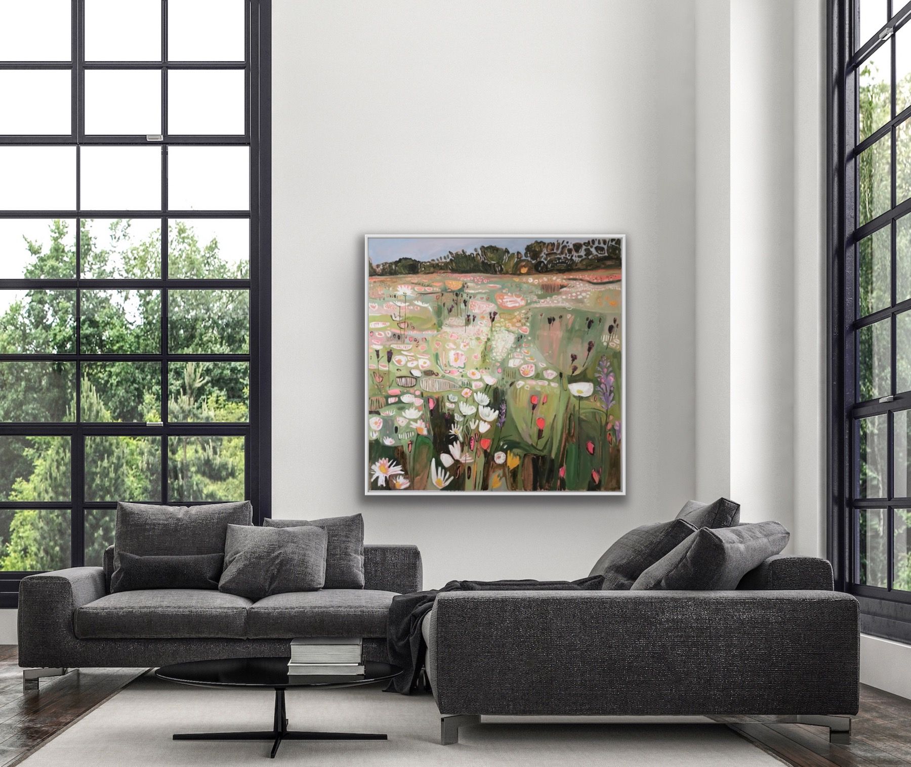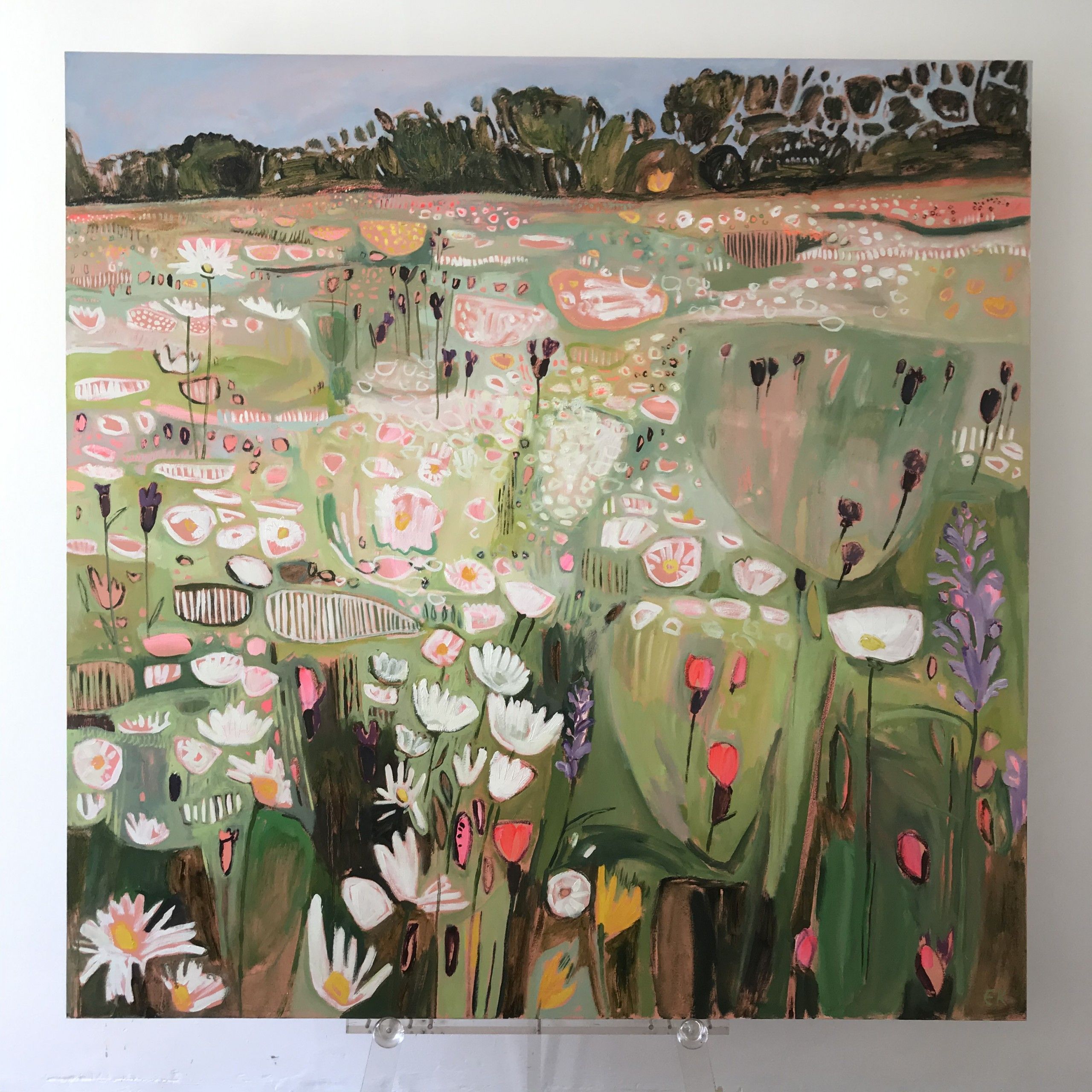 Ryewater Farm by Elaine Kazimierczuk is an original painting. This is an interpretation of a glorious wildflower meadow at Ryewater Farm, a reserve managed by the charity Plantlife, consisting of five meadows with a rich diversity of flora. In the painting you can make out drifts of ox-eye daisies, interspersed