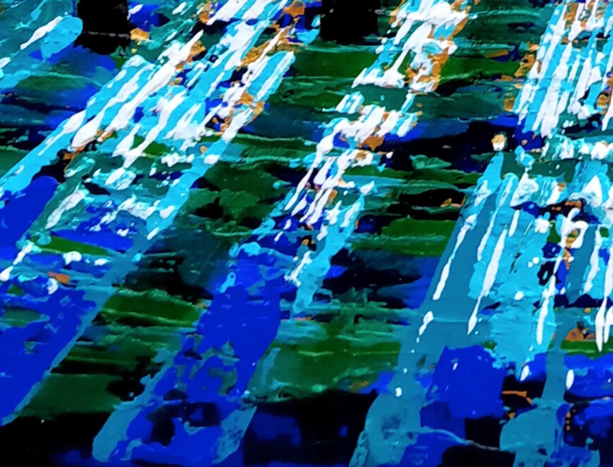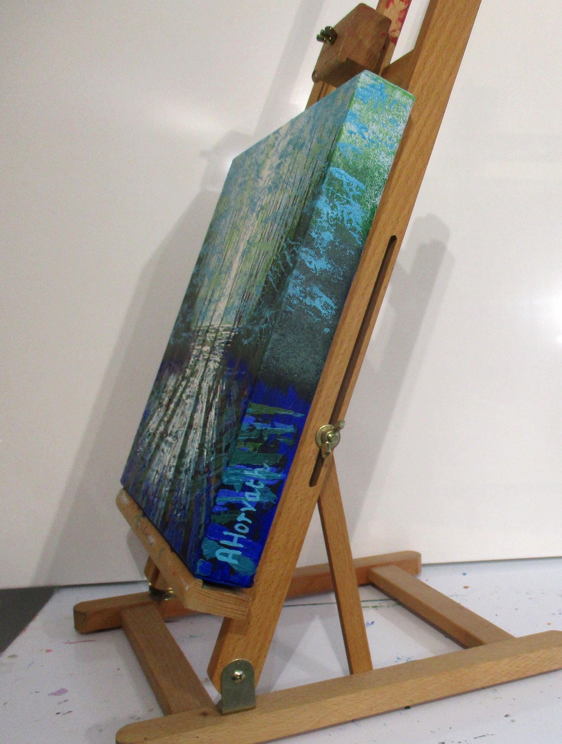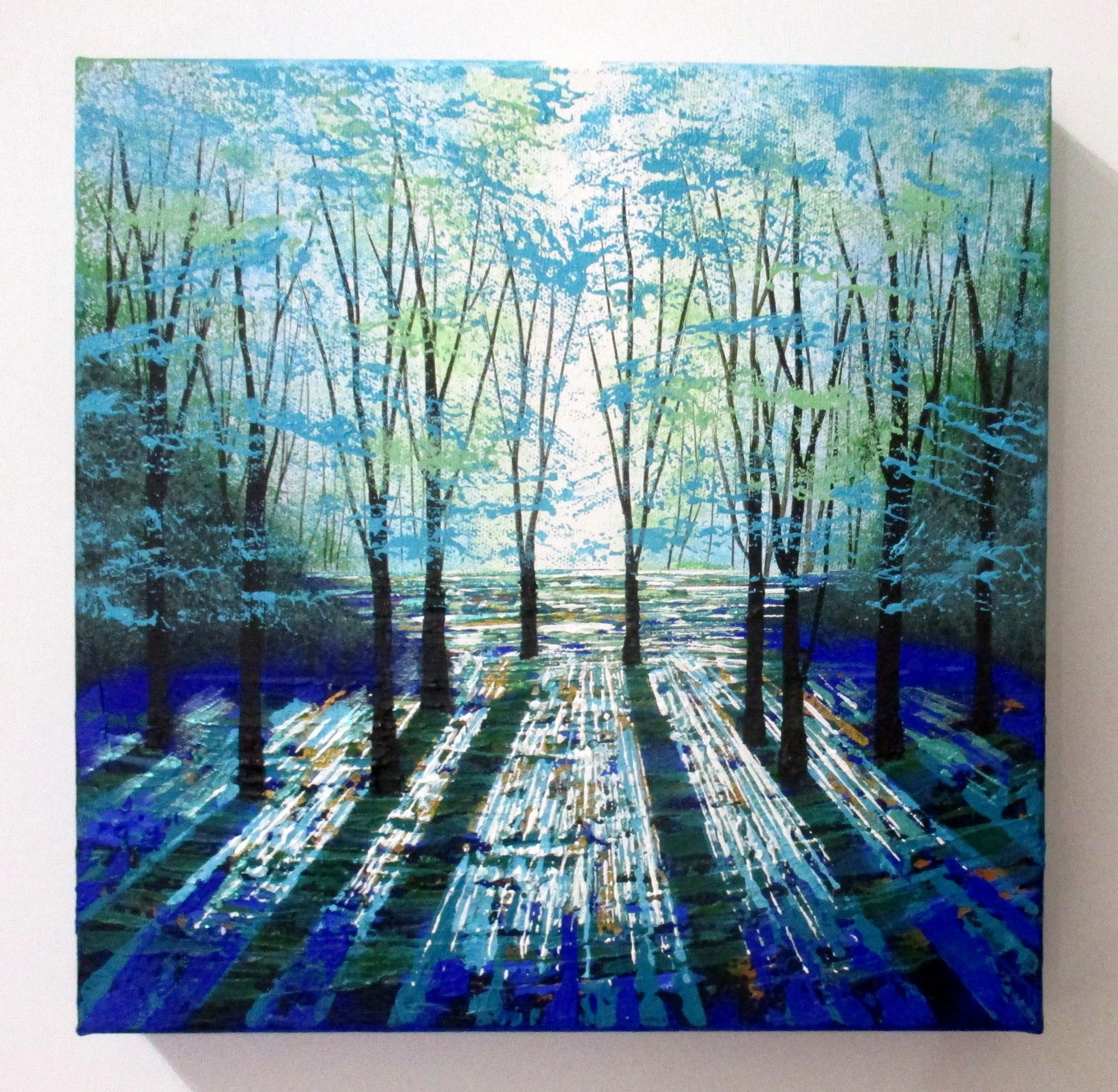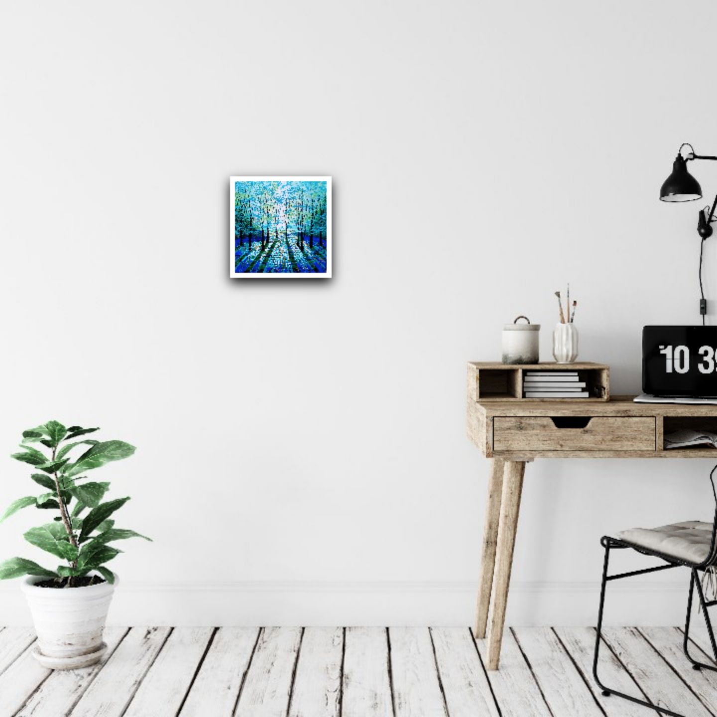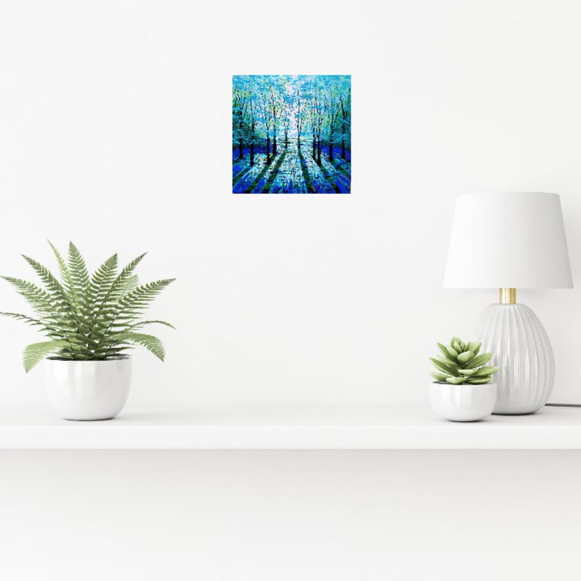 Sapphire Wood by Amanda Horvath [2021] original Acrylics on canvas Image size: H:30 cm x W:30 cm Complete Size of Unframed Work: H:30 cm x W:30 cm x D:3.5cm Sold Unframed Please note that insitu images are purely an indication of how a piece may look "Sapphire Wood" is an expression of some quiet peaceful woods near