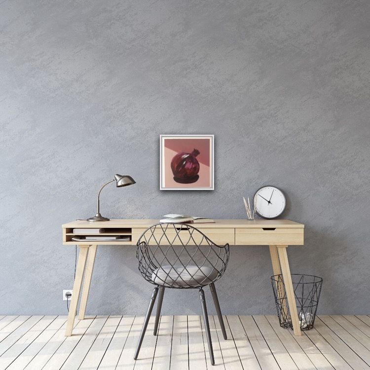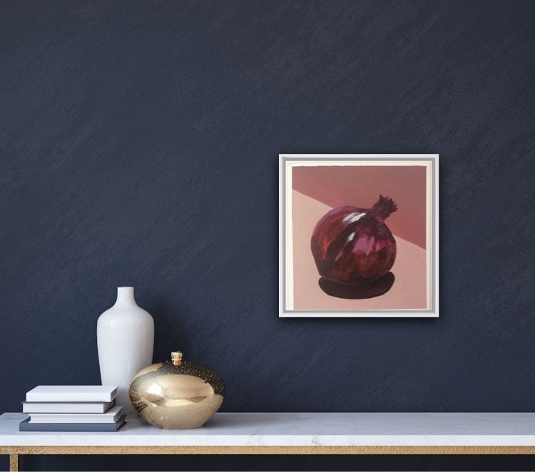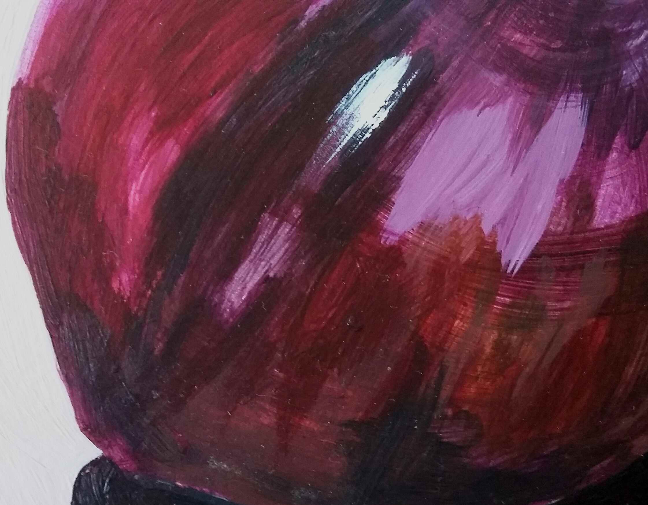 Sarah Adams One Red Onion Original Acrylic Painting Acrylic Paint on paper Size: 20 cm x 19 cm Sold Unframed One Red Onion is an original painting by Sarah Adams. it is painted from real life, and to real life size of the vegetable. Sarah's expressive mark making shows the form and shape of this lovely