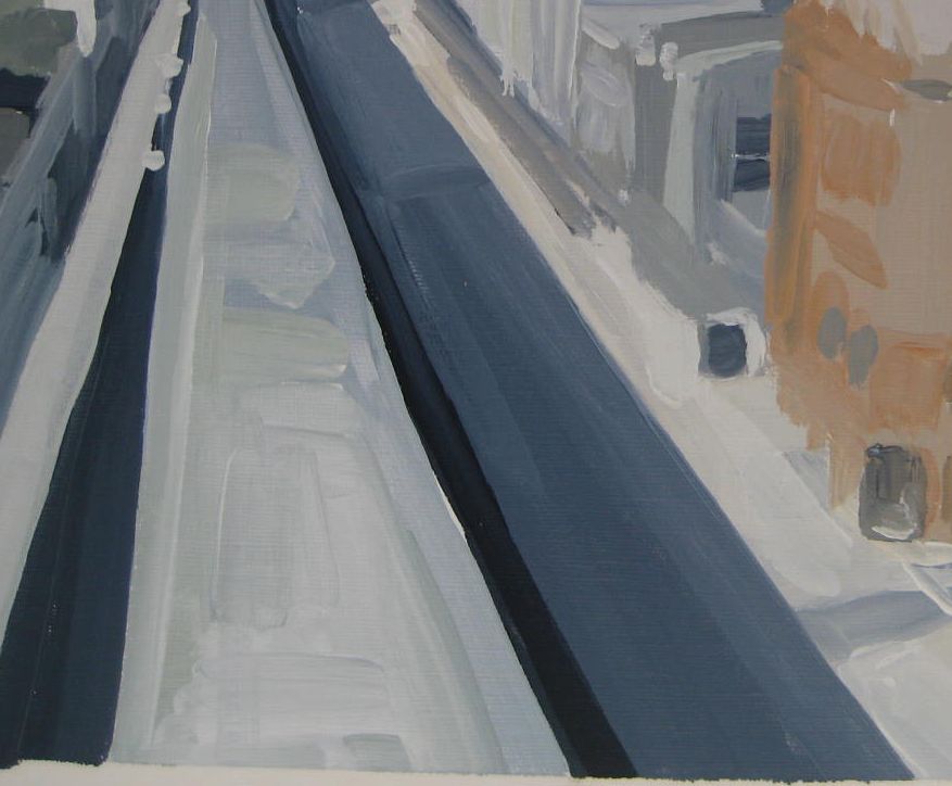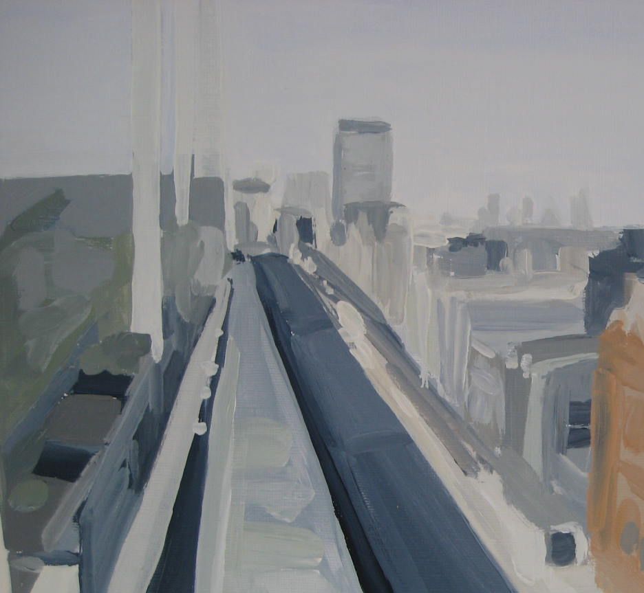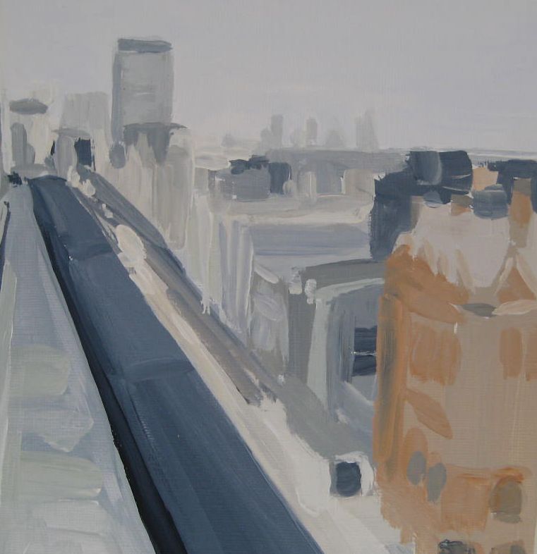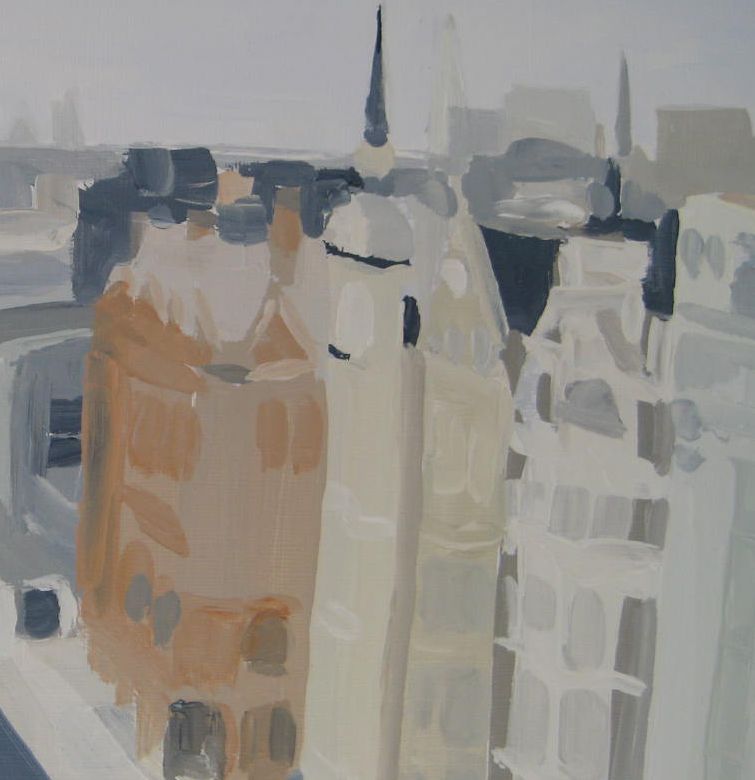 Sarah Adams Oxford Street from the John Lewis rooftop Original Acrylic Painting Acrylic Paint on Paper Size: 43.5 cm x 53.5 cm Sold Unframed Oxford Street from the John Lewis rooftop is an original painting by Sarah Adams. It depicts Oxford Street, looking towards Centre Point. It is painted from the John Lewis garden roof