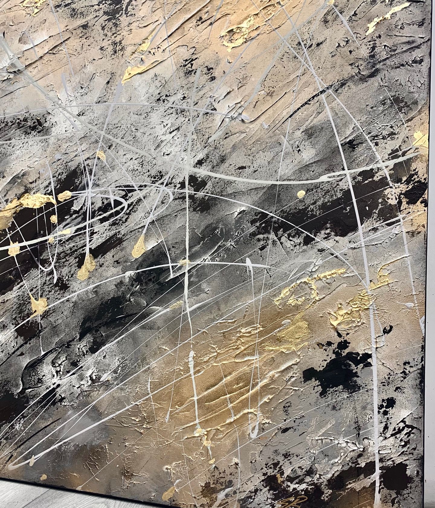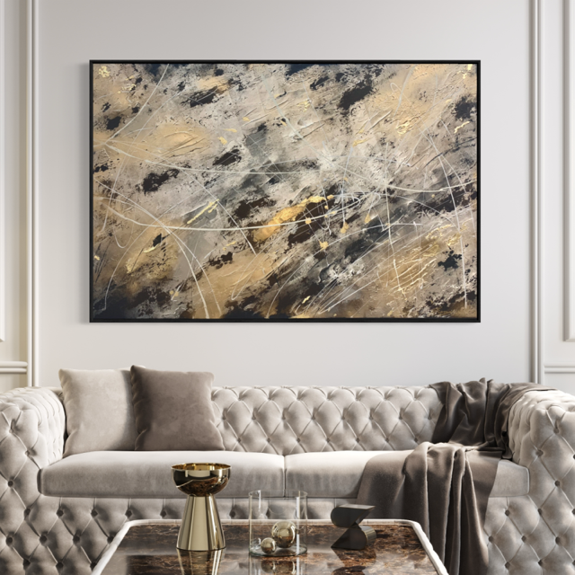 Gorgeous brown, taupe and beige mixed with golds and black. Gilded with 24 carat real gold leaf. An original one of a kind artwork full of deep textures using artist clay, radiant with metallic gold highlights. This piece really does glimmer in any light, revealing a beautiful highly textured canvas.