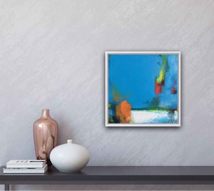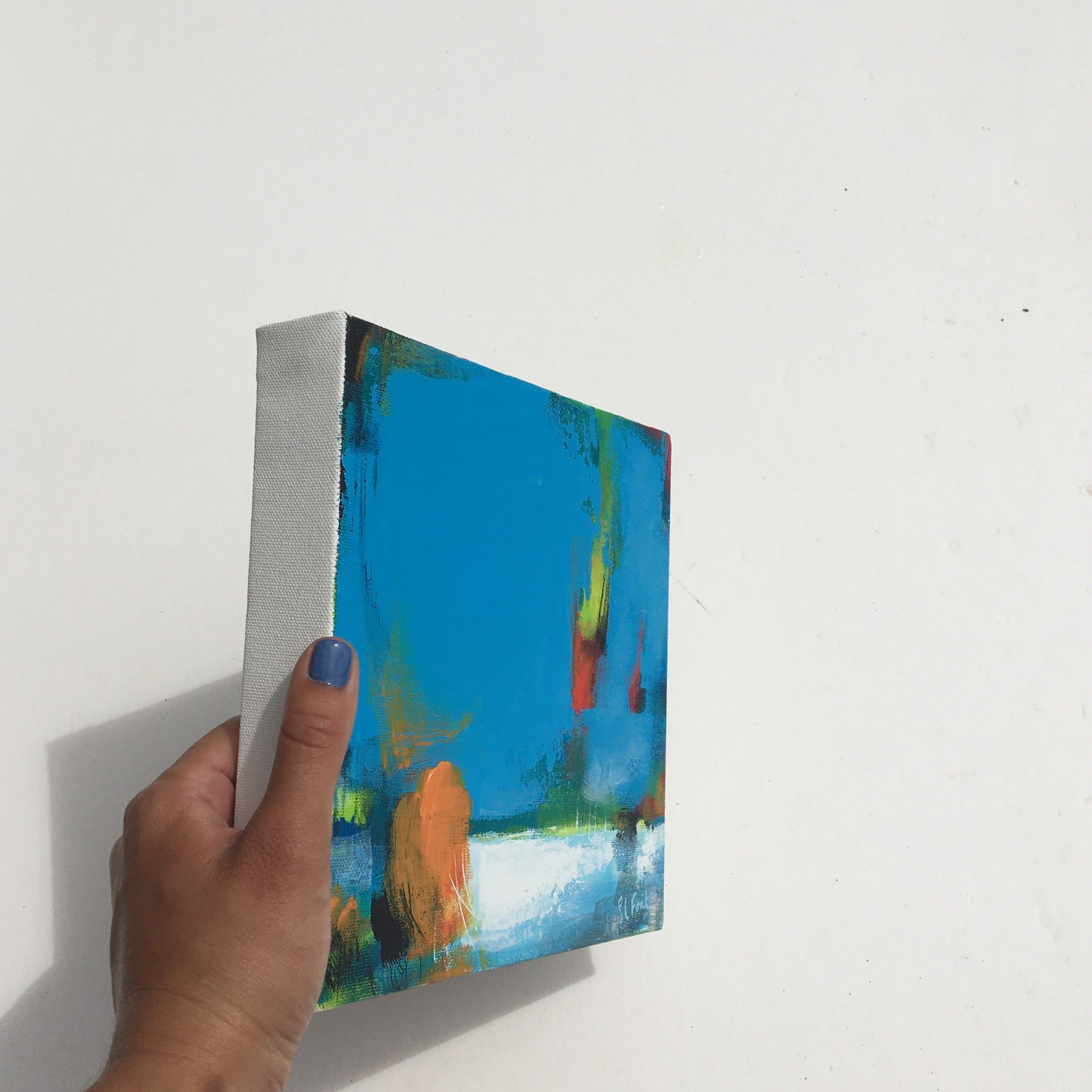 Sarah Foat Exposed Contemporary Abstract Landscape Painting Acrylic Paint on Canvas Canvas Size: H 20cm x W 20cm x D 3.5cm Sold Unframed Please note that insitu images are purely an indication of how a piece may look Unsaid Love is an original abstract painting by Sarah Foat. The bold blue that overwhelms the canvas is made evermore