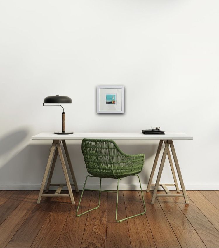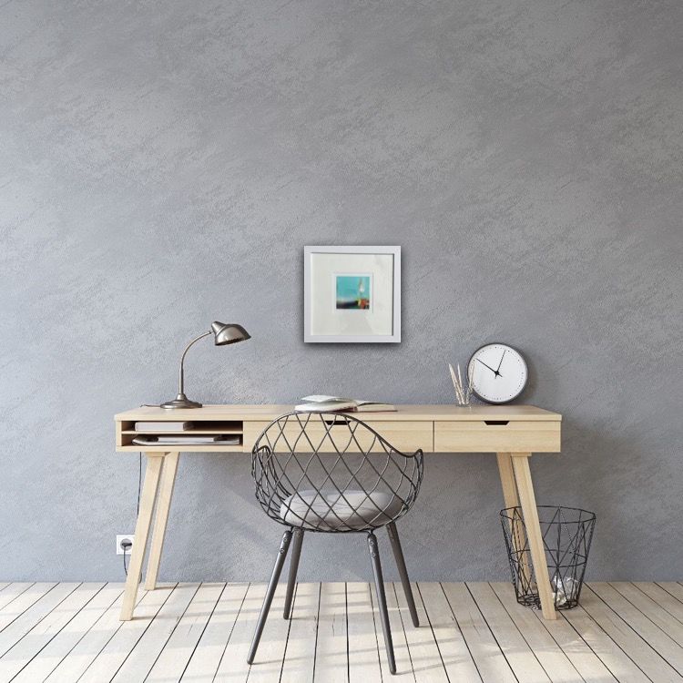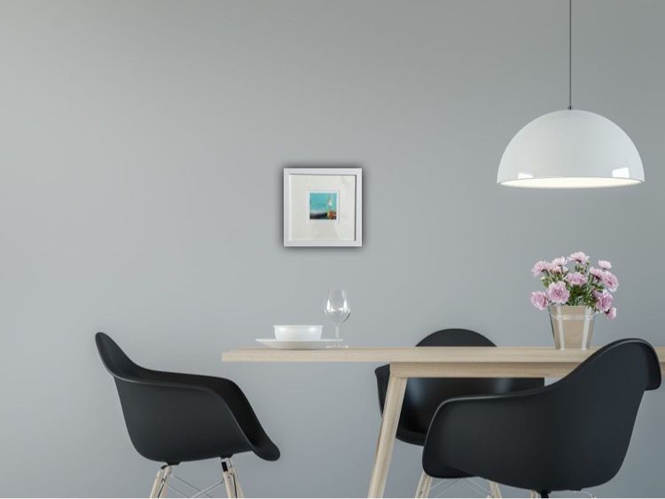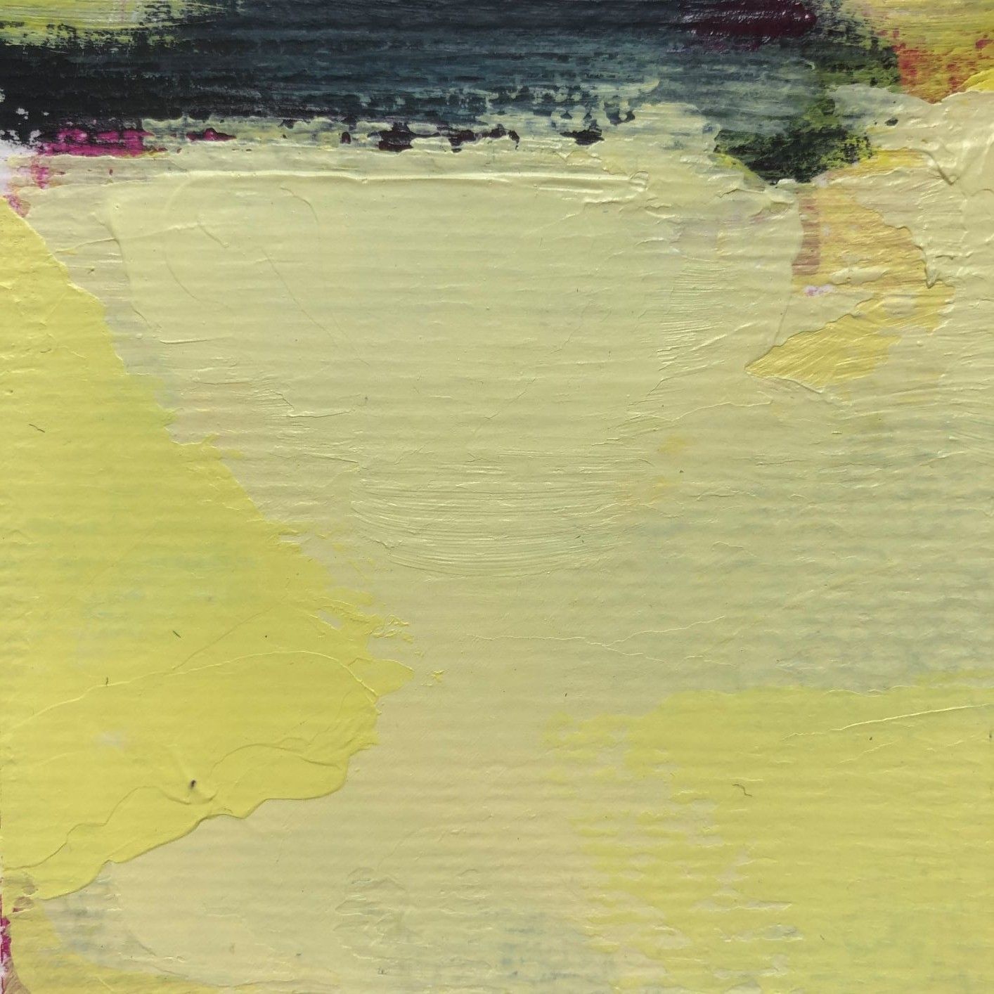 Sarah Foat Graffiti V Contemporary Abstract Landscape Painting Acrylic Paint on Paper Image Size: H 10cm x W 10cm Framed Size: H 30cm x W 30cm x D 1cm Sold Framed in a White Frame Please note that insitu images are purely an indication of how a piece may look Graffiti V is an original abstract painting by Sarah Foat. The vibrant