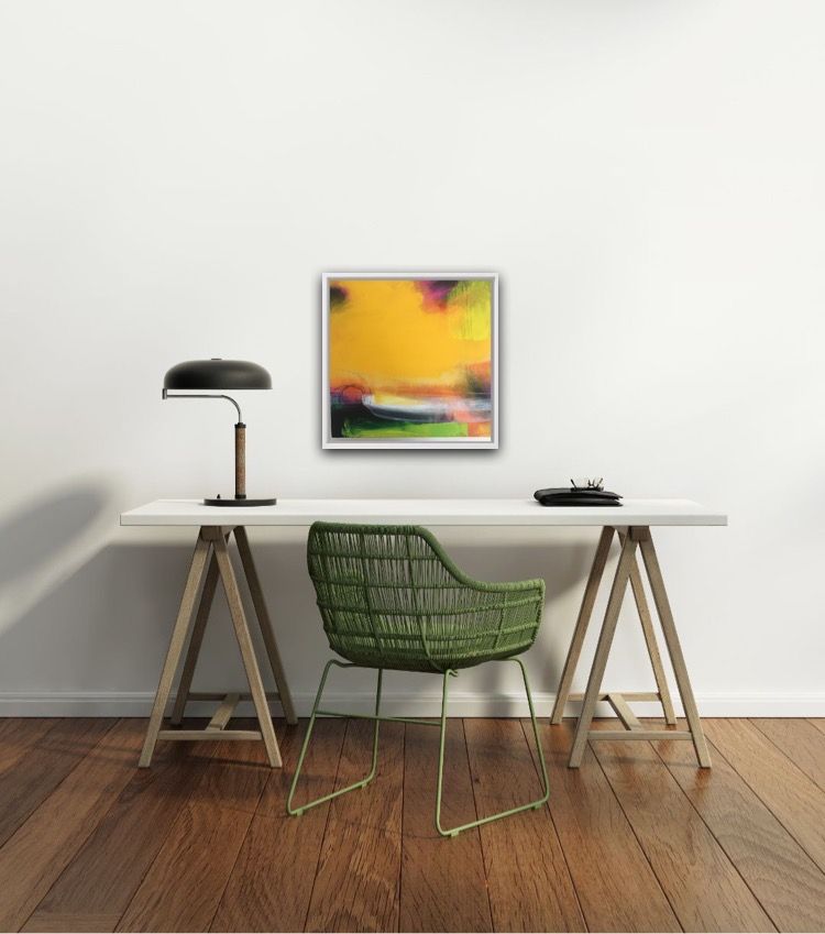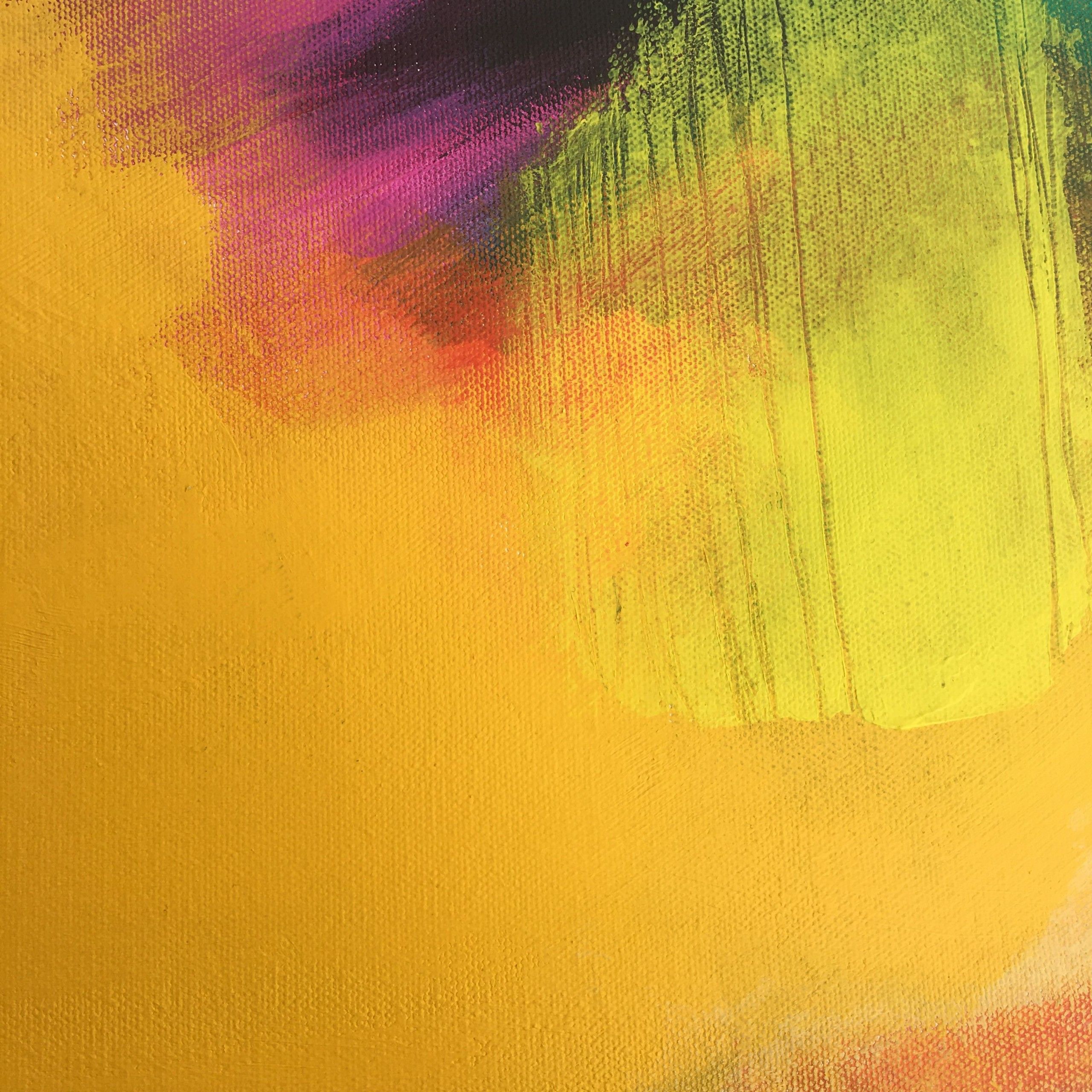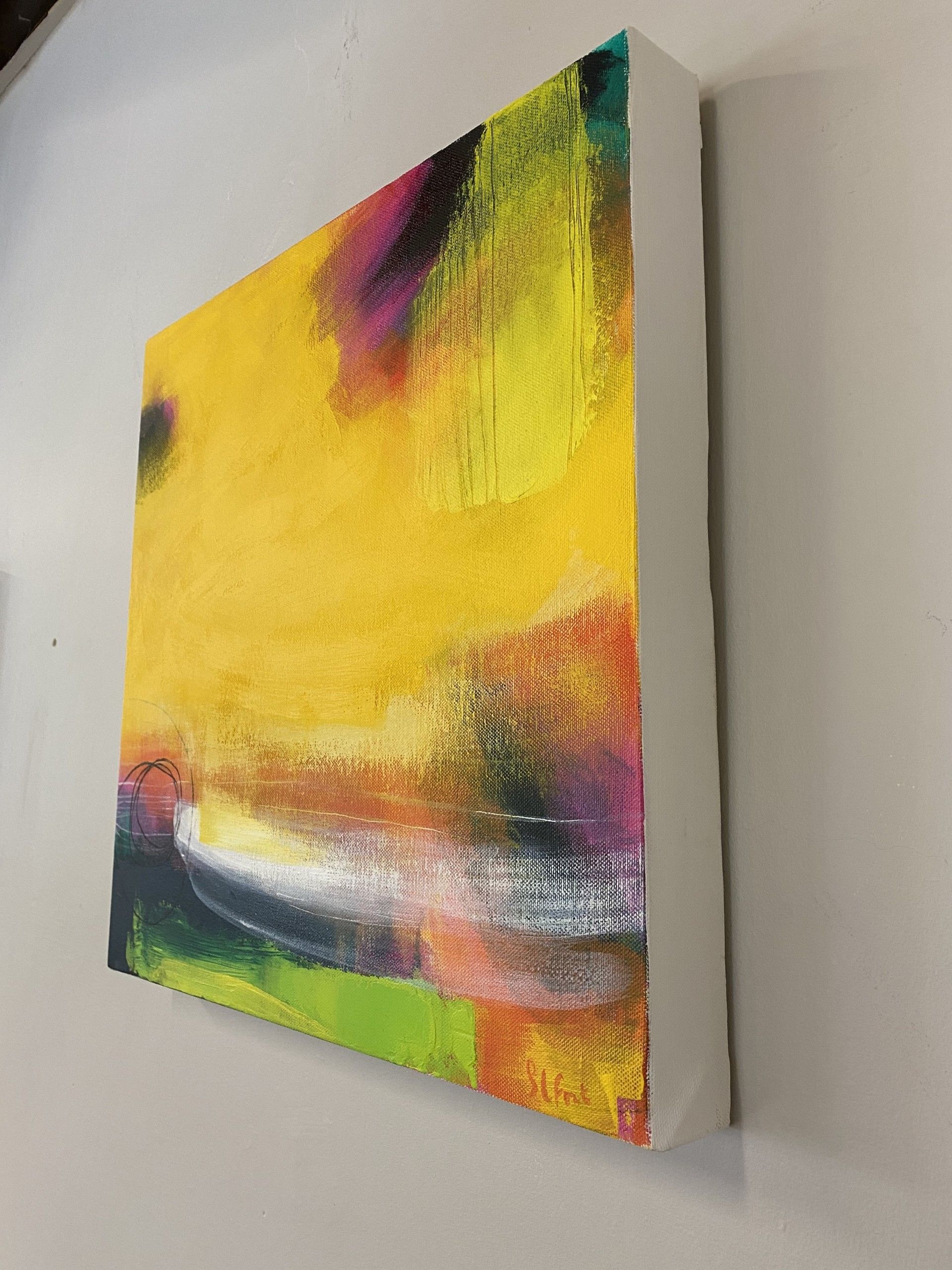 Sarah Foat I'm in Your Soul Original Painting Acrylic Paint on Canvas Canvas Size: H 40cm x W 40cm x D 3.5cm Sold Unframed Please note that insitu images are purely an indication of how a piece may look I'm in Your Soul is an original abstract painting by Sarah Foat. The various vibrant yellow tones contrasted by