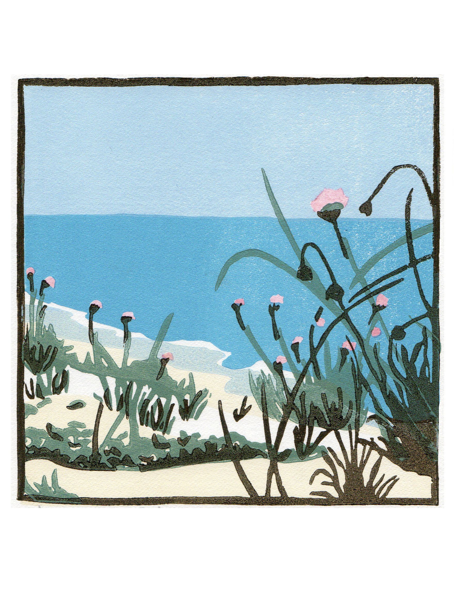 This print is now sold out but please have look at the other works by Fiona Carver available at Wychwood Art. FIONA CARVER Sea Pinks in the Dunes Limited Edition Linocut Print Edition of 50 Image size: 13.5 x 13.5cm Mounted size: 26.5 x 27cm (approx) Sold Unframed, mounted in pale cream Free Shipping Please note that in