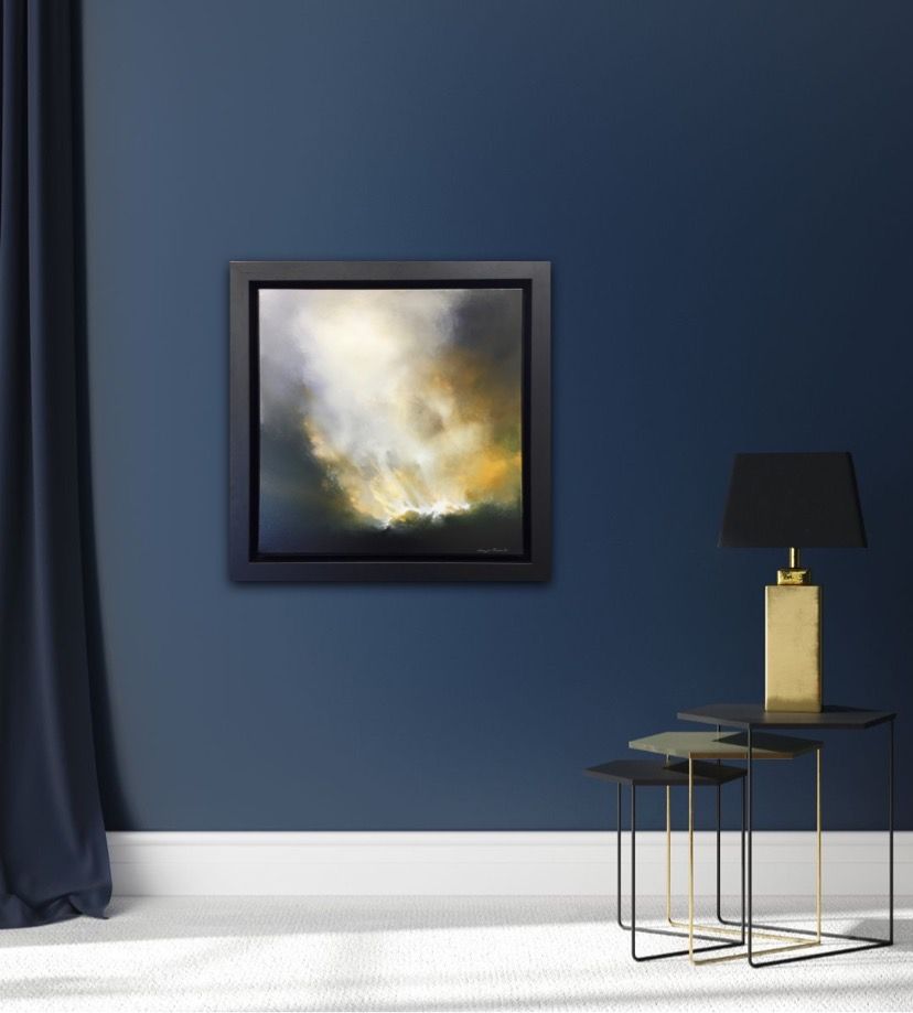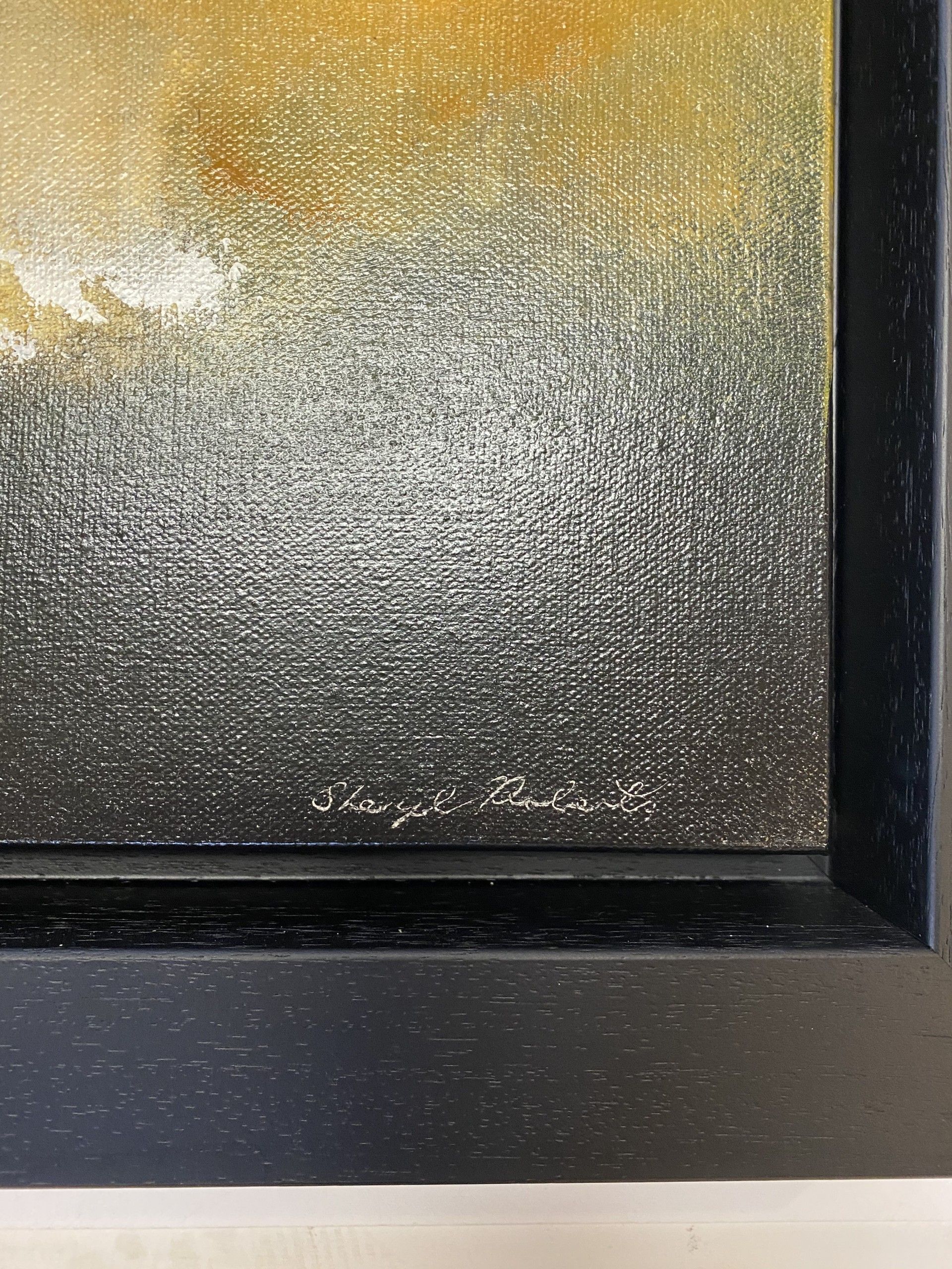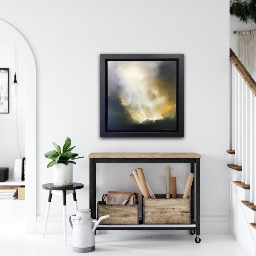 Sheryl Roberts Escape Original Seascape Painting Oil and Acrylic Paint on Canvas Image Size: H 61cm x W 61cm Framed Size: H 73m x W 73cm Sold Framed in a Black Floating Frame (Please note that in situ images are purely an indication of how a piece may look). Sheryl is an award winning contemporary landscape artist. Dubbed