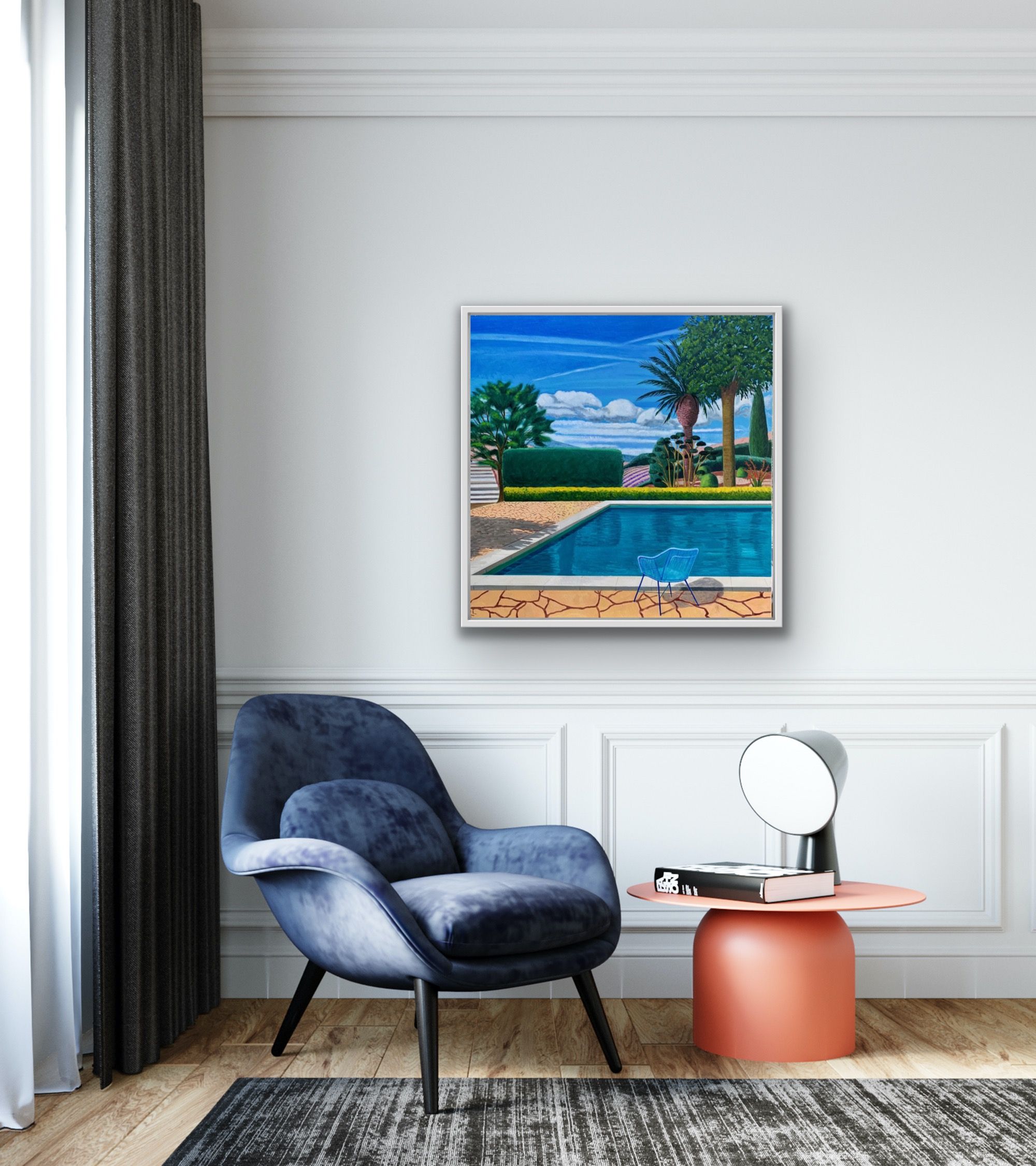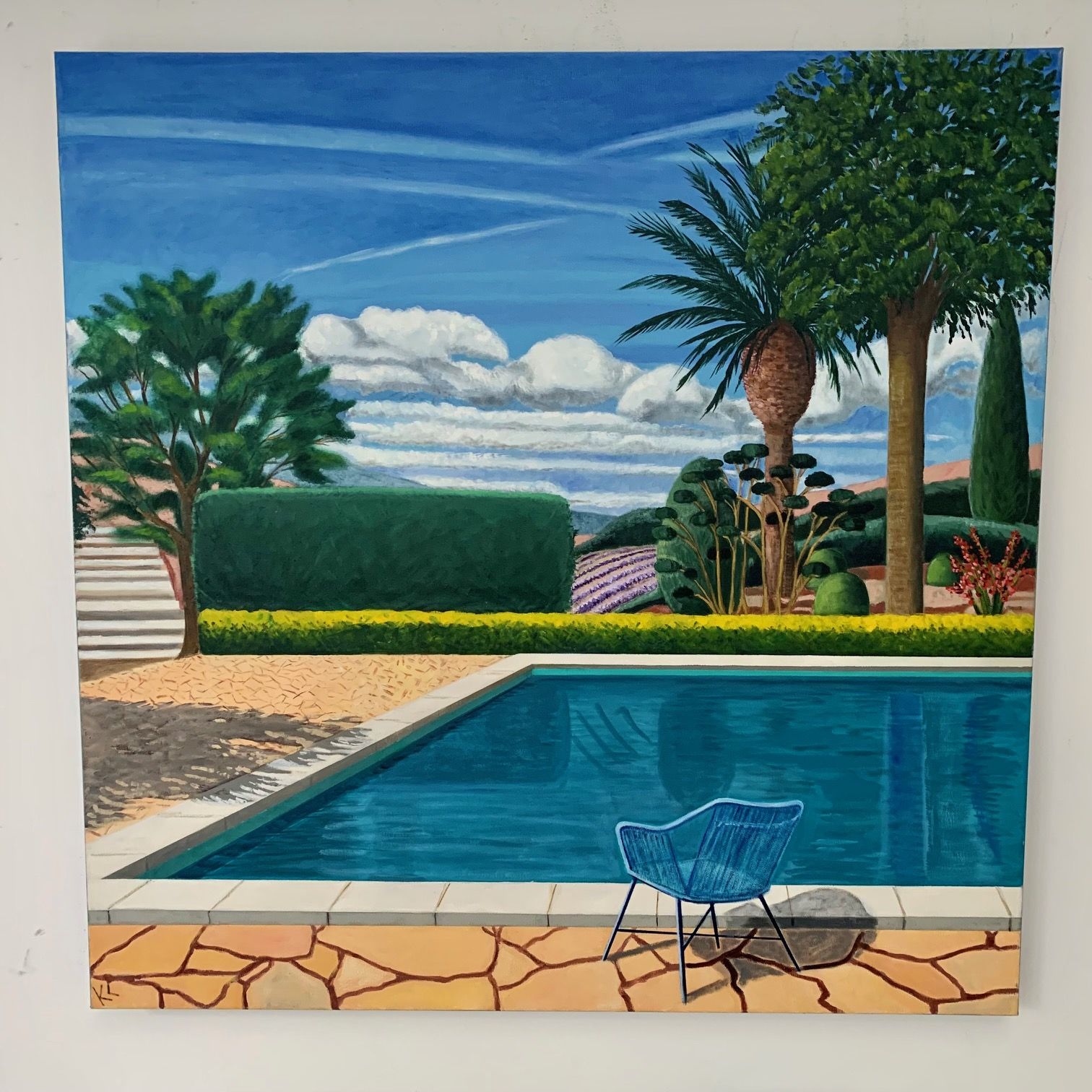 I lived in the south of France for 2 years near St Paul de Vence and this is a painting that will always remind me that I lived in one of the most beautiful places in the world. I love painting pools and water and I hopefully captured the atmosphere