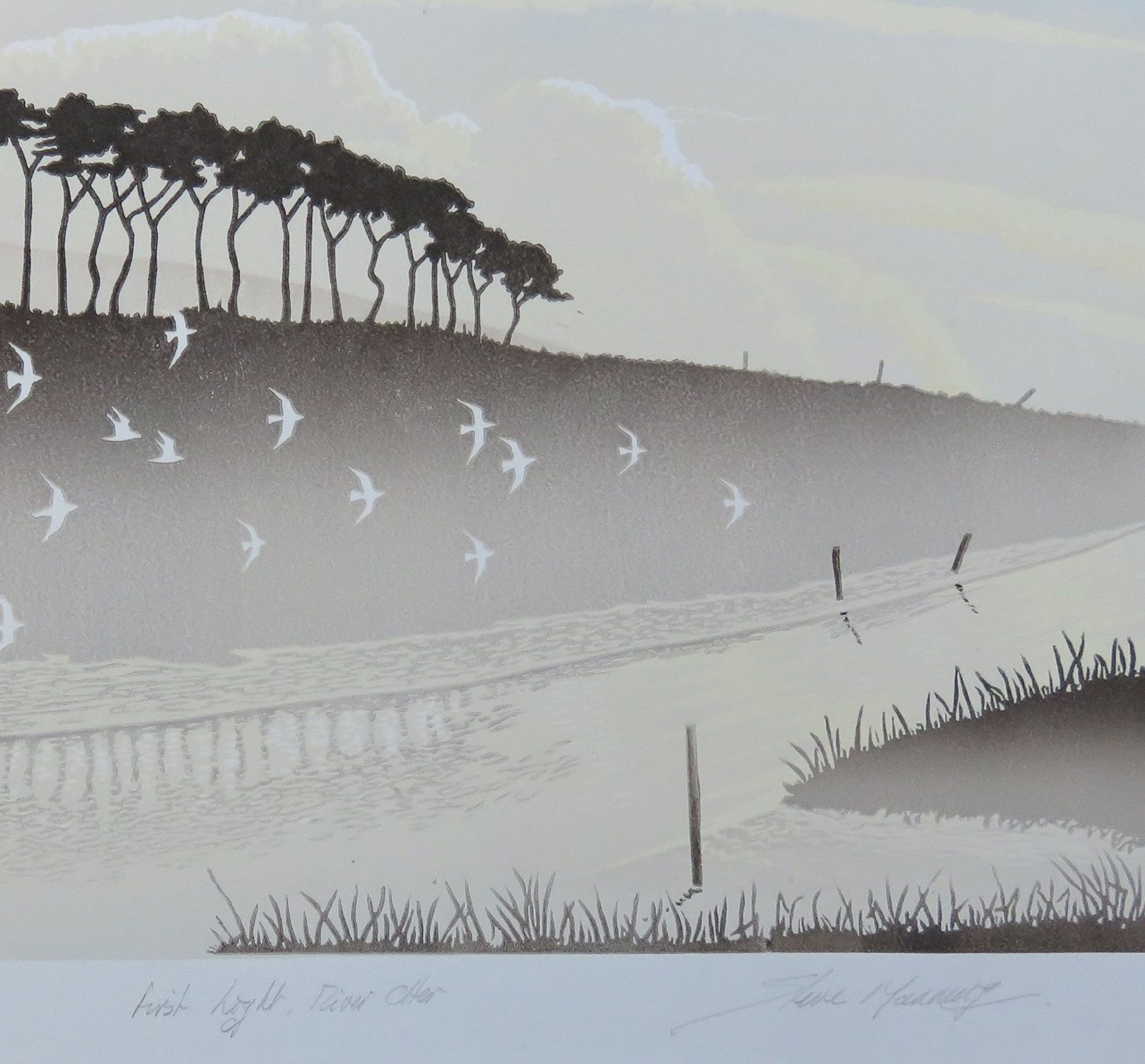 Steve Manning print . Steve comments "One of my favourite places to walk is the Otter Estuary in East Devon. The mood changes with the light, time of day and state of the tide. This image was inspired by an early winter's morning when mist still lay on the marsh."