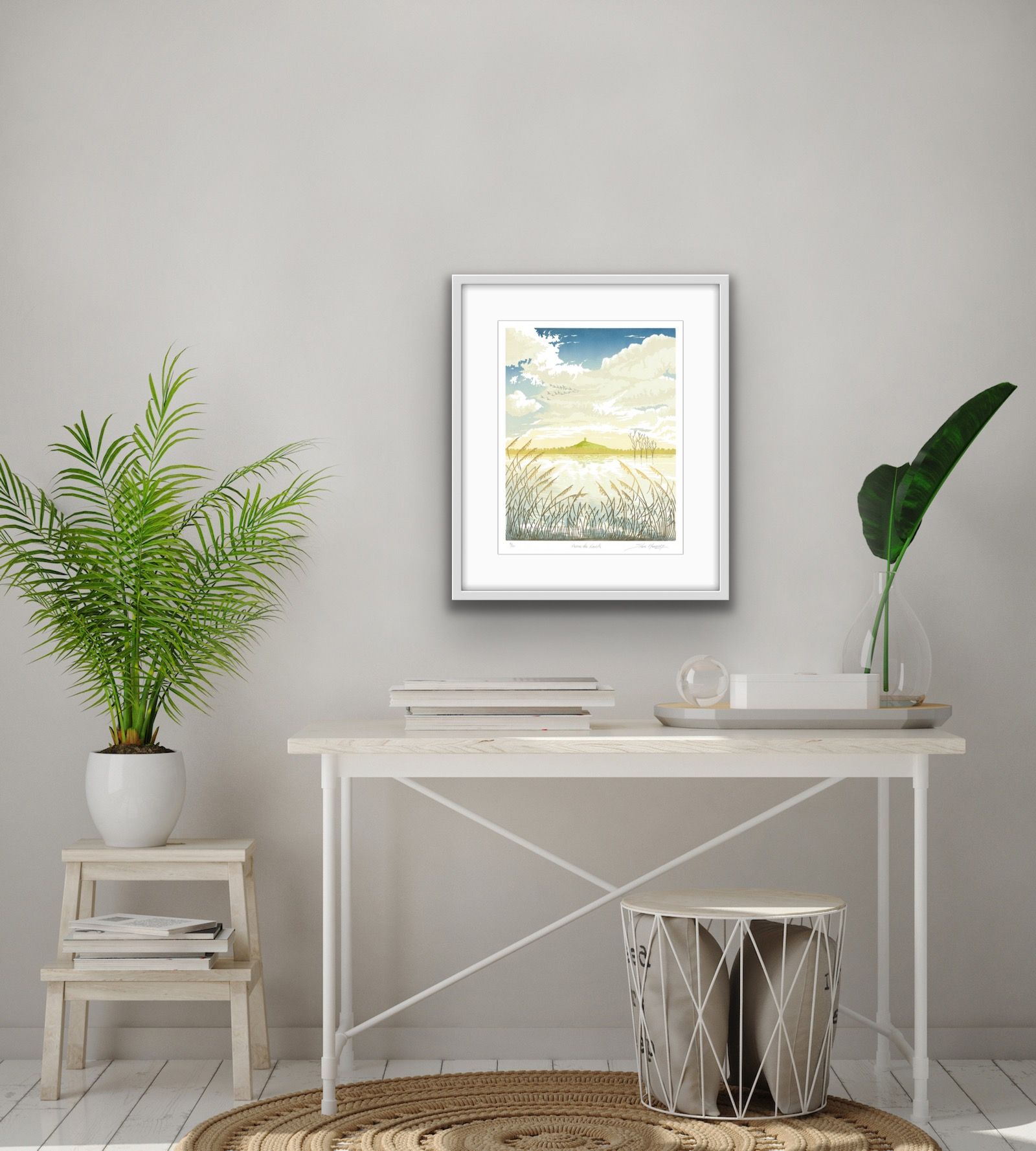 Steve Manning 'Across the Levels' Limited edition lino print on Zerkall 145gsm paper Edition: 10 Image size: H 34cm x W 27cm Paper size: H 38cm x W 44cm Unframed. Please note that the in situ image is purely an indication of how a piece may look. I love the vast skies that overarch the Somerset Levels emphasising