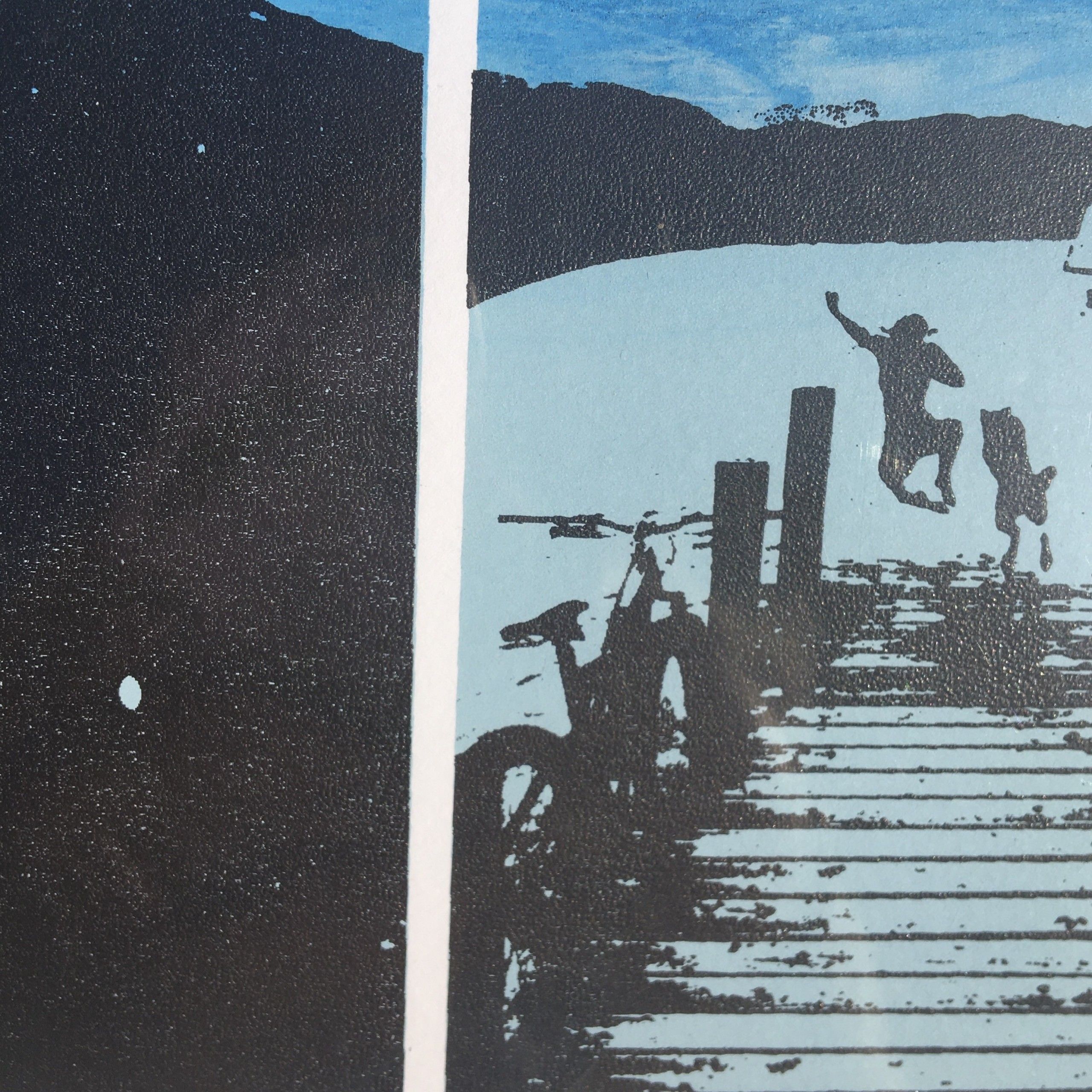 This print has now sold out but please have a look at the many other prints by Katie Edwards available at Wychwood Art. 'Summer Nights' - Original Silkscreen Print by Katie Edwards. This piece is part of a collection of Mountain Bike themed silkscreen prints that came about from a collective project