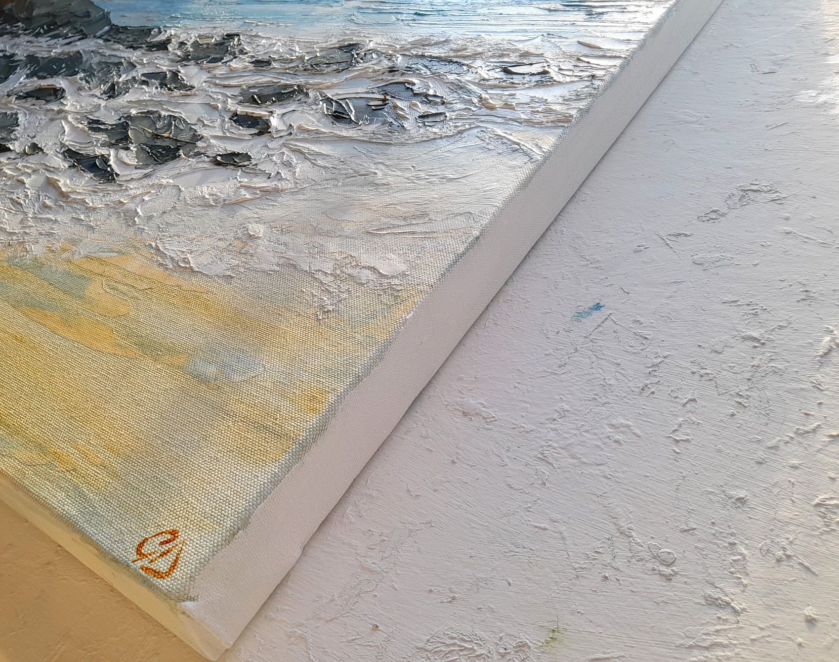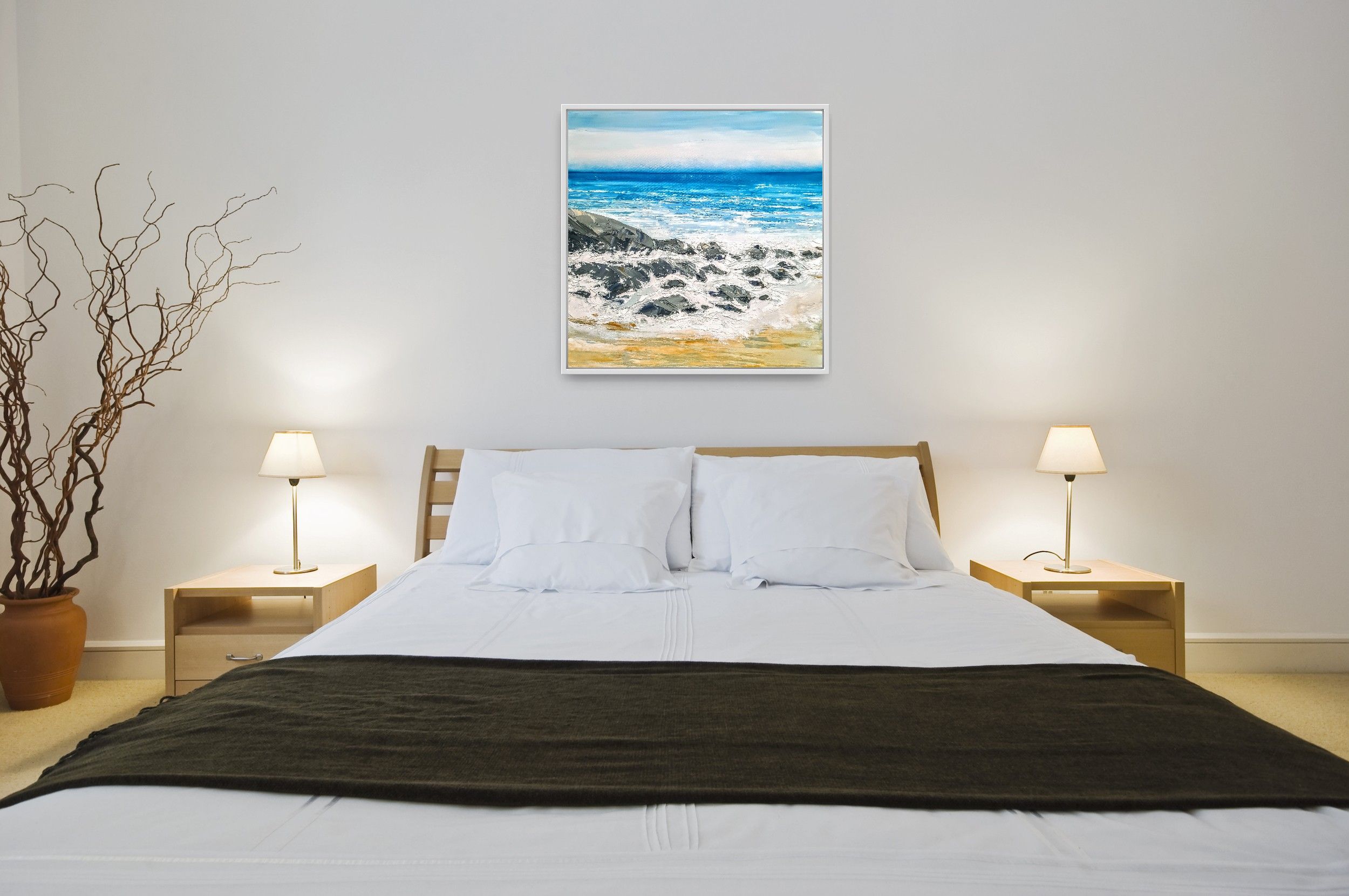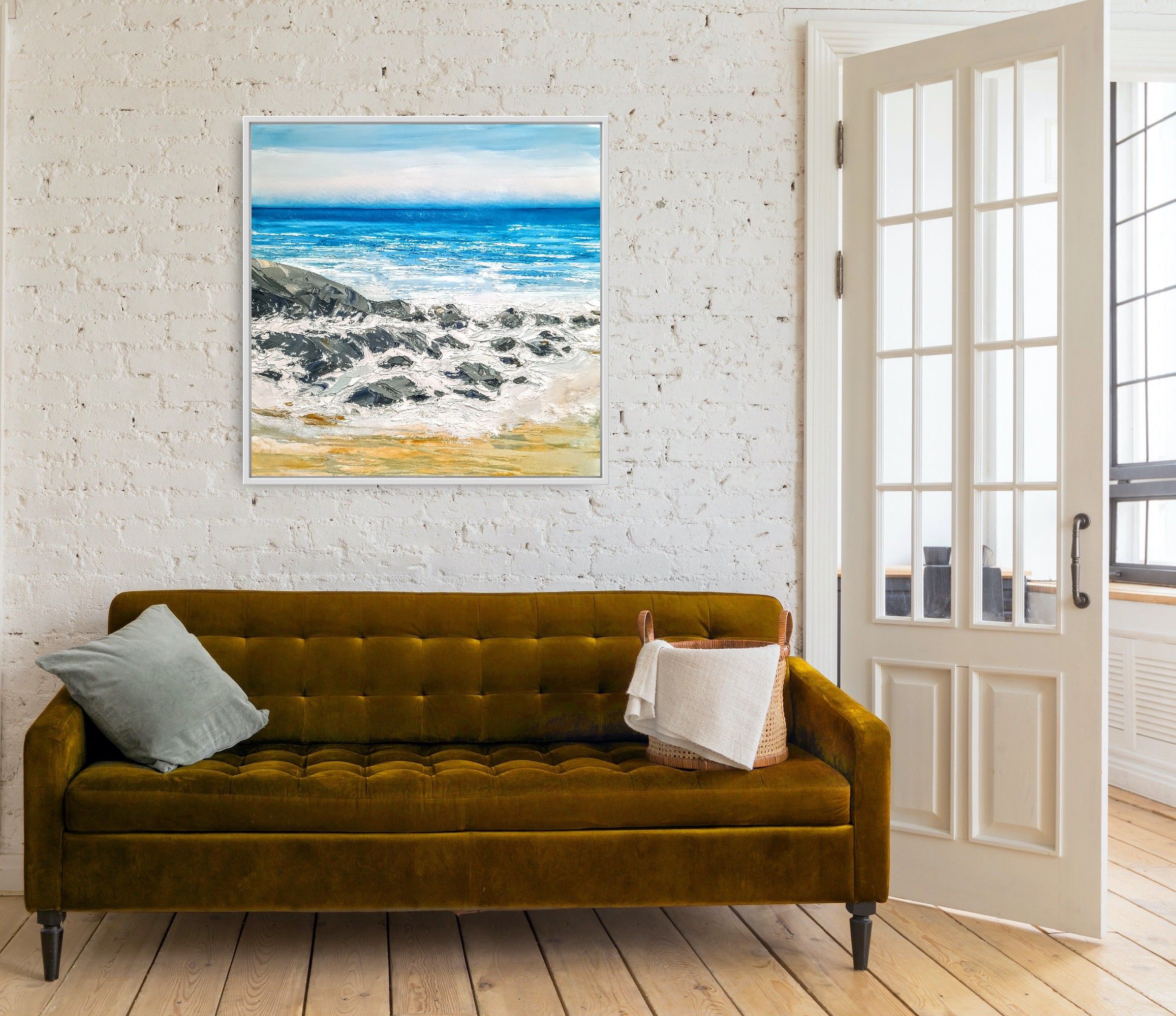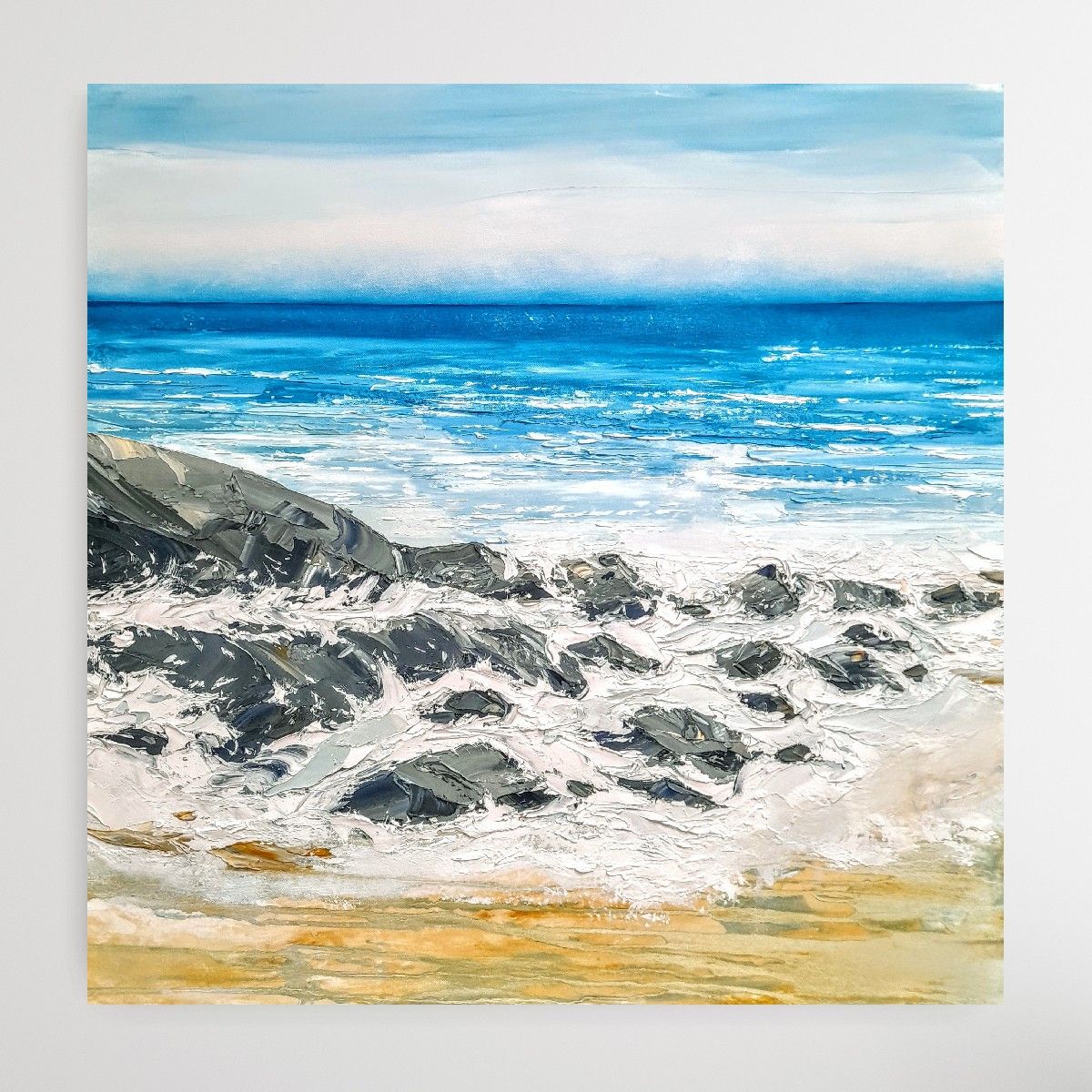A Summer On The Cornish Coast Inspired by days sat on the North Cornwall coastline watching the changing tide crashing over the rocks. The bright blue sea typical of the area sparkles in the distance. The way the pattern of rocks continues to evolve as the tide hides and reveals the landscape