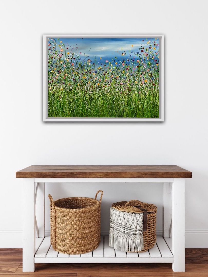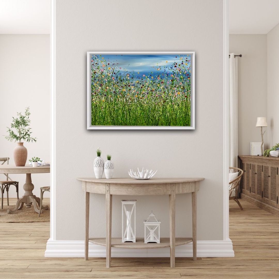 Lucy Moore Summer Pop Meadow #2 Original Landscape Painting Acrylic Paint on Canvas Canvas Size: H 42 cm x W 59 cm x D 2 cm Sold Unframed Please note that in situ images are purely an indication of how a piece may look. Summer Pop Meadow #2 is an abstract landscape painting of a vibrant summer