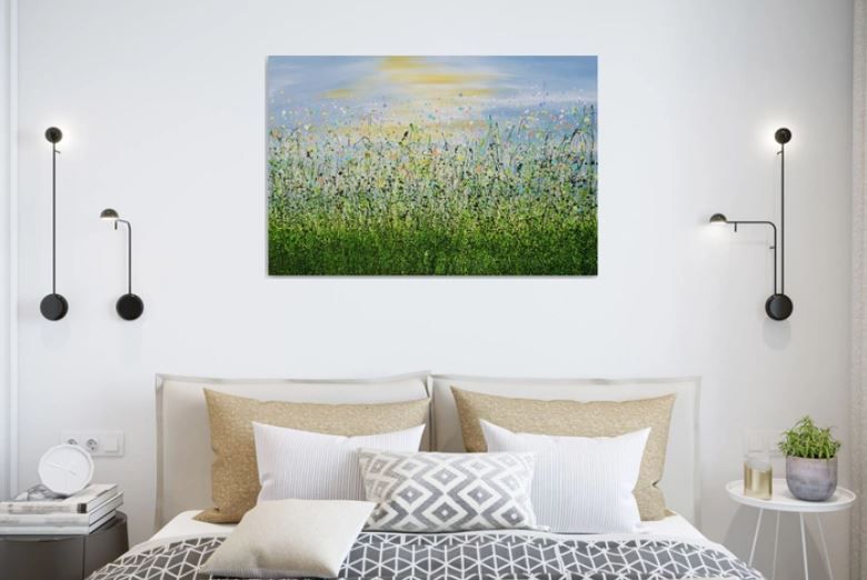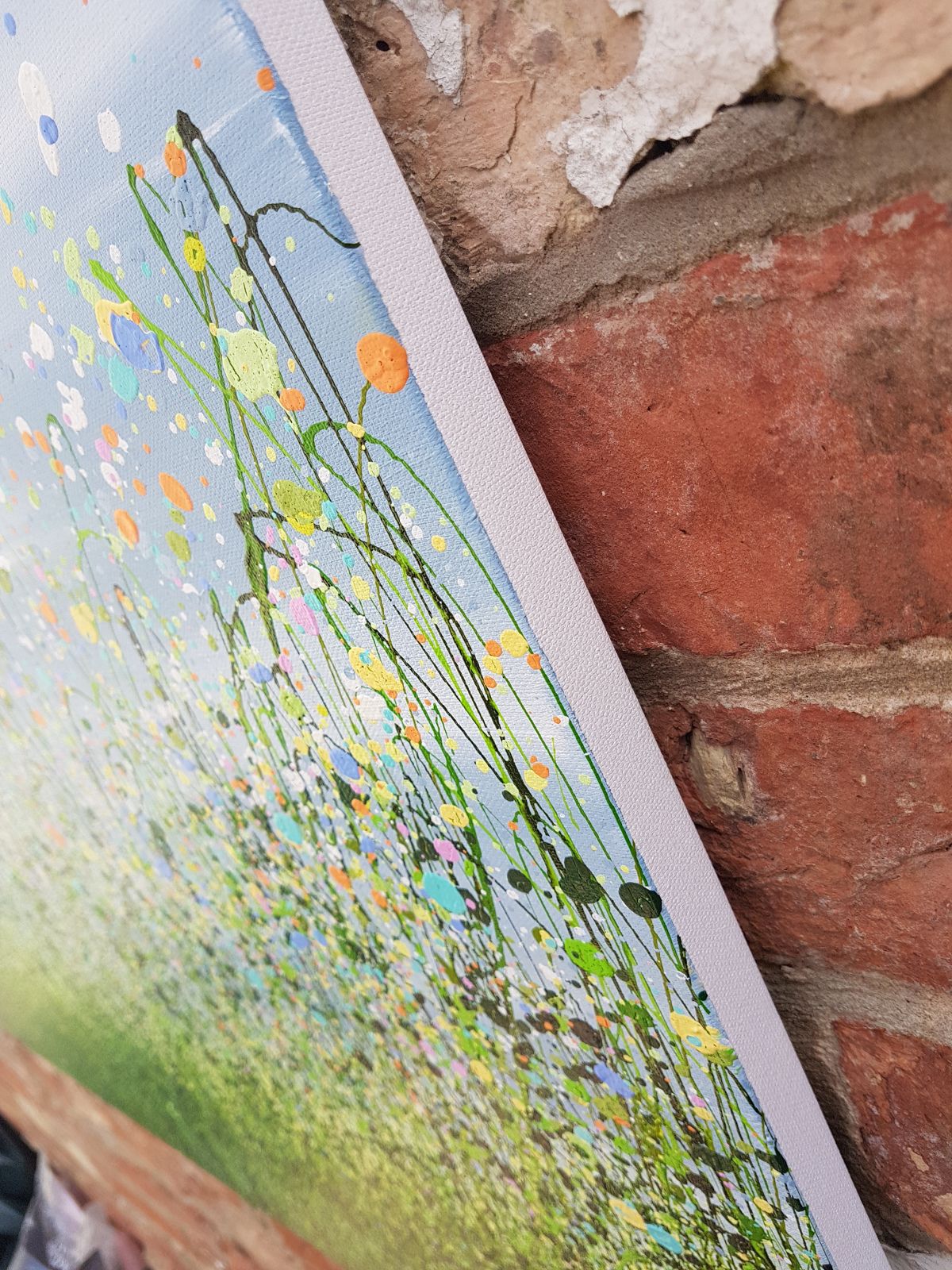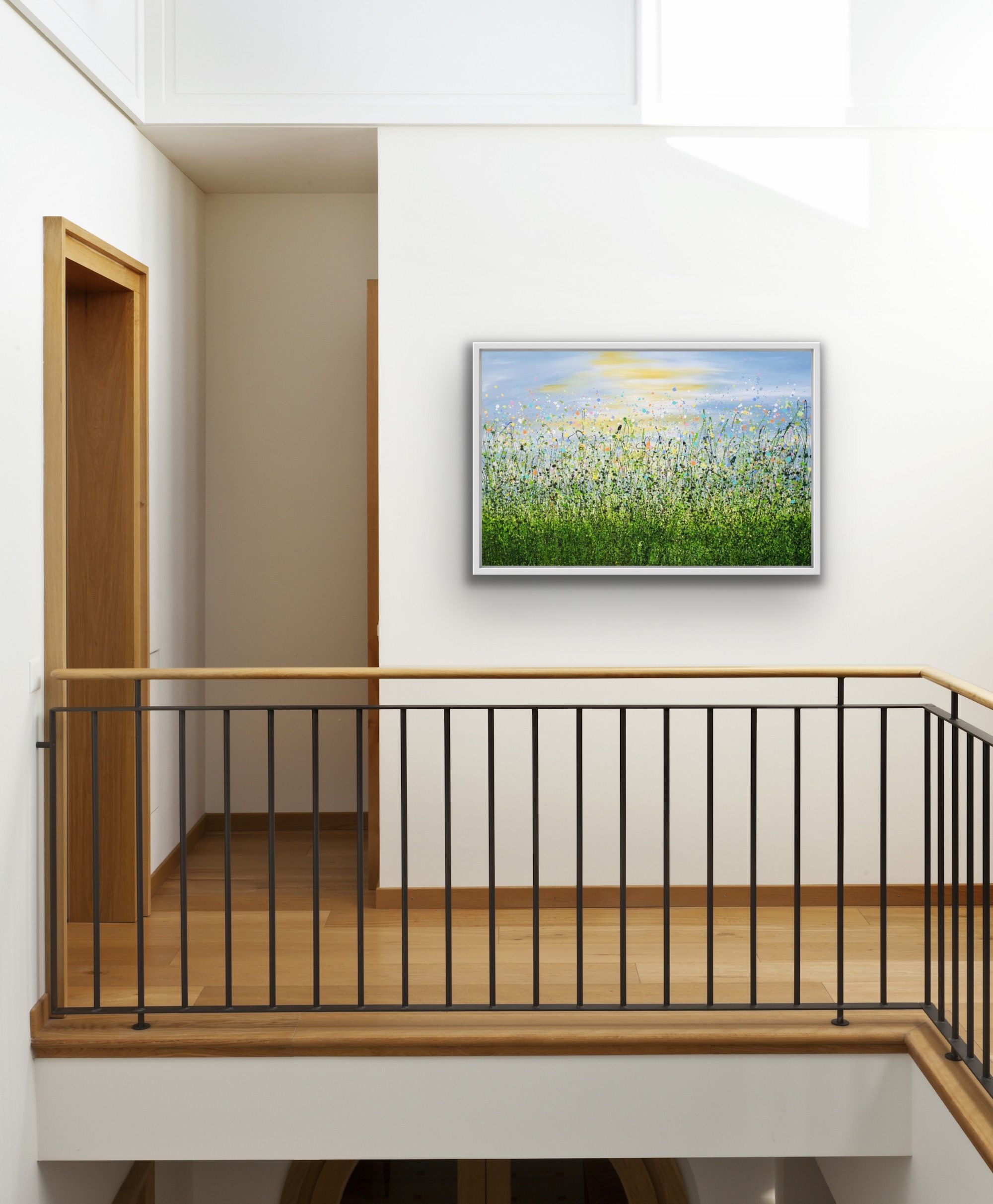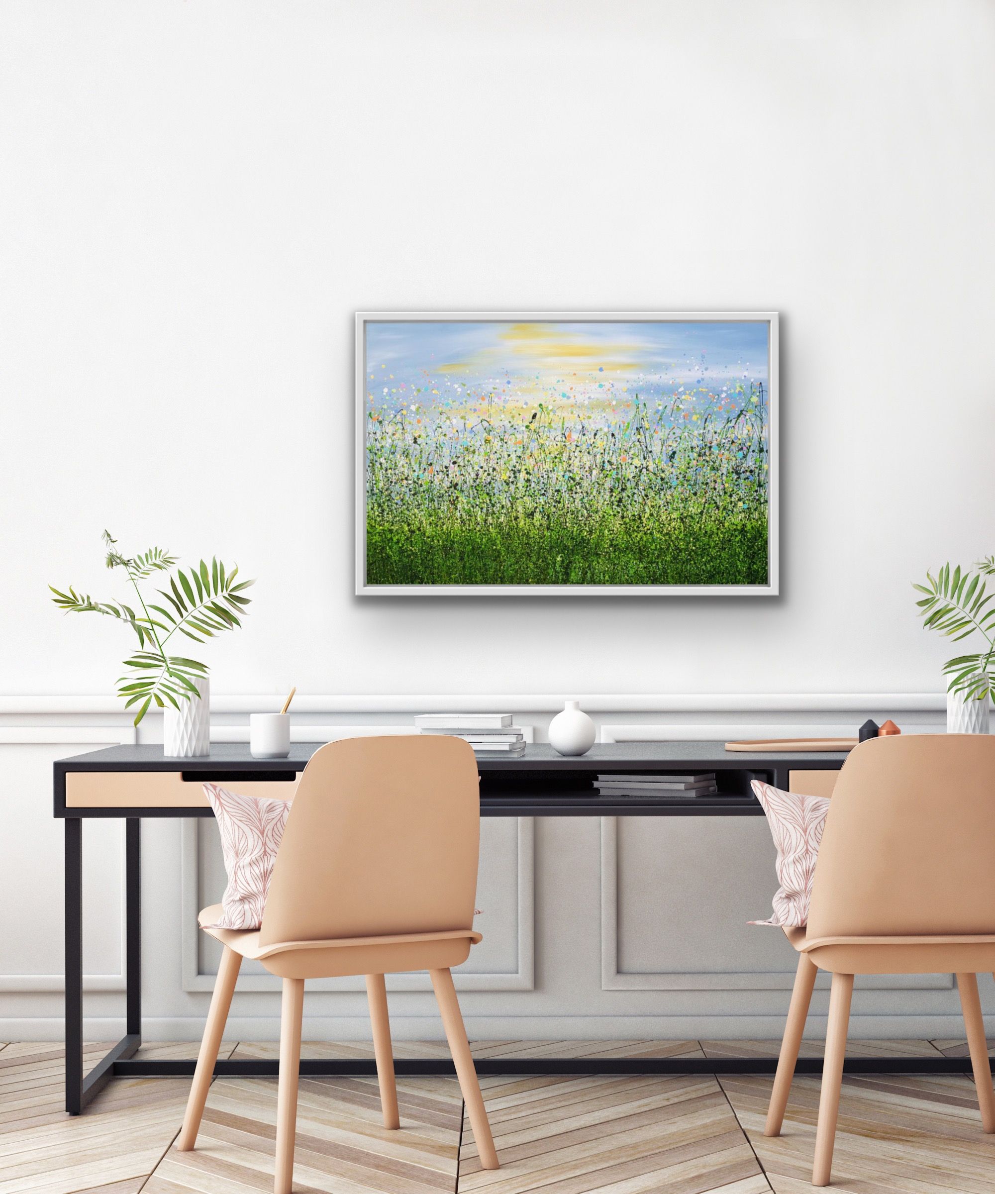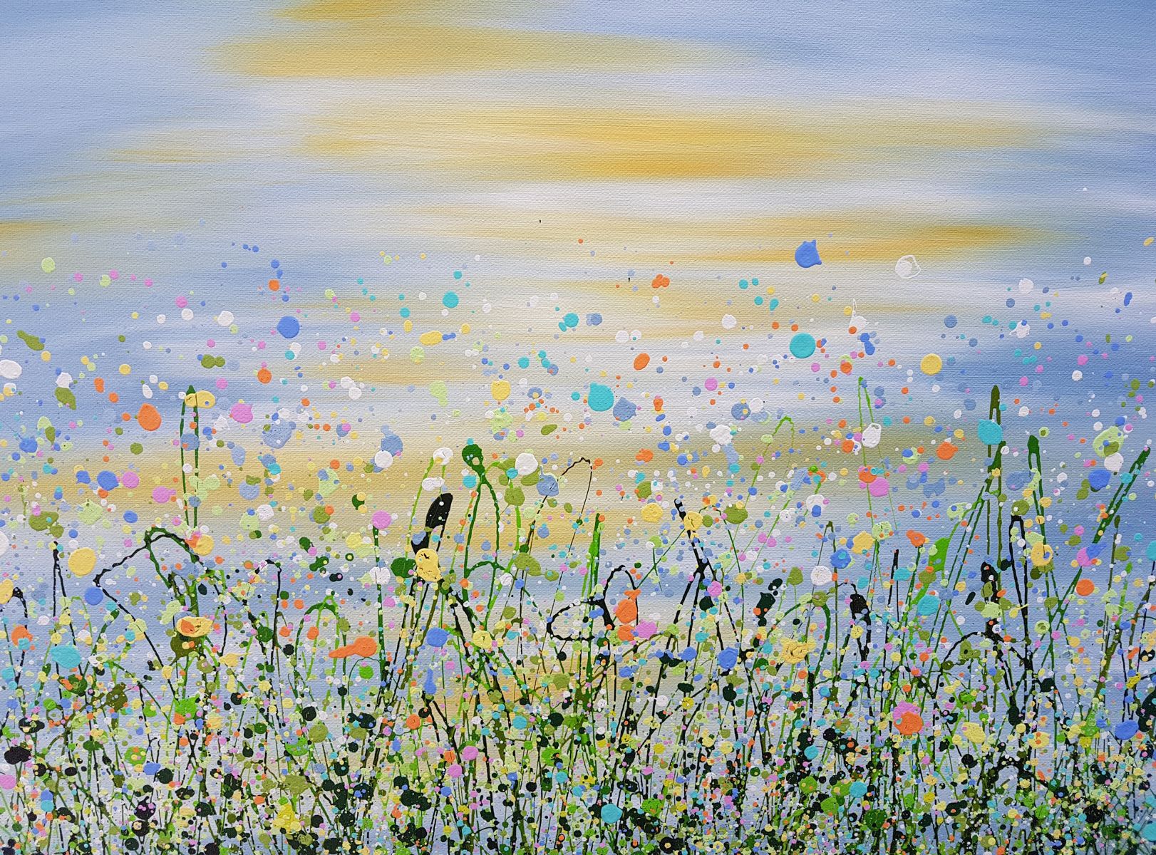 Summers Prelude an Original semi-abstract painting by Lucy Moore. Using her signature string grass technique Lucy has created a semi abstract twist to her classic meadow paintings. This piece would brighten any home or office, bring a little of the outside inside. Lucy Moore comments "I have always enjoyed being