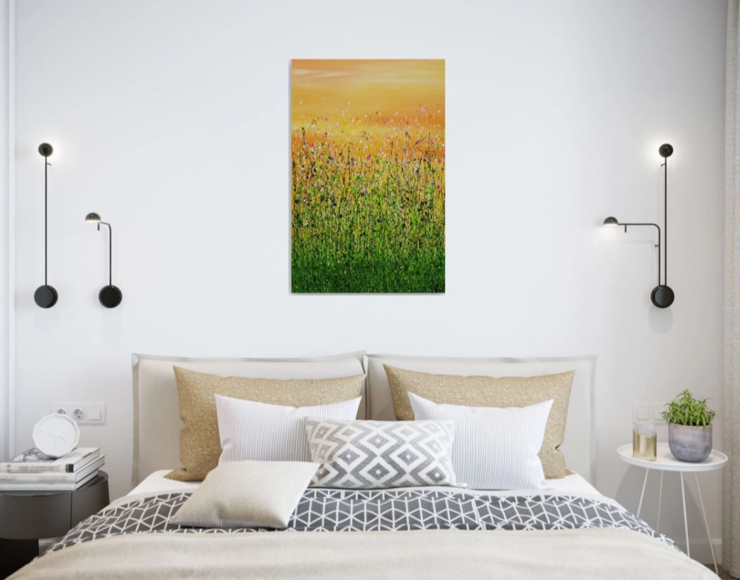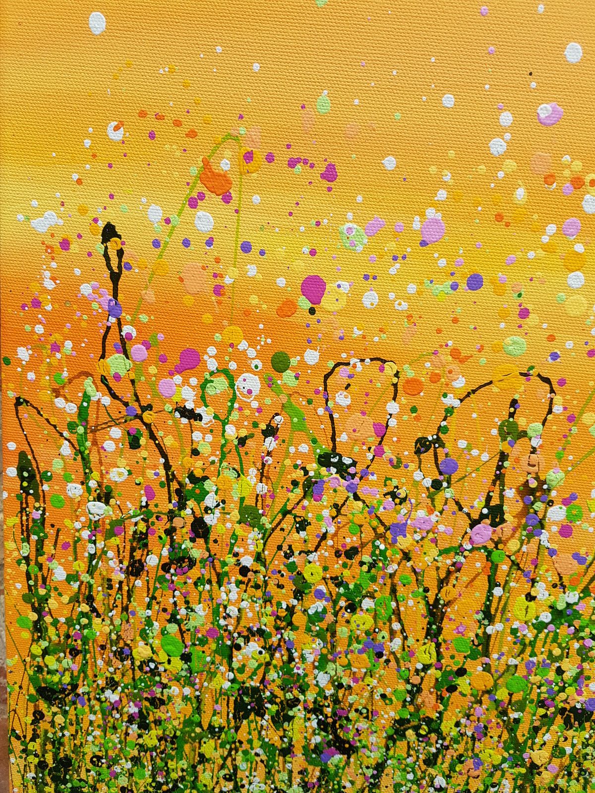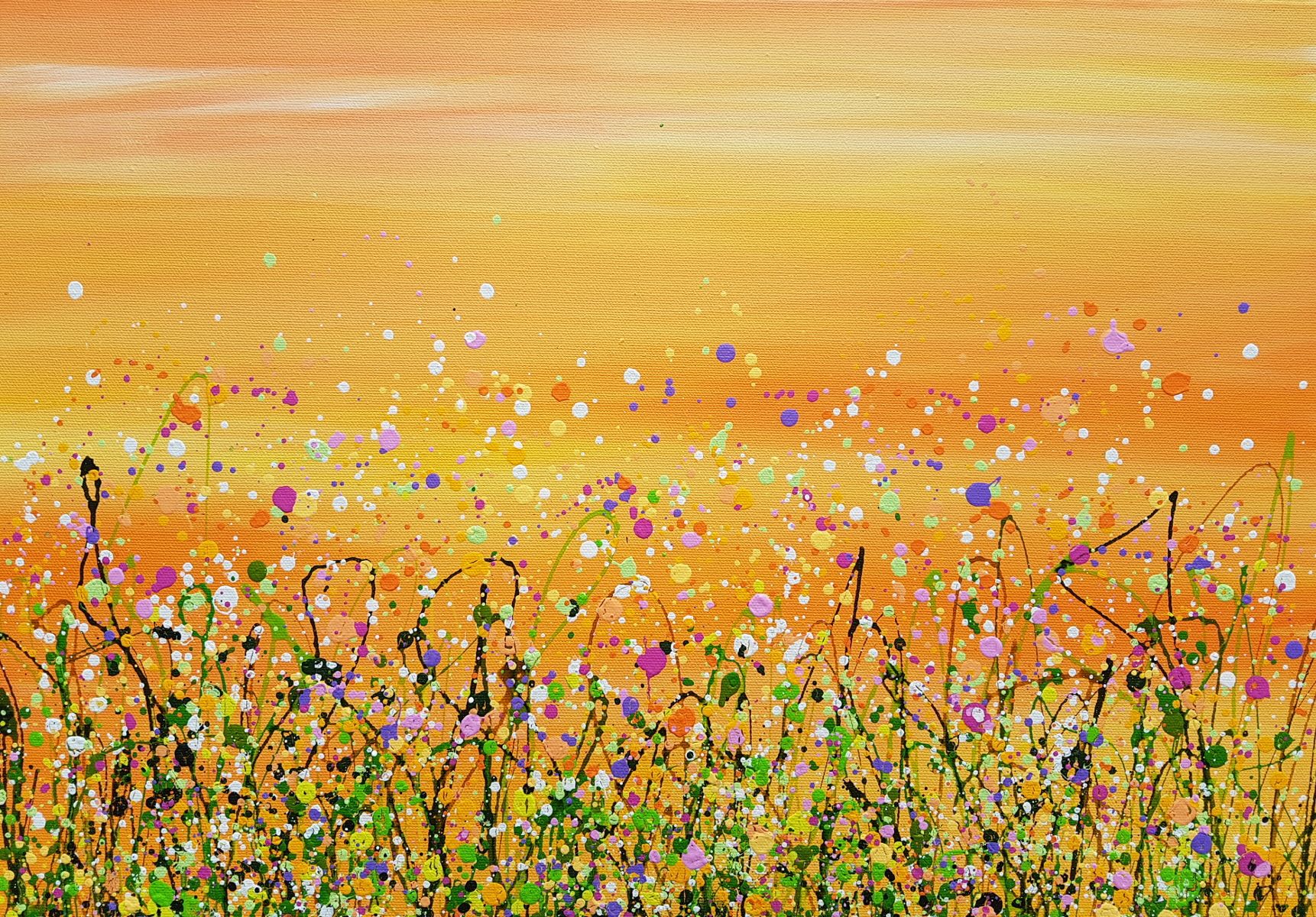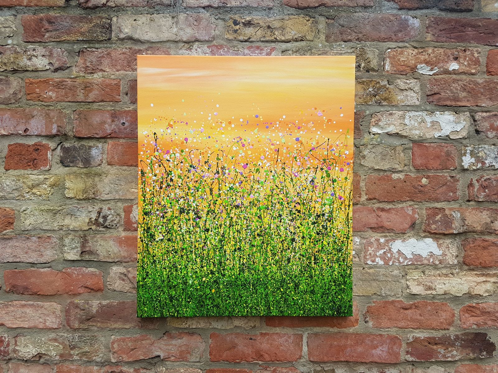 Exclusive to Wychwood 'Sunset Delight' is an original semi-abstract painting by Lucy Moore. Using her signature string grass technique Lucy has created a night time view of her classic meadow paintings. With an abstract twist I’ve created a vibrant statement meadow. This piece would brighten any home or office, bring a