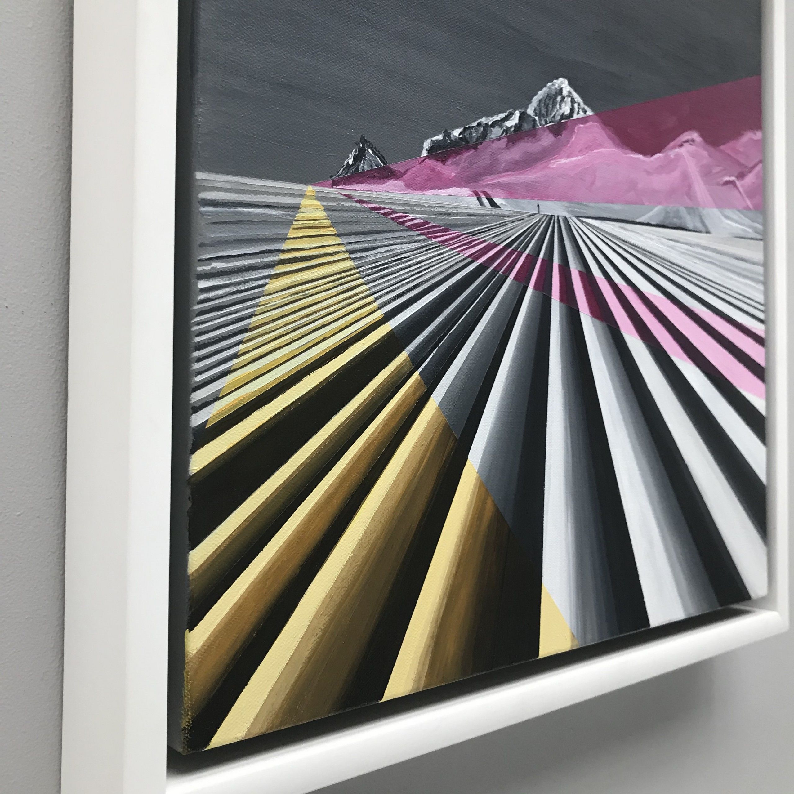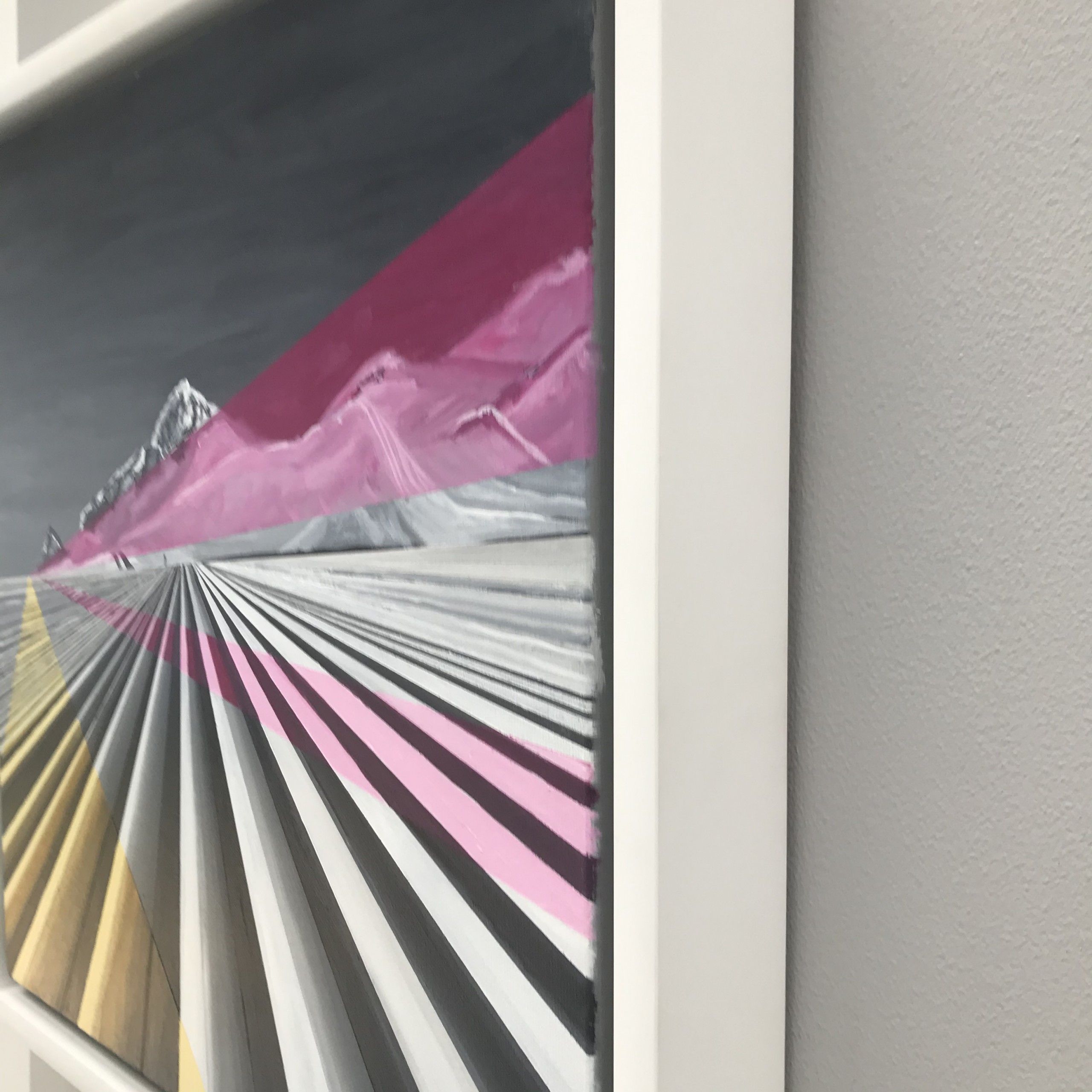 Acrylic landscape painting on deep box canvas. Winter landscape of a groomed ski slope and skier and mountains in the distance. Alpine scene, Painted during covid-19 pandemic while dreaming of the mountains and holidays!