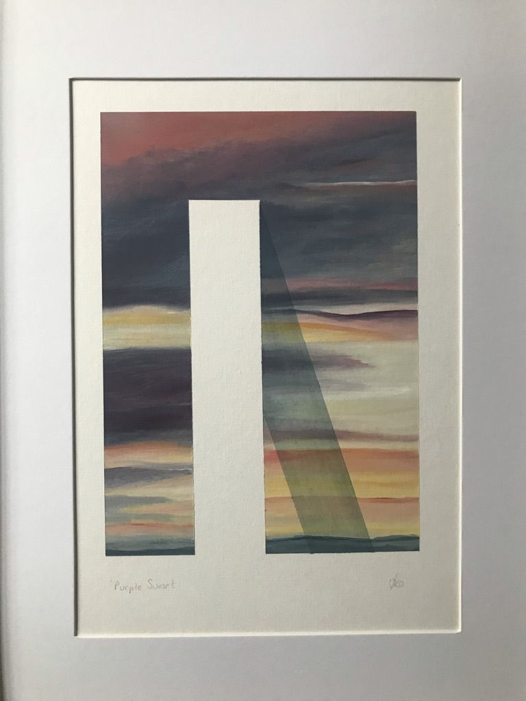 Purple Sunset' is one of Tania's new collection of 'Mind in the Sky' original oil paintings. These look great on their own or as a collection to create a gallery wall in your home. The calming soft oil paintings on artboard show lovely gaps in the sky with associated shadows.