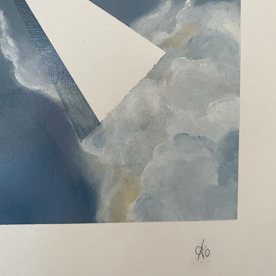 Skyline' is one of Tania's new collection of 'Mind in the Sky' original oil paintings. These look great on their own or as a collection to create a gallery wall in your home. The calming soft oil paintings on artboard show lovely gaps in the sky with associated shadows. Inspired