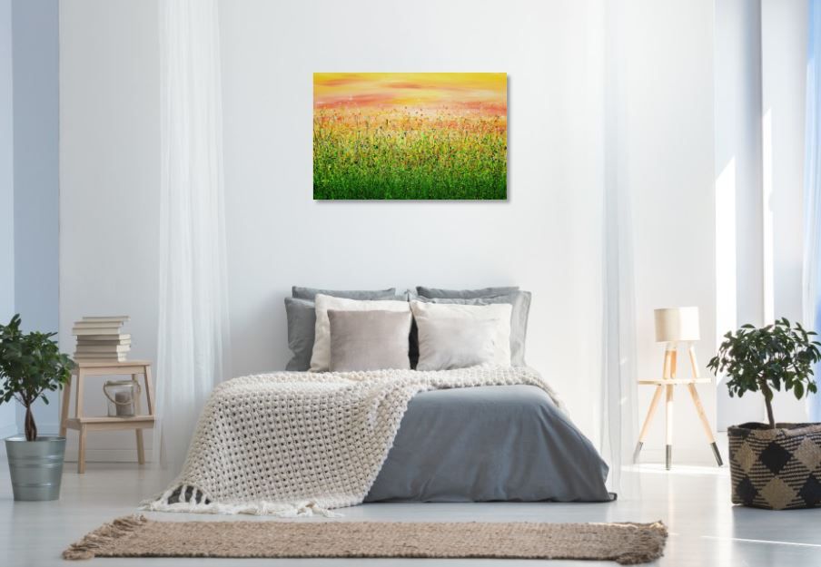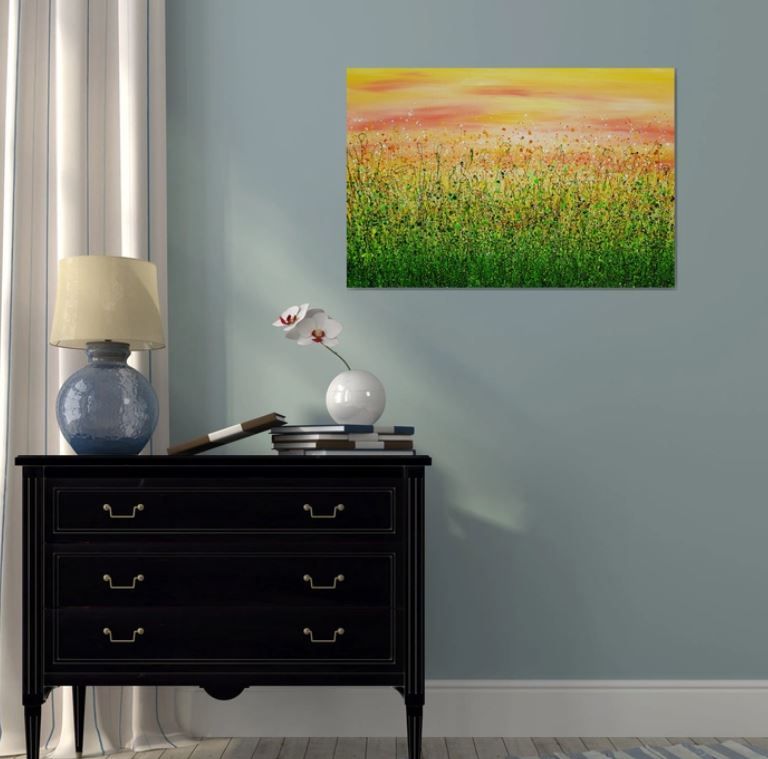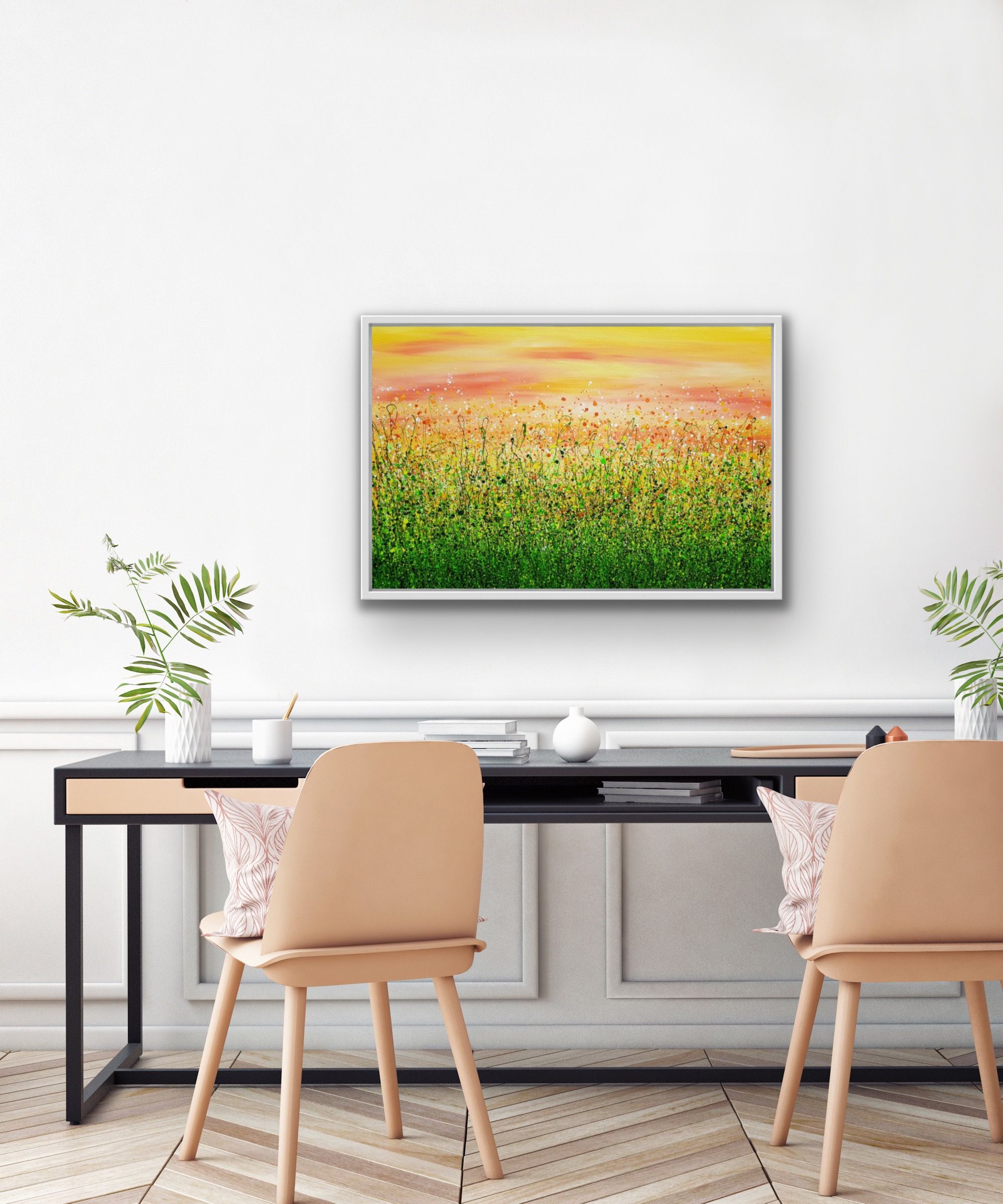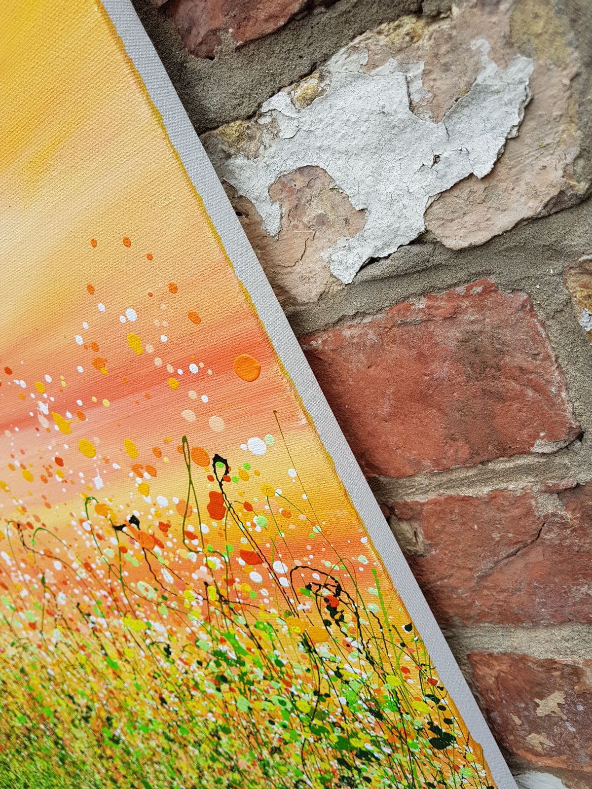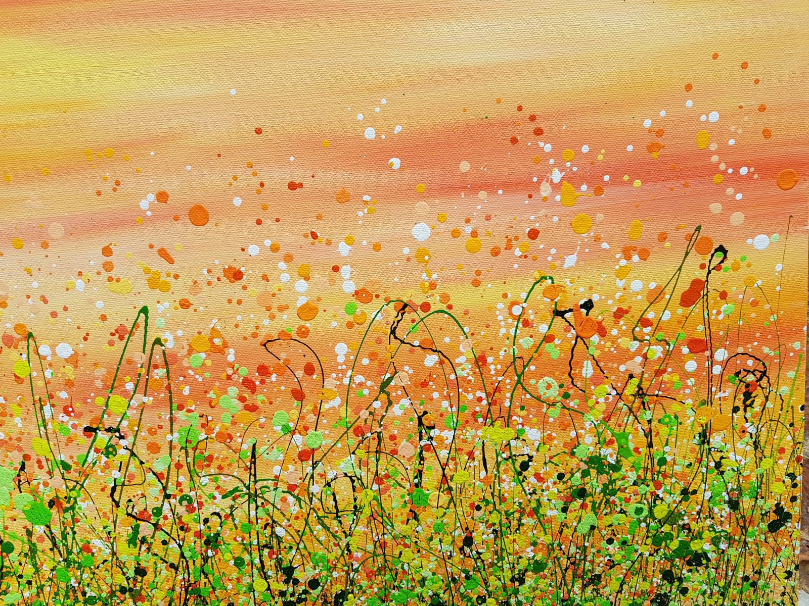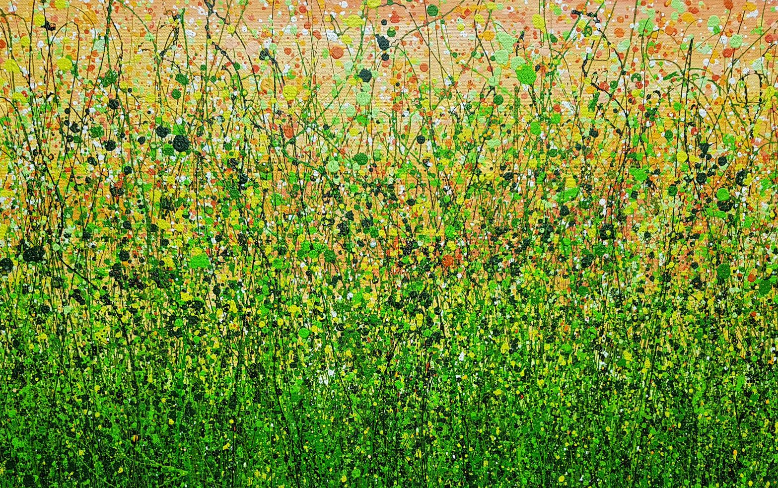 Tequila Sunrise an Original semi-abstract painting by Lucy Moore. Using her signature string grass technique Lucy has created a semi-abstract twist to her classic meadow paintings. This piece would brighten any home or office, bring a little of the outside inside. Lucy Moore comments "I have always enjoyed being creative