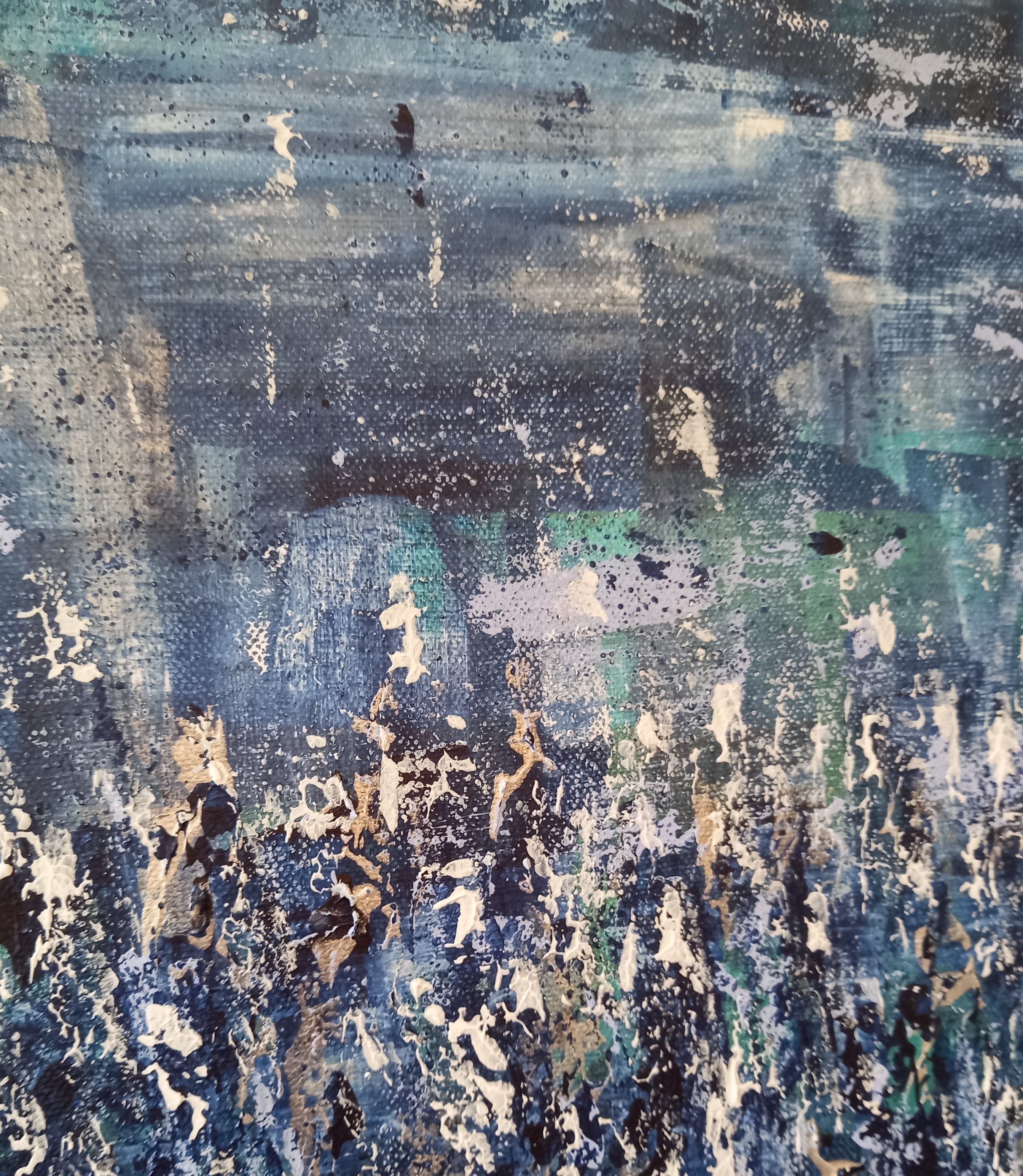 Inspired by Joe Simpson's novel about the 1936 Eiger North Face climbing disaster. The combination of colours and shapes reflect the harsh conditions. Yet... there is a beauty there.