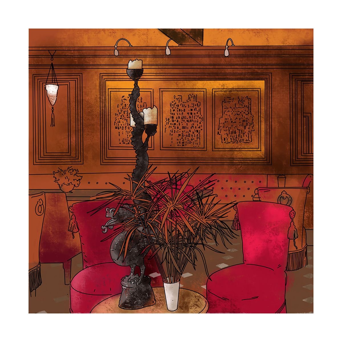 A very classy watering hole that I thought would make a lovely illustration. I like the flat, expressionless line that emphasises the colour and texture. It prints beautifully too.