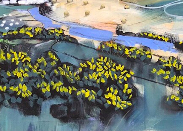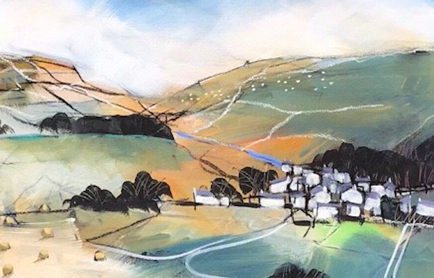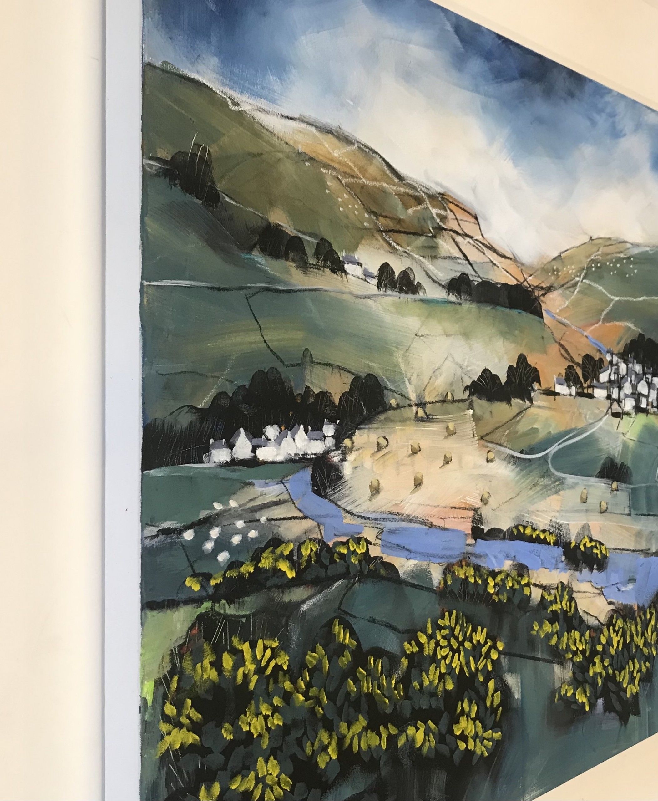 Relton and Marine’s choice of colour palette and line work encapsulates the North Yorkshire landscape in this original painting. The river, which wraps around the village of Linton, is used to mark the central piece of the artwork and directs the viewer's eye 'Towards Linton'.