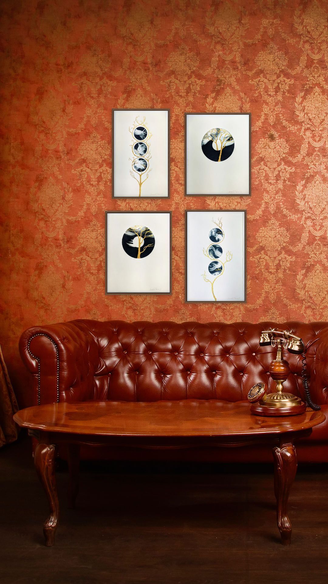 Tree of life series; In this series I have wanted to highlight the beauty, that we are connected to all living things, and that we are especially reliant as a species on the magnificent, varied trees in our landscapes. The decorative trees in this piece are reminiscent of Japanese art, where