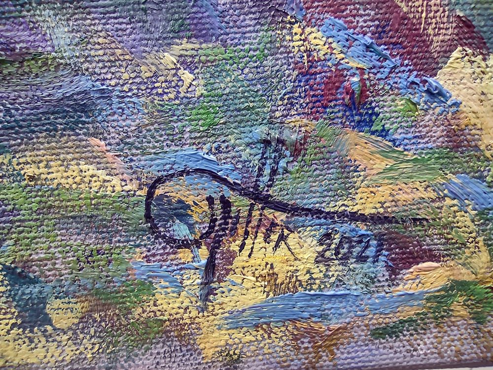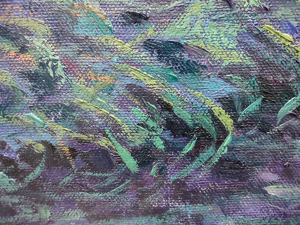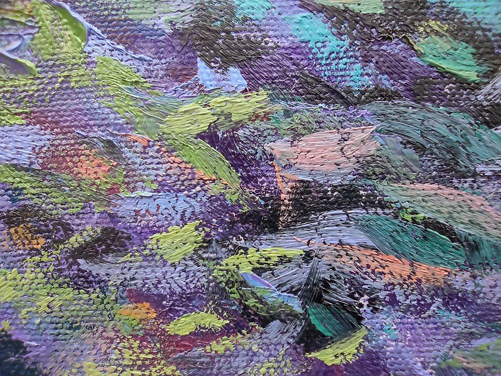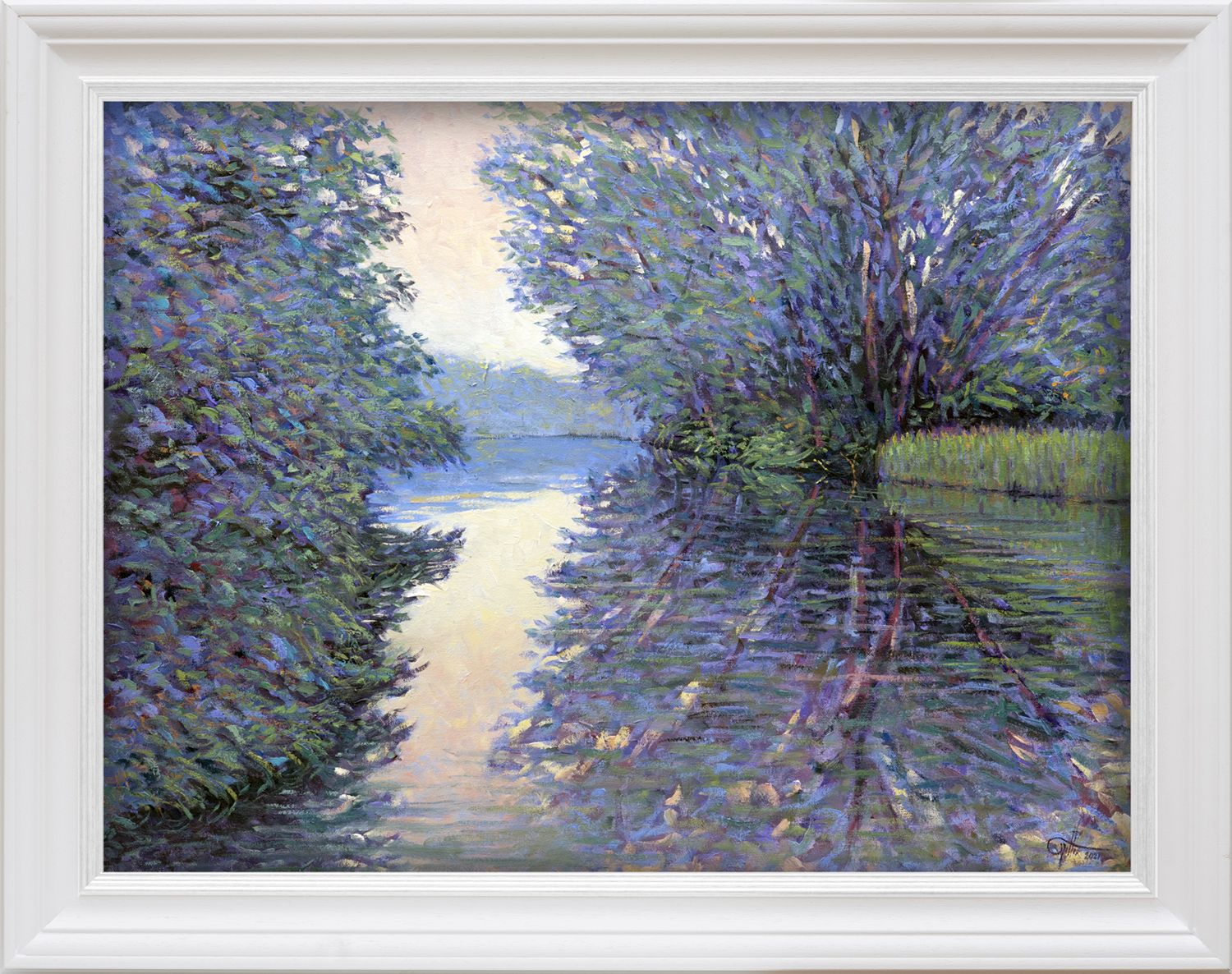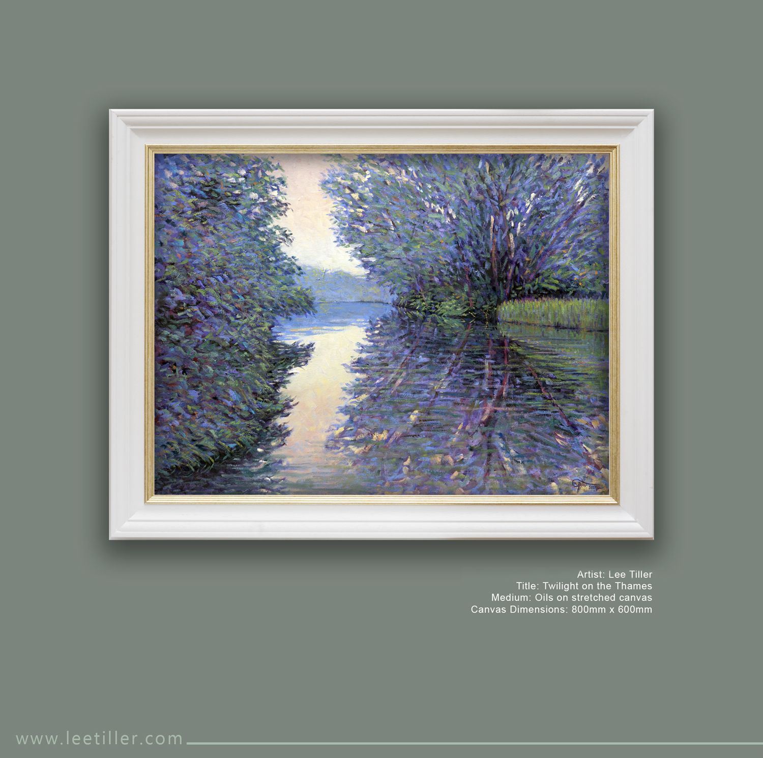 Please note that insitu images are purely an indication of how a piece may look. In ‘Twilight on the Thames’ Lee Tiller has returned to a motif he knows and loves. He has used a gentle palette of colour, ranging from dusky purples and violets to harmonising lustrous greens. He