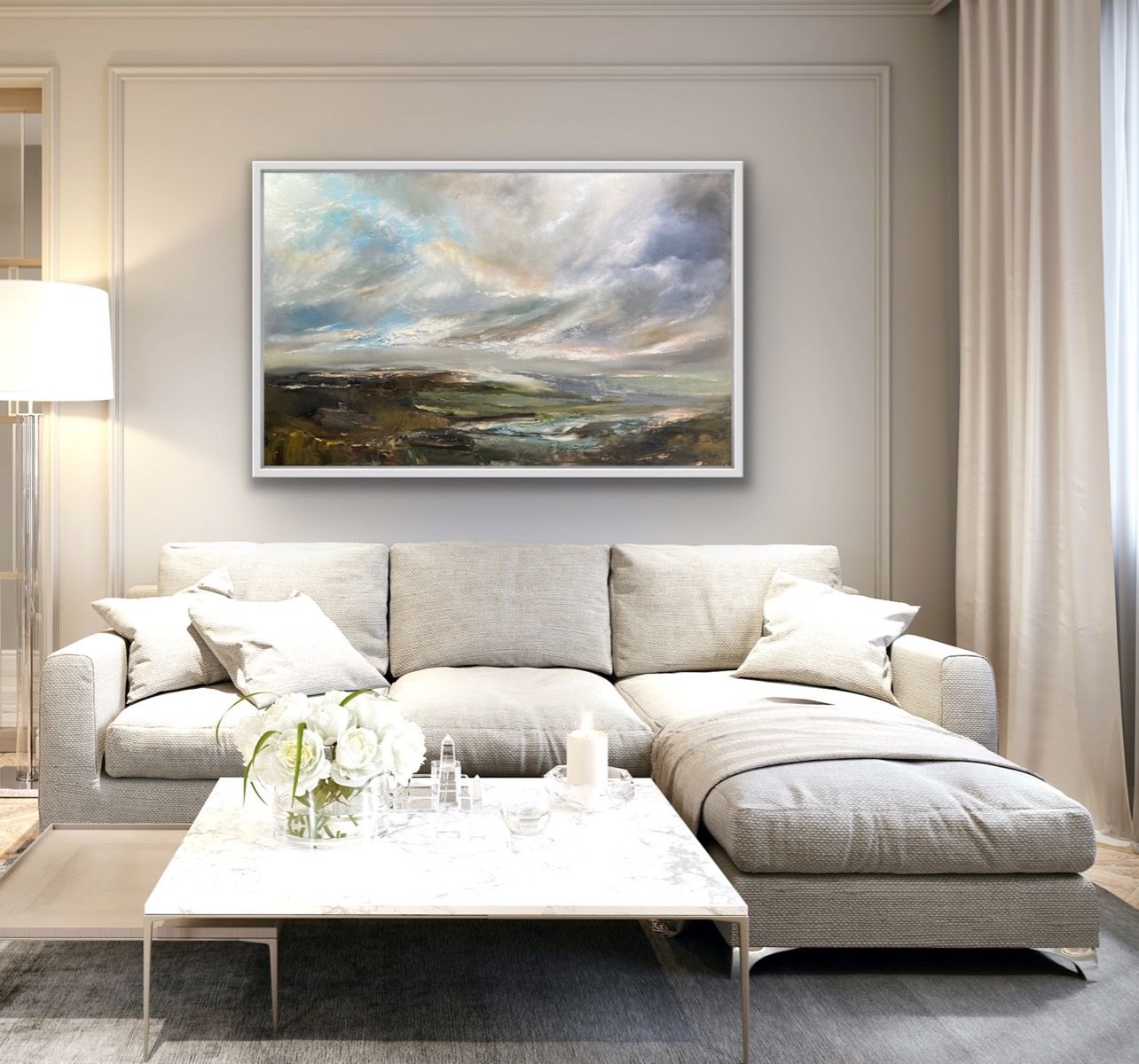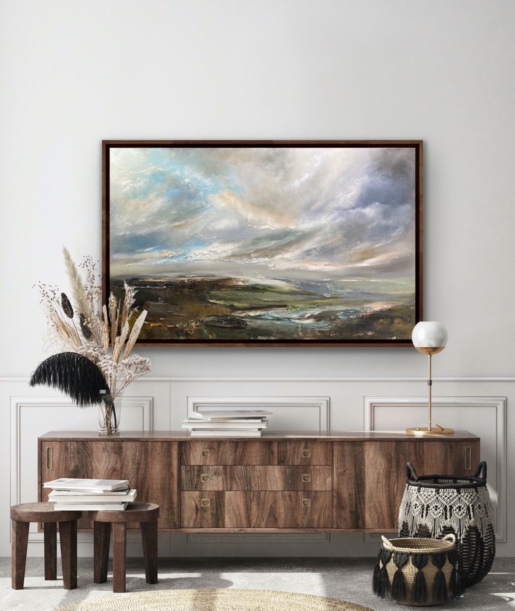 "Valley Song" is an original landscape painting by Helen Howells. It was inspired by the mountains of South Wales, where I truly feel at peace, amongst the astounding beauty of the landscape that surrounds me. Helen Howells is an artist living and working in the historic village of Caerleon in