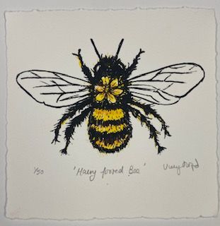 Hairy Footed Bee is a Limited edition screen print by Vicky Oldfield. Part of a collection of British Garden Bees. The bright colours and beautiful detailing of this little bee makes this a delightful piece sure to bring a smile to your face. Vicky Oldfield the artist is renowned for