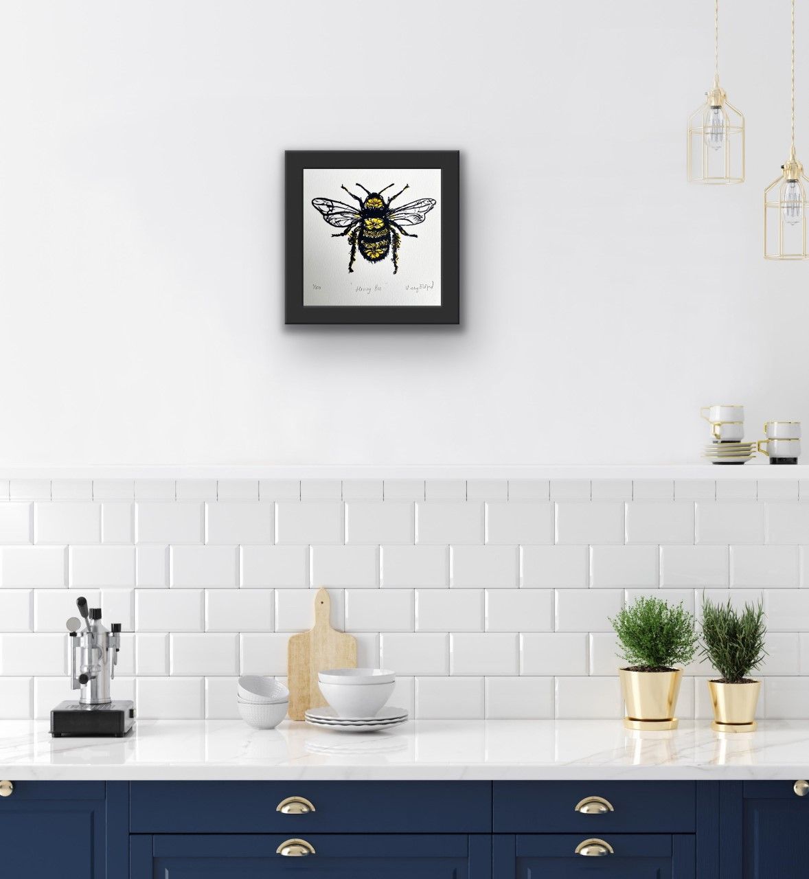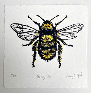 Honey Bee is a Limited edition screen print by Vicky Oldfield. Part of a collection of British Garden Bees. The bright colours and beautiful detailing of this little bee makes this a delightful piece sure to bring a smile to your face. Vicky Oldfield the artist is renowned for her