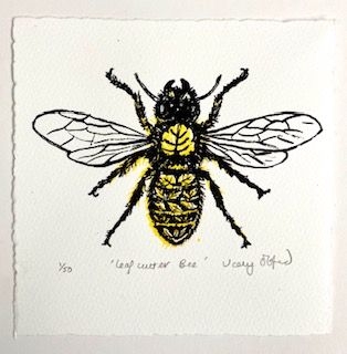 Leaf Cutter Bee is a Limited edition screen print by Vicky Oldfield. Part of a collection of British garden Bees. The bright colours and beautiful detailing of this little bee makes this a delightful piece sure to bring a smile to your face. Vicky Oldfield the artist is renowned for