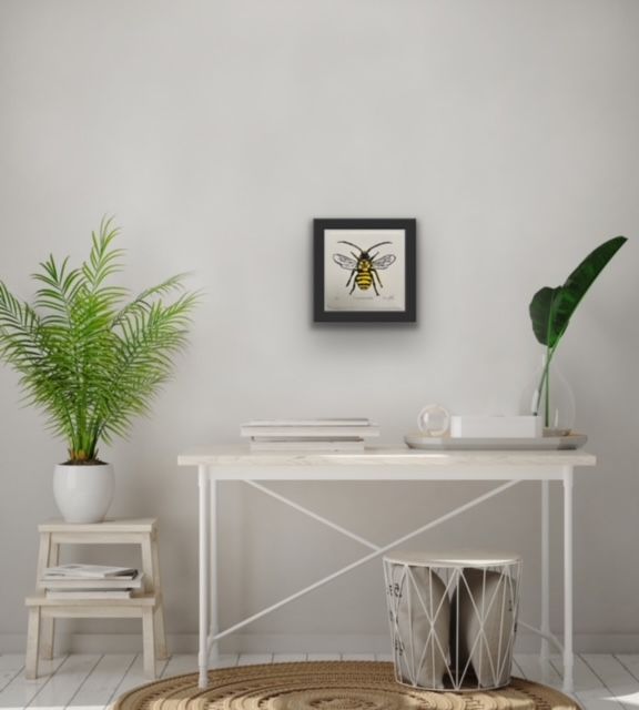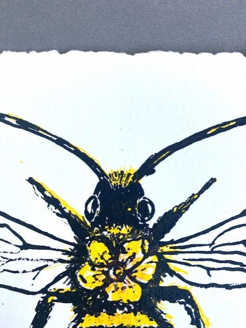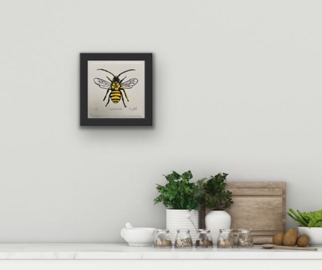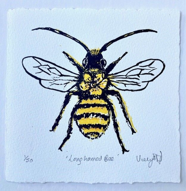 Long Horned Bee is a Limited edition screen print by Vicky Oldfield. Part of a collection of British Garden Bees. The bright colours and beautiful detailing of this little bee makes this a delightful piece sure to bring a smile to your face. Vicky Oldfield the artist is renowned for