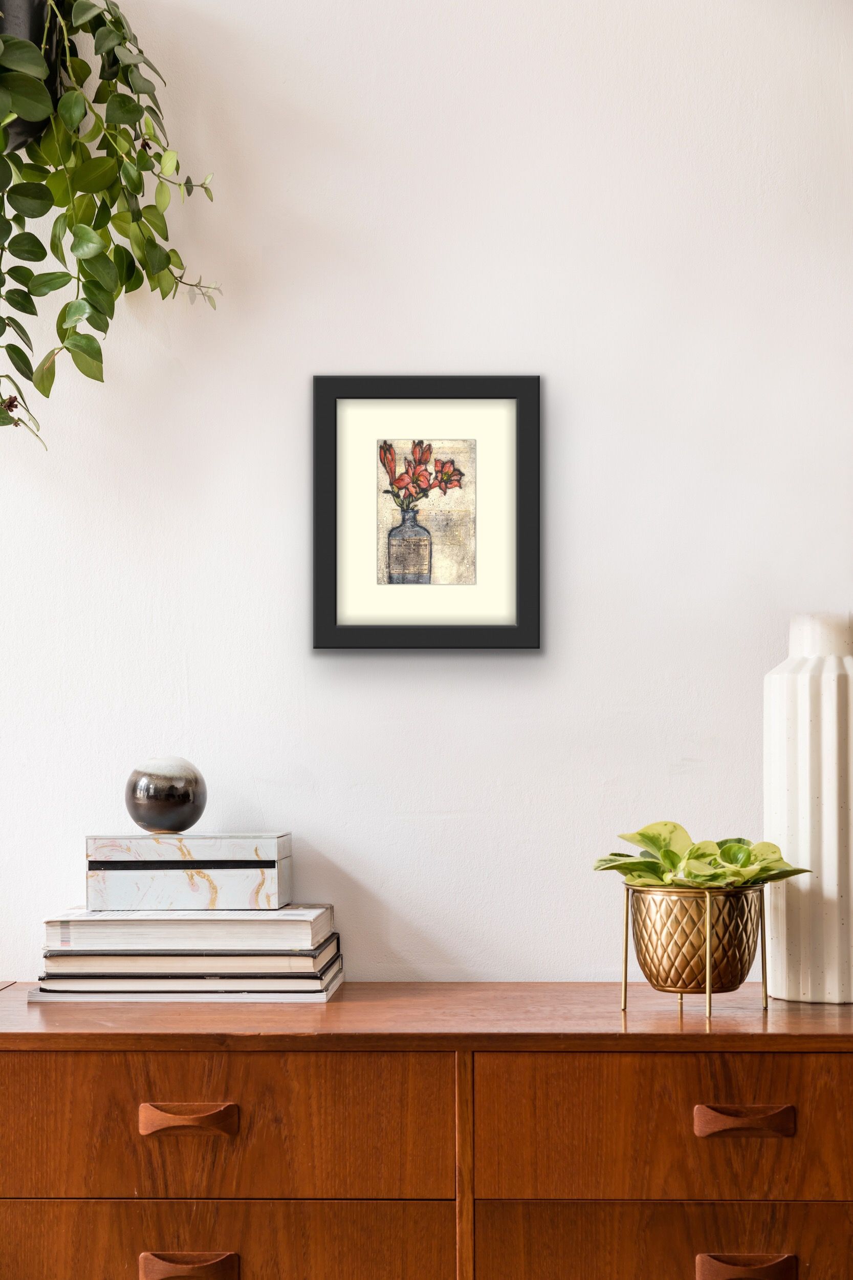 Vicky Oldfield: 'Small bottles Two’ is a Limited edition hand coloured collagraph. Each print is hand printed and individually painted, making every one unique. This work is an Edition of 30. Vicky Oldfield the artist is renowned for her distinctive pictures; the subjects are the story of her fascination with