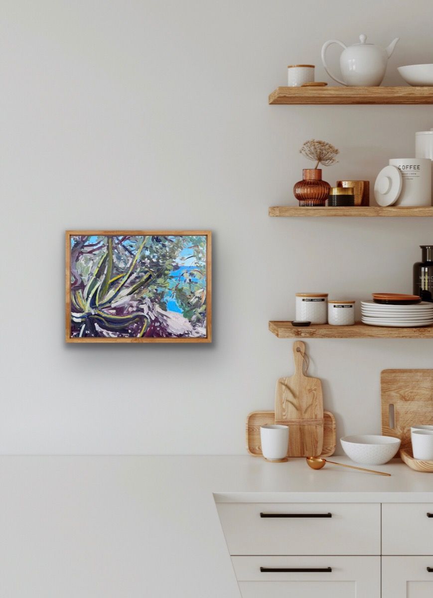 Oil on board - 3.5mm MDF. Portugal, Algarve. Walk to the beach, the turquoise waters are eye catching and the colours intense. ADDITIONAL INFORMATION:Original paintingOil paint on boardComplete size of unframed painting: 24 H x 30 W x 1 D cm Sold Unframed Please note that insitu images are purely an indication of