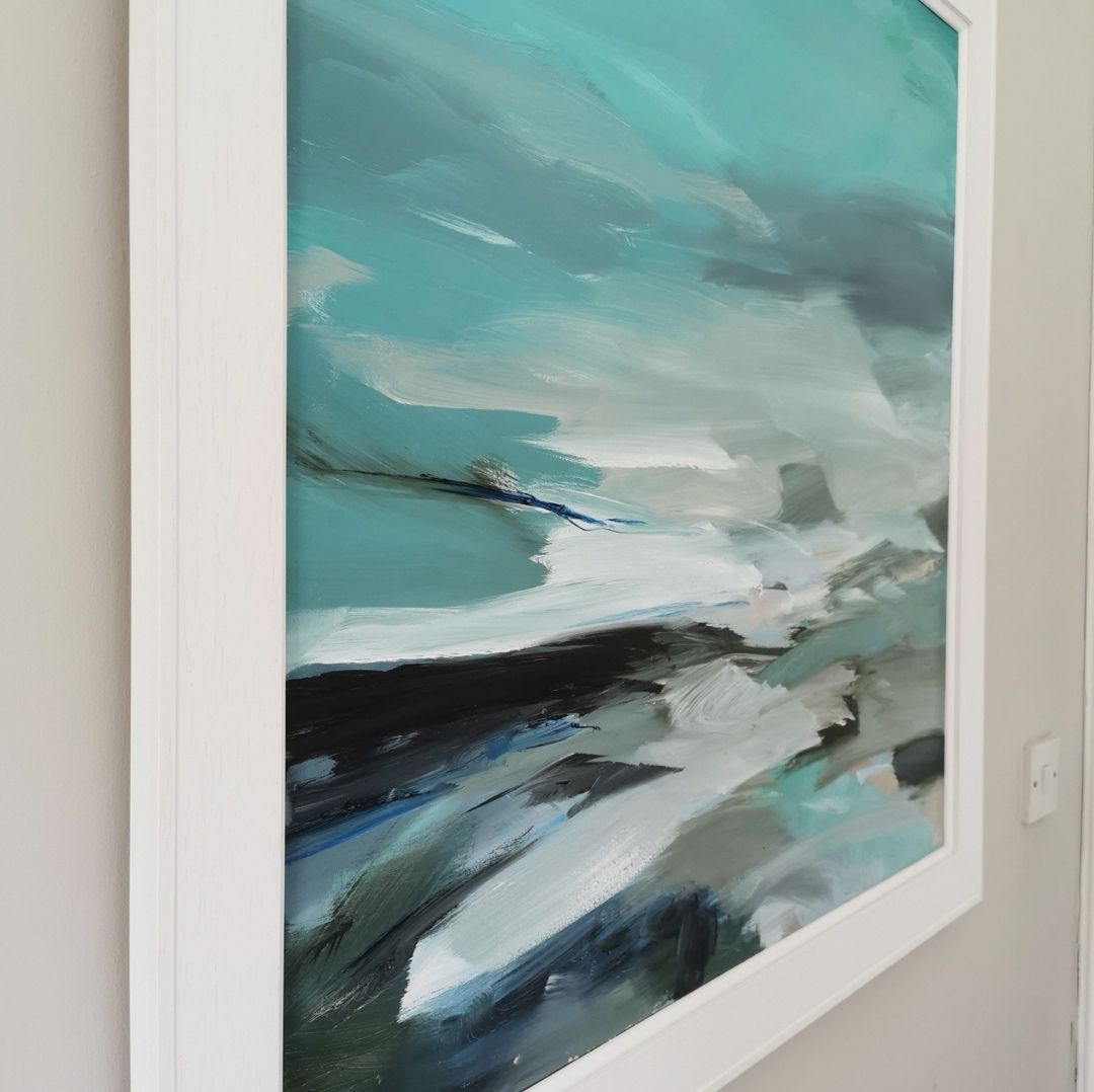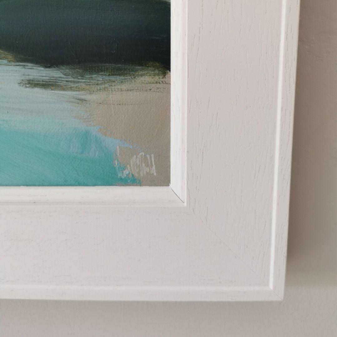 This work is no longer available with Wychwood Art. This beach, known as The Back of The Ocean, is a spectacular position to experience the drama of crashing waves. Visually its wonderful and the noise there is so so powerful. I painted this oil in 2021. It is framed in a
