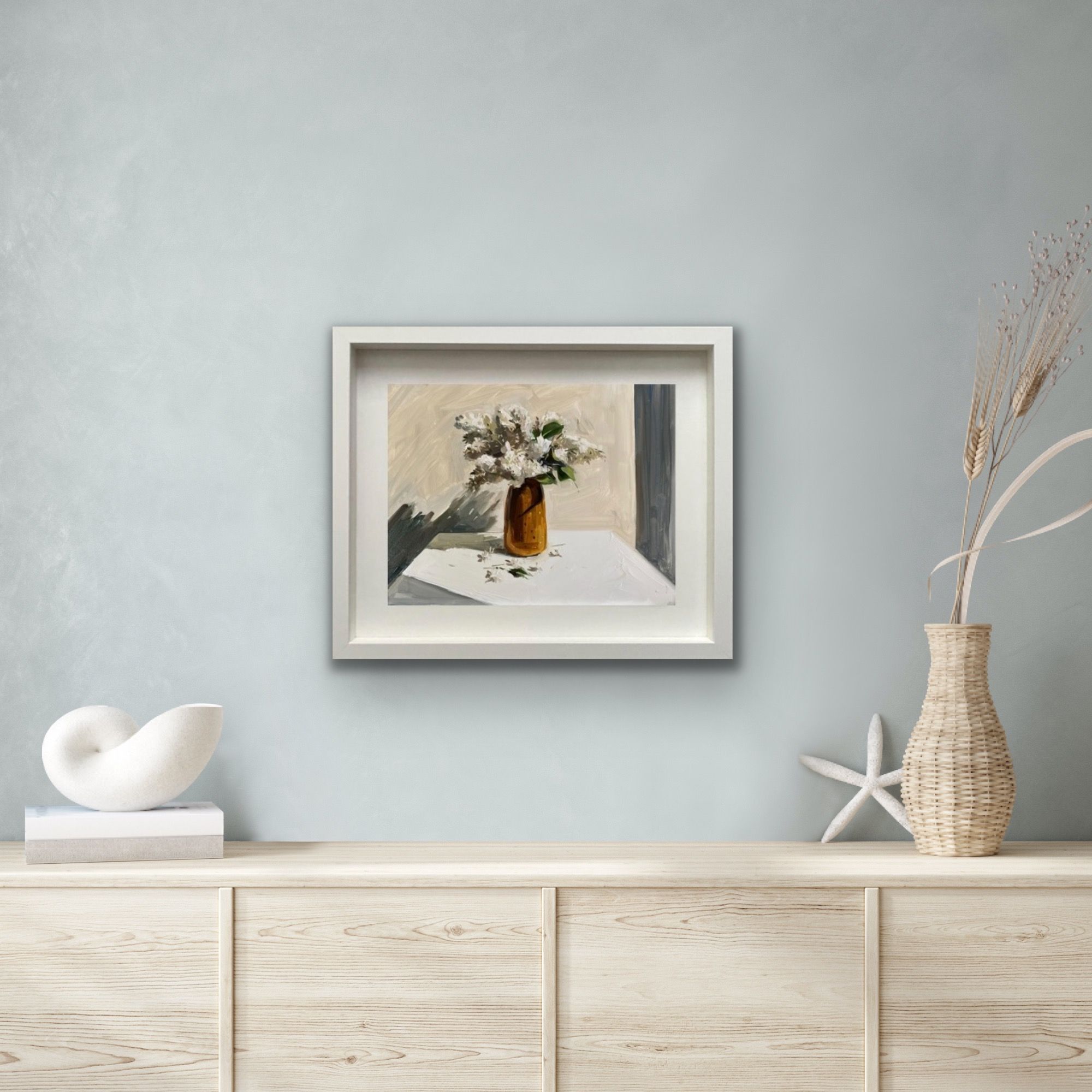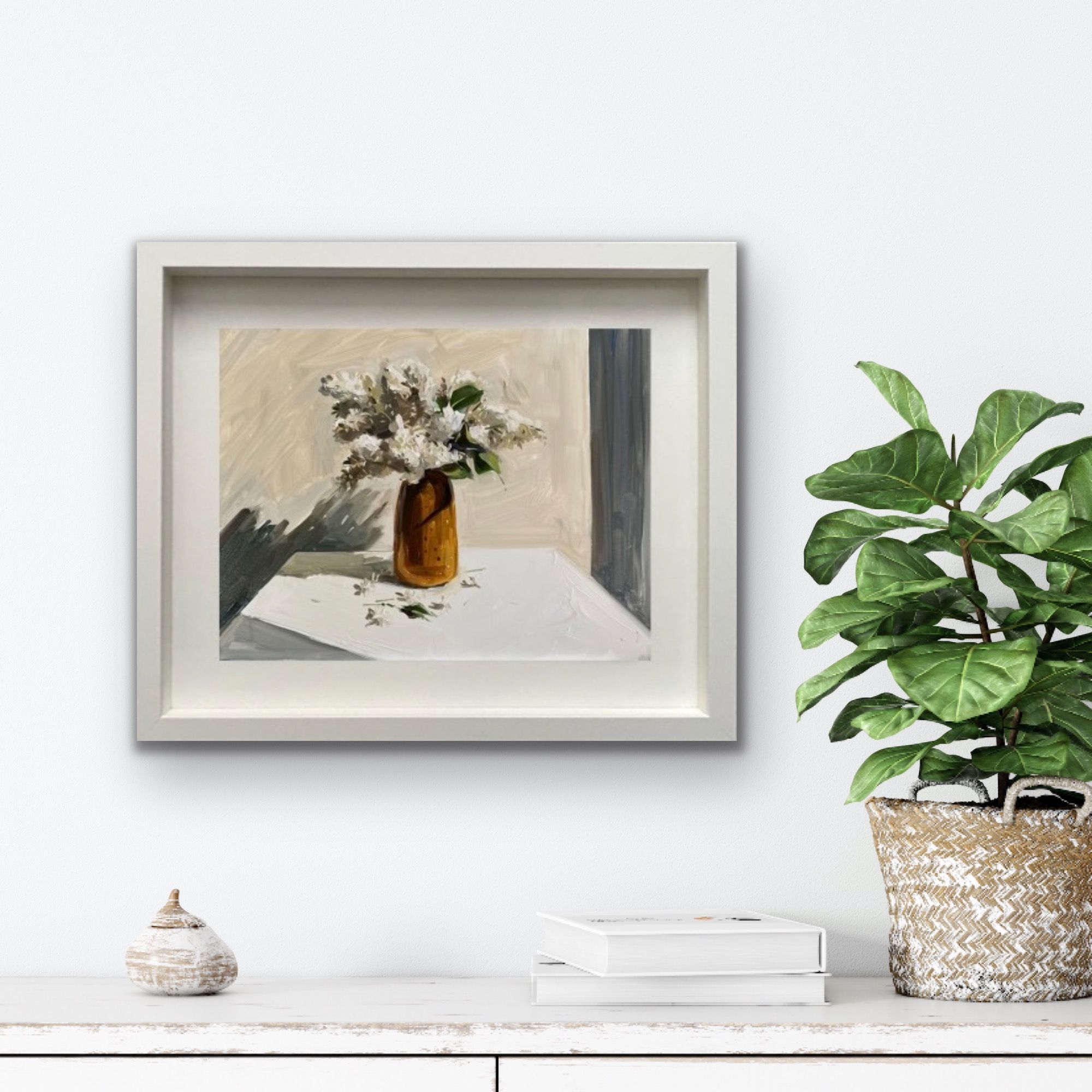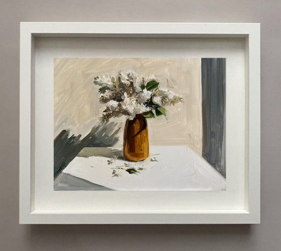 Painted on a Spring day from the fresh Lilac blooms from the artists garden with natural light falling from the window in the artists studio.