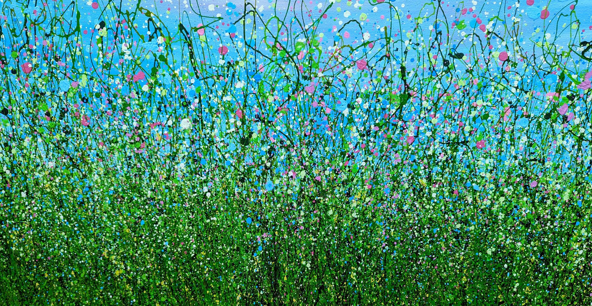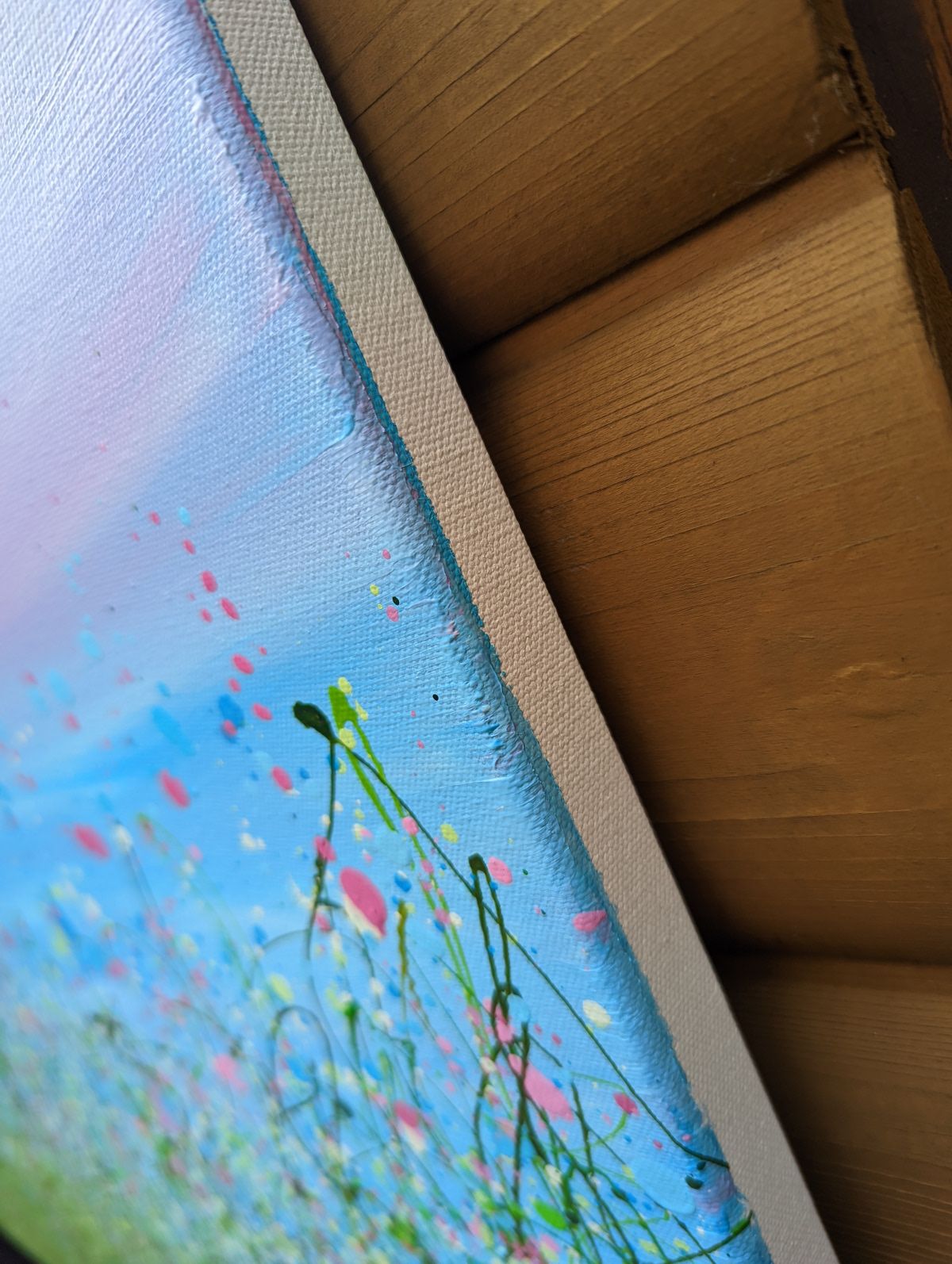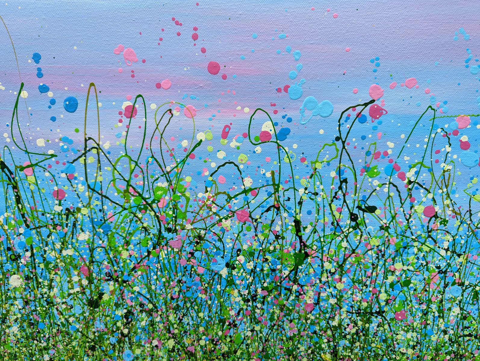 Wild & Free - Enchanted Meadows #4 - An Original semi-abstract painting by Lucy Moore. Using my signature stringy grass technique I have created a bountiful vibrant meadow. I used pinks and blues for this fantasy inspired meadow. " Wychwood Art comments " We love Lucy Moore's original meadow paintings.