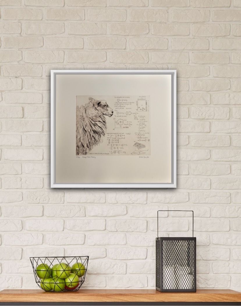 WILL TAYLOR Sheep Field Theory Original limited edition of 50 – printed by the artist on Somerset 300gsm Cotton paper Copper-plate etching Image size W 25 cm x H 20 cm Sheet size W 39 cm x H 36 cm Sold unframed Free Shipping Please note that in situ images are purely an indication of how a piece