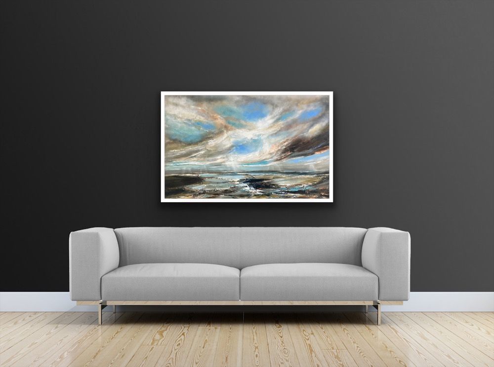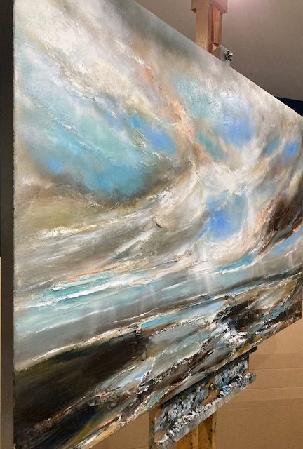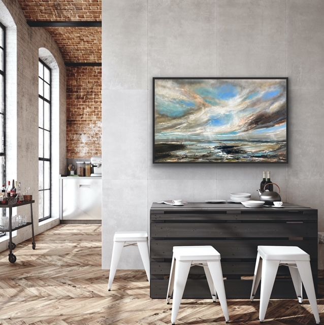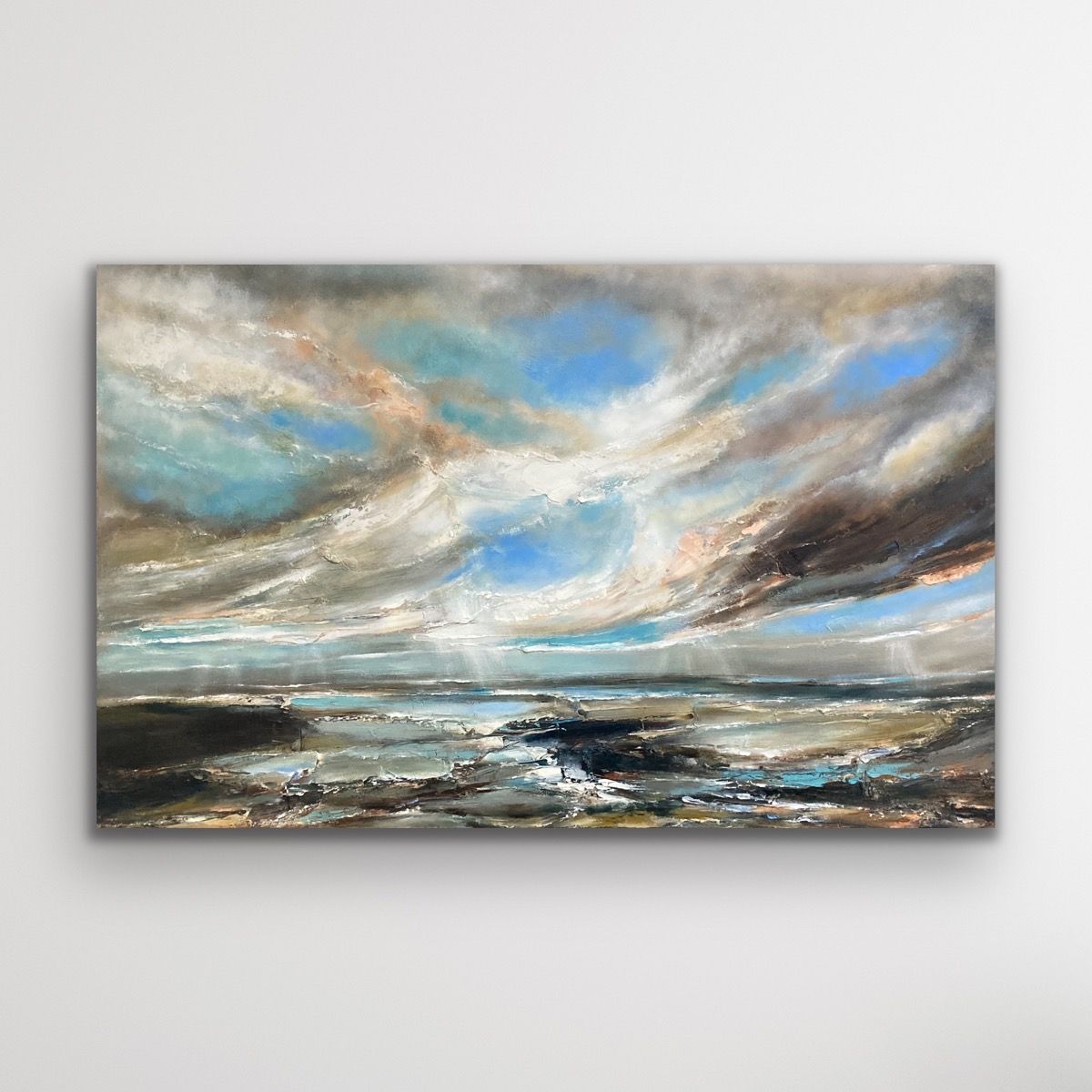 “Wintertide” is an original seascape painting by Helen Howells. It was inspired by the emotional responses and memories of walks, taken along the Welsh coastline. It is not of any specific place, but is a combination of many, that have calmed my mind, and awakened my soul. Helen Howells is