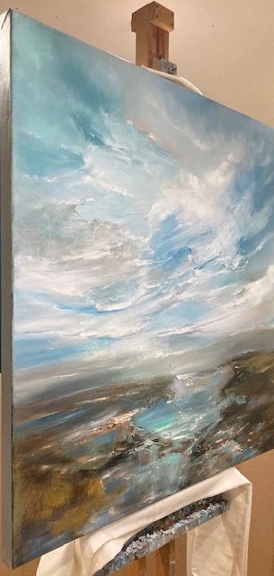 original Oil On Canvas Image size: H:91 cm x W:91 cm Complete Size of Unframed Work: H:91 cm x W:91 cm x D:3.5cm Sold Unframed Please note that insitu images are purely an indication of how a piece may look 'Wondrous Findings' is an original seascape painting by Helen Howells. It was inspired by the emotional