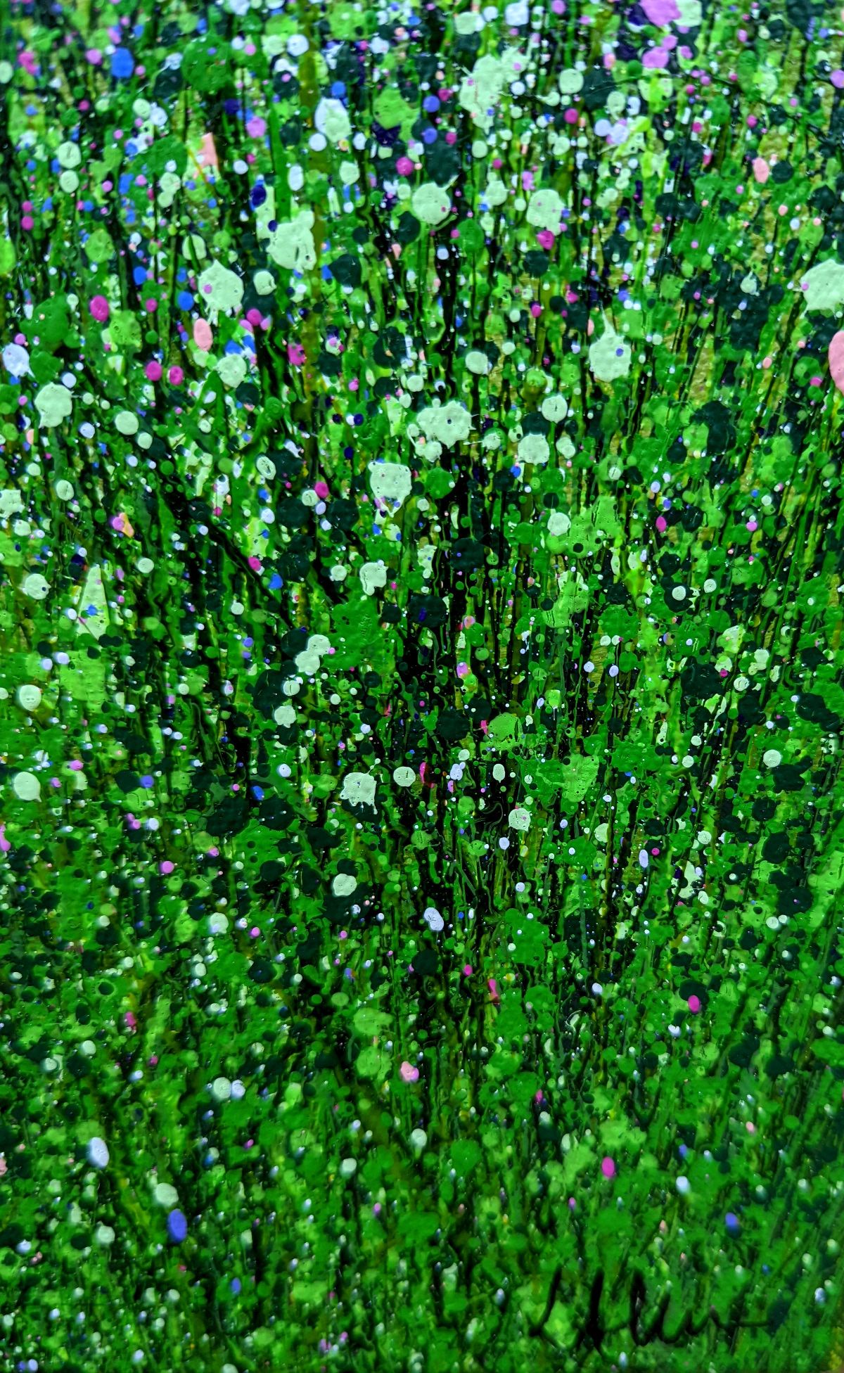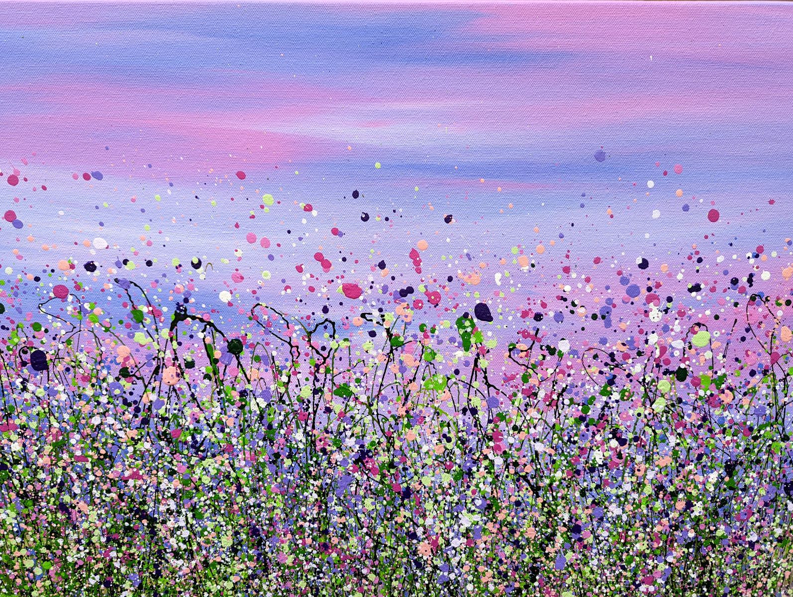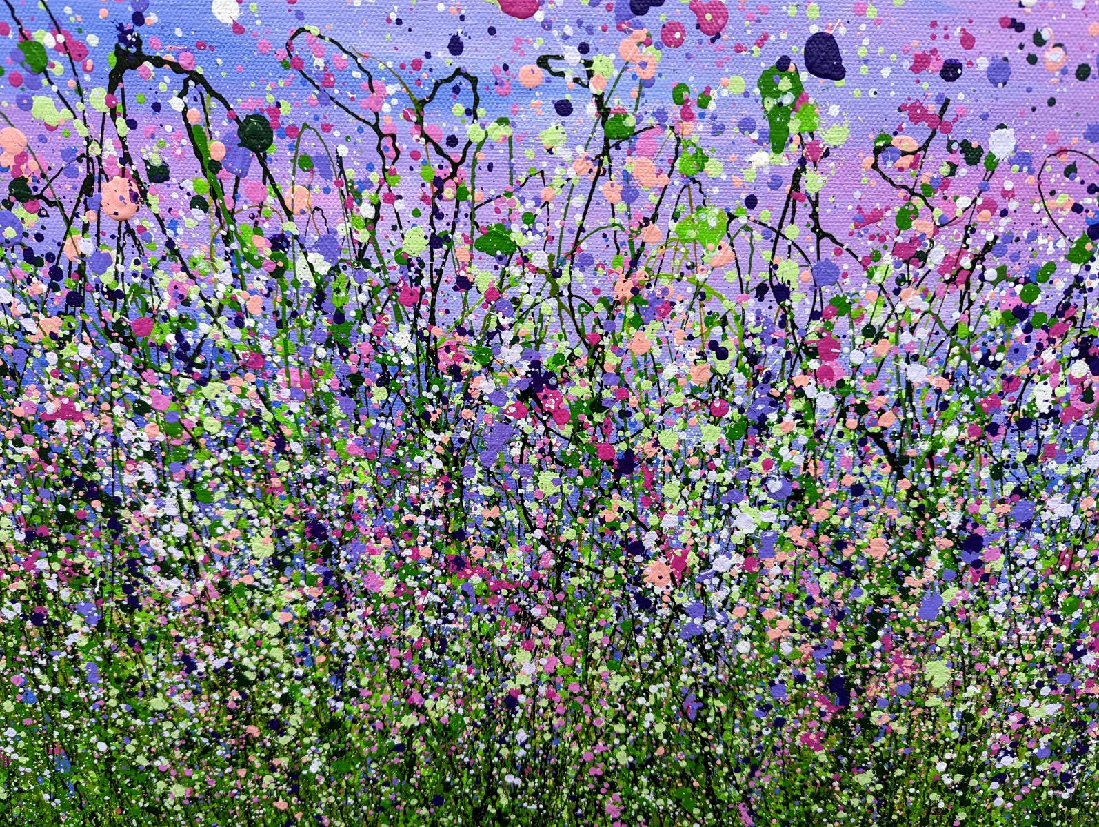 Wrapped Up In A Daydream #13 - An Original semi-abstract painting by Lucy Moore. Using my signature stringy grass technique I have created a bountiful vibrant meadow. I used pinks and purples for this fantasy inspired meadow. " Wychwood Art comments " We love Lucy Moore's original meadow paintings. They