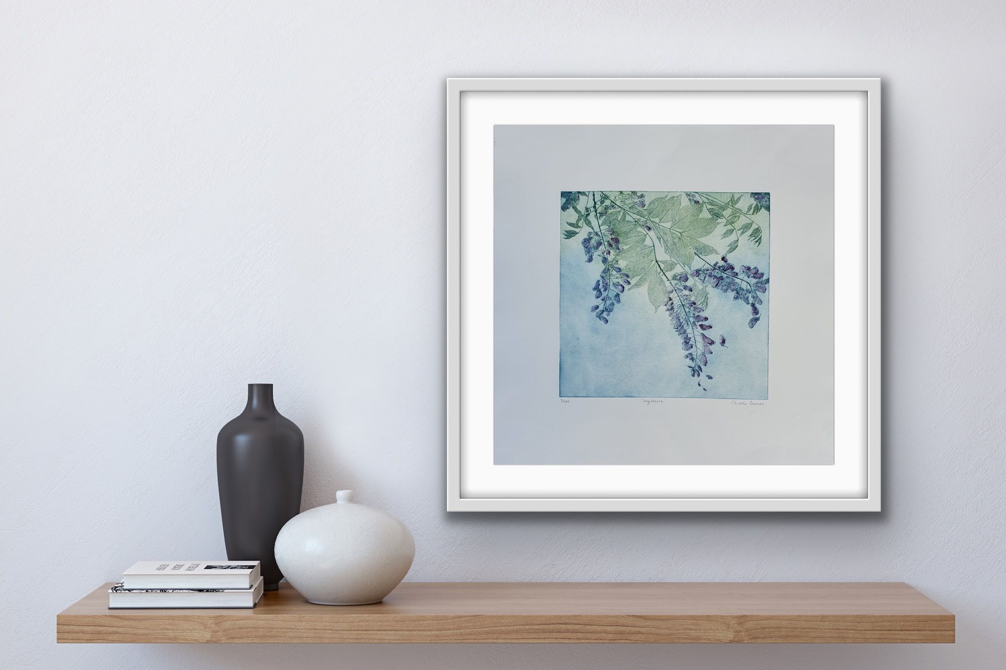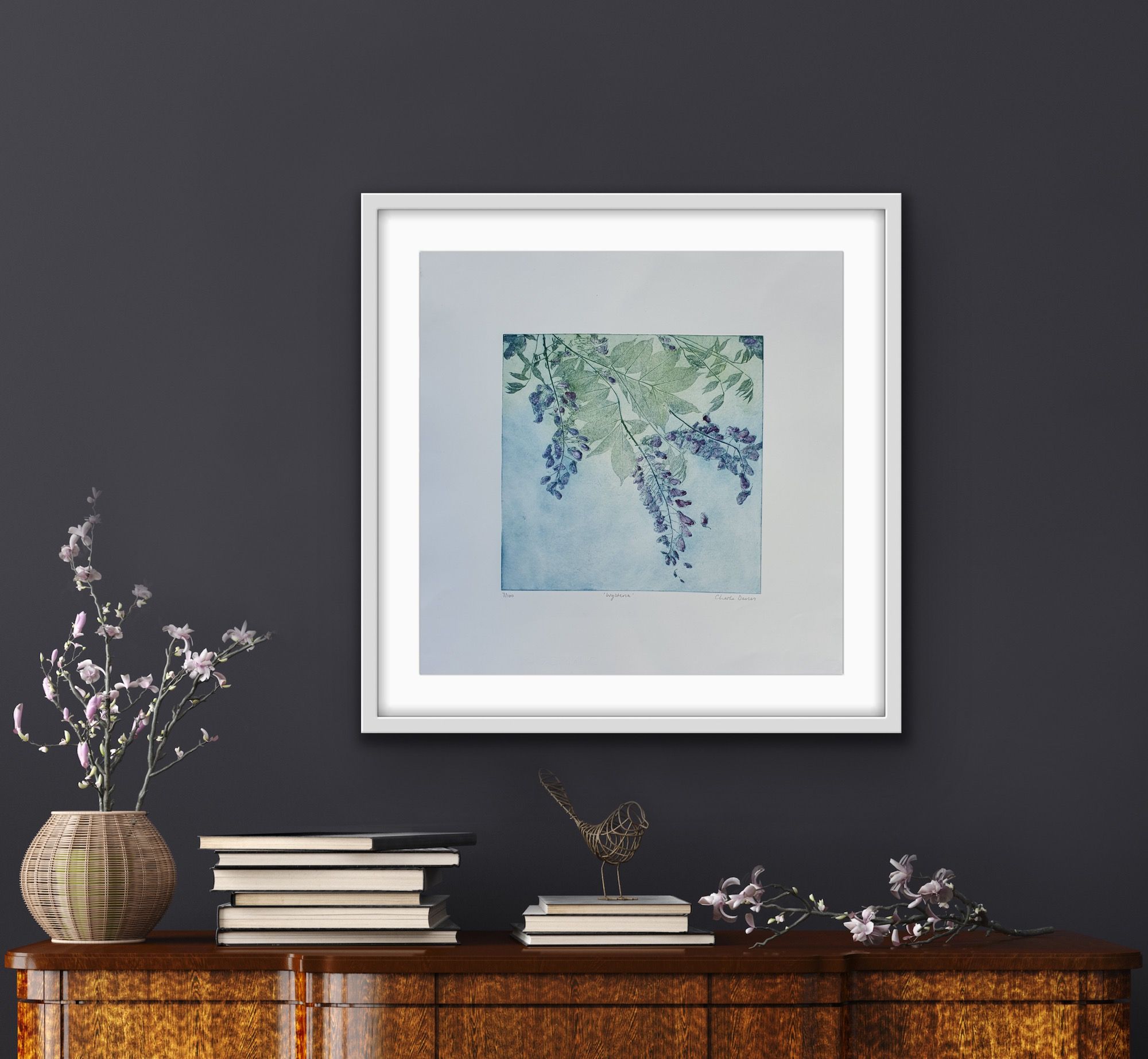 Charlie Davies Wysteria Original botanical etching Soft ground etching on paper. Wysteria by Charlie Davies is a limited edition soft ground etching, using real plants to make the etching plate. The print is hand inked in a free way to help convey movement and atmosphere, so although this is an