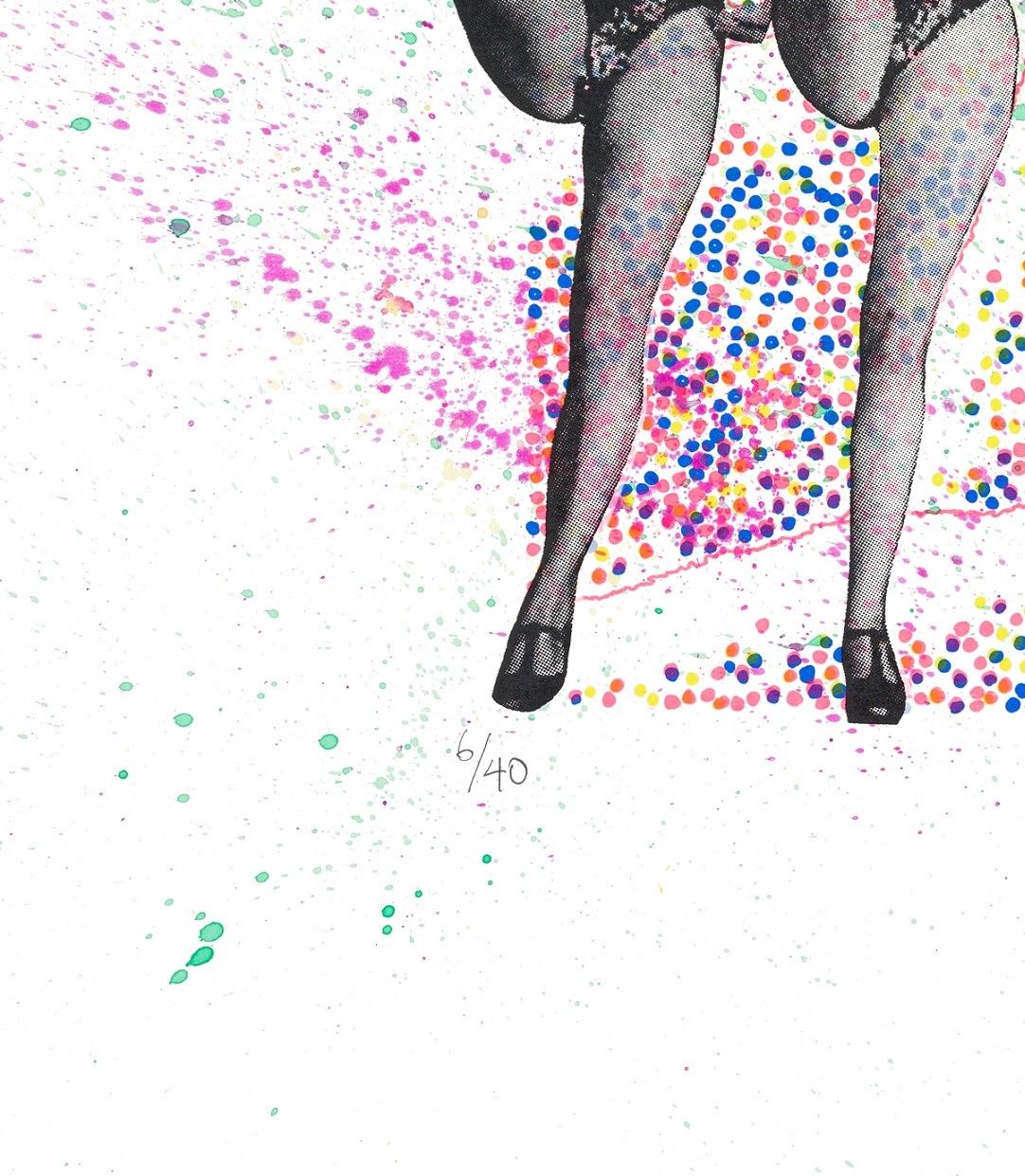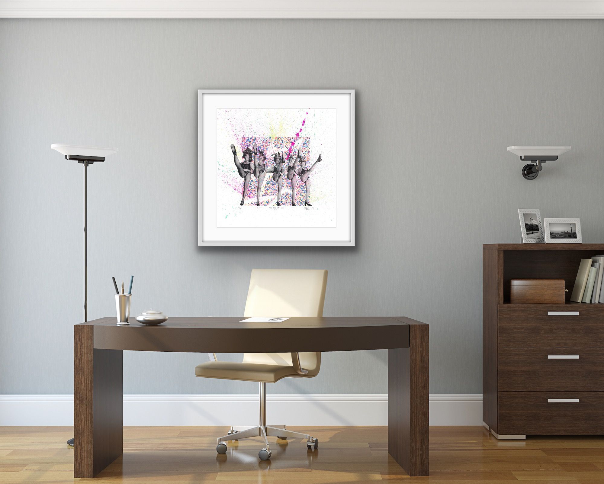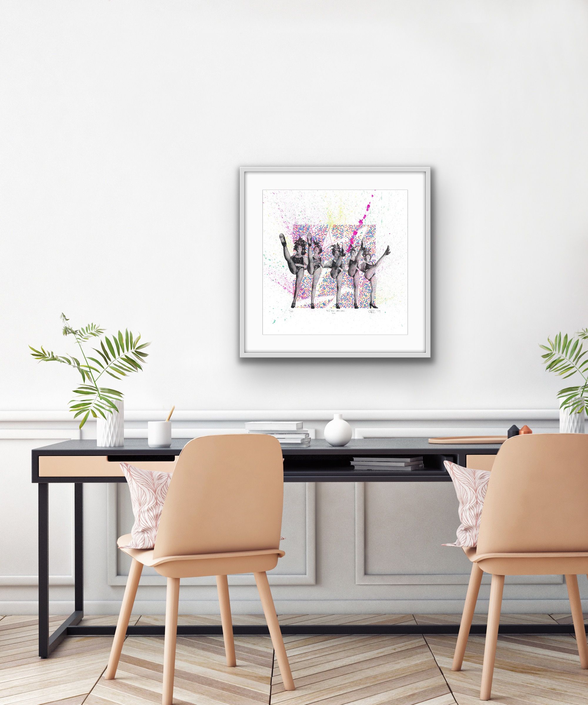 THIS PRINT IS NOW OUT OF STOCK. Please see the artist's available work here. This print is about women supporting women. 'YES YOU CAN CAN' splats edition limited edition of 40 Archival Bread & Butter bright white paper 270gsm 50x 50cms 5 screen, 8 colour screen print with hand finished celebratory
